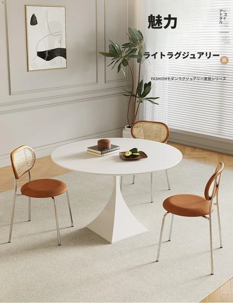 純白の岩板デザイナーデスク 直径120CM(保証5年)