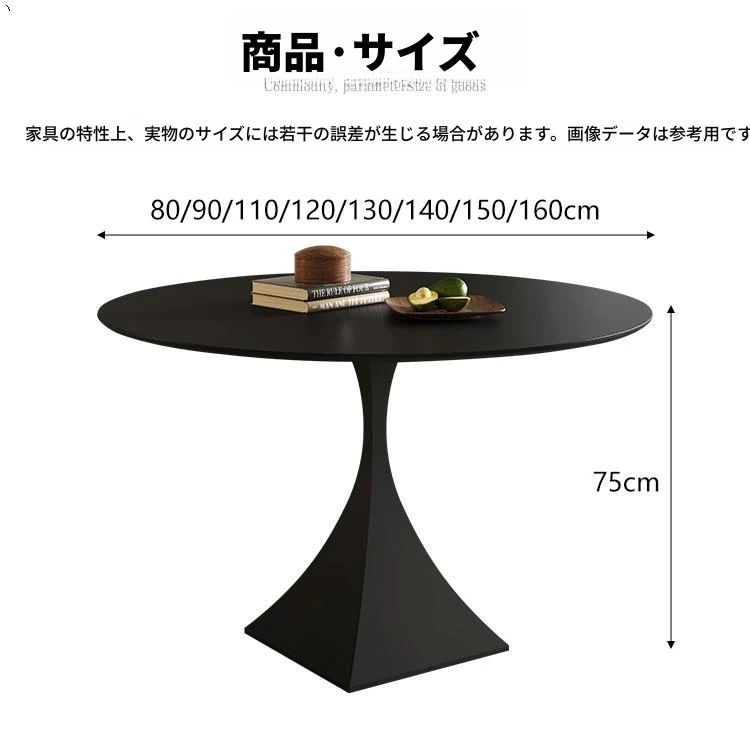 純黒の岩板デザイナーデスク 直径130CM(保証5年)
