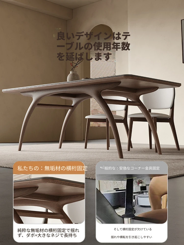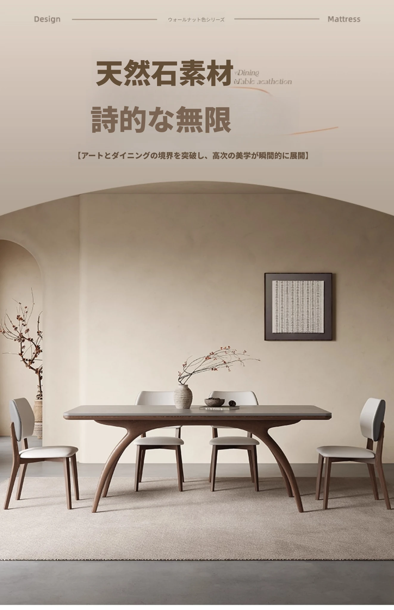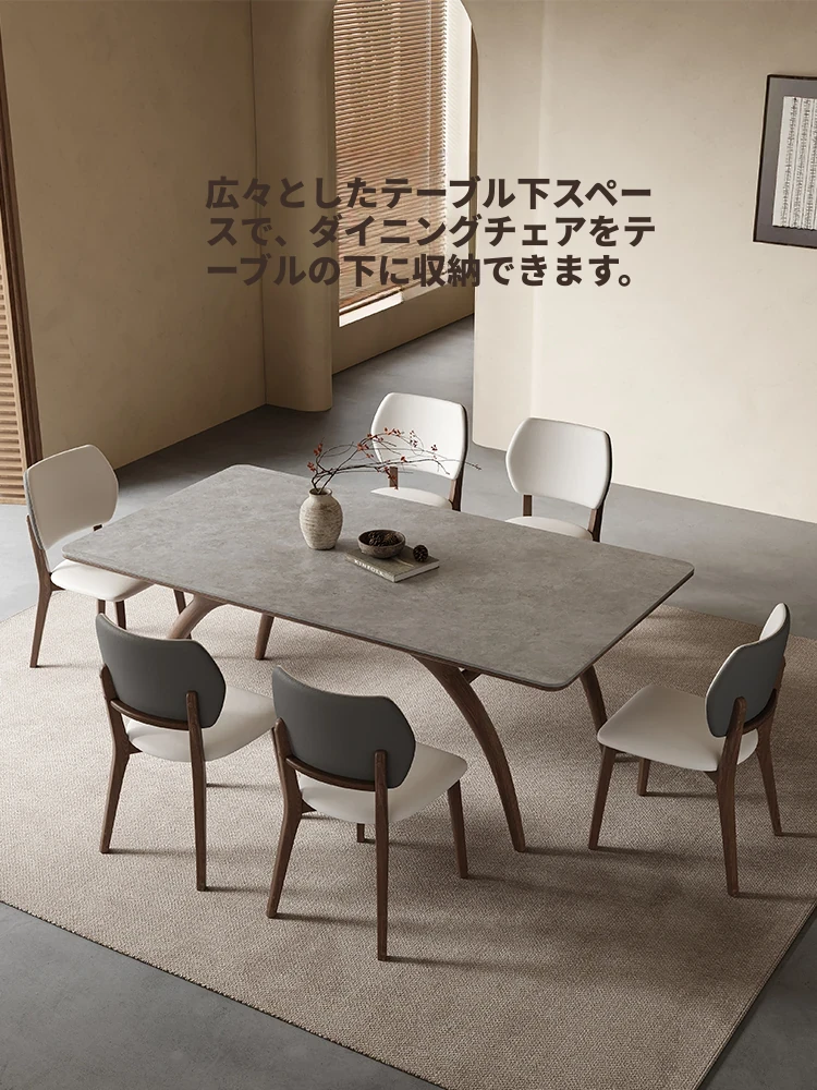 アーチ型天然木製ダイニングテーブル|モダンでシンプル、ラグジュアリーな雰囲気|小型住宅に最適|2025年新作ダイニングセット