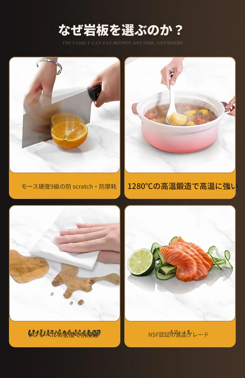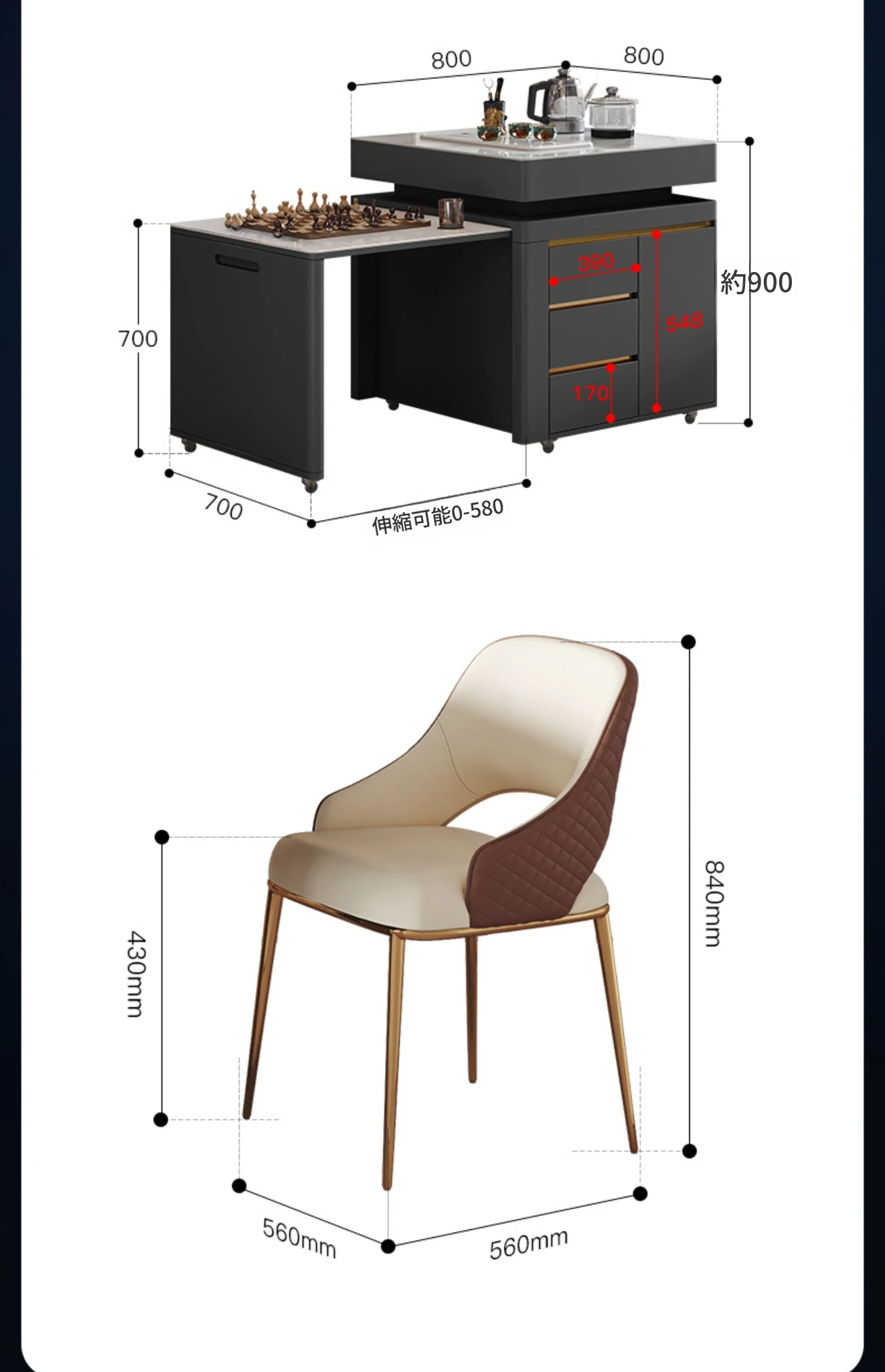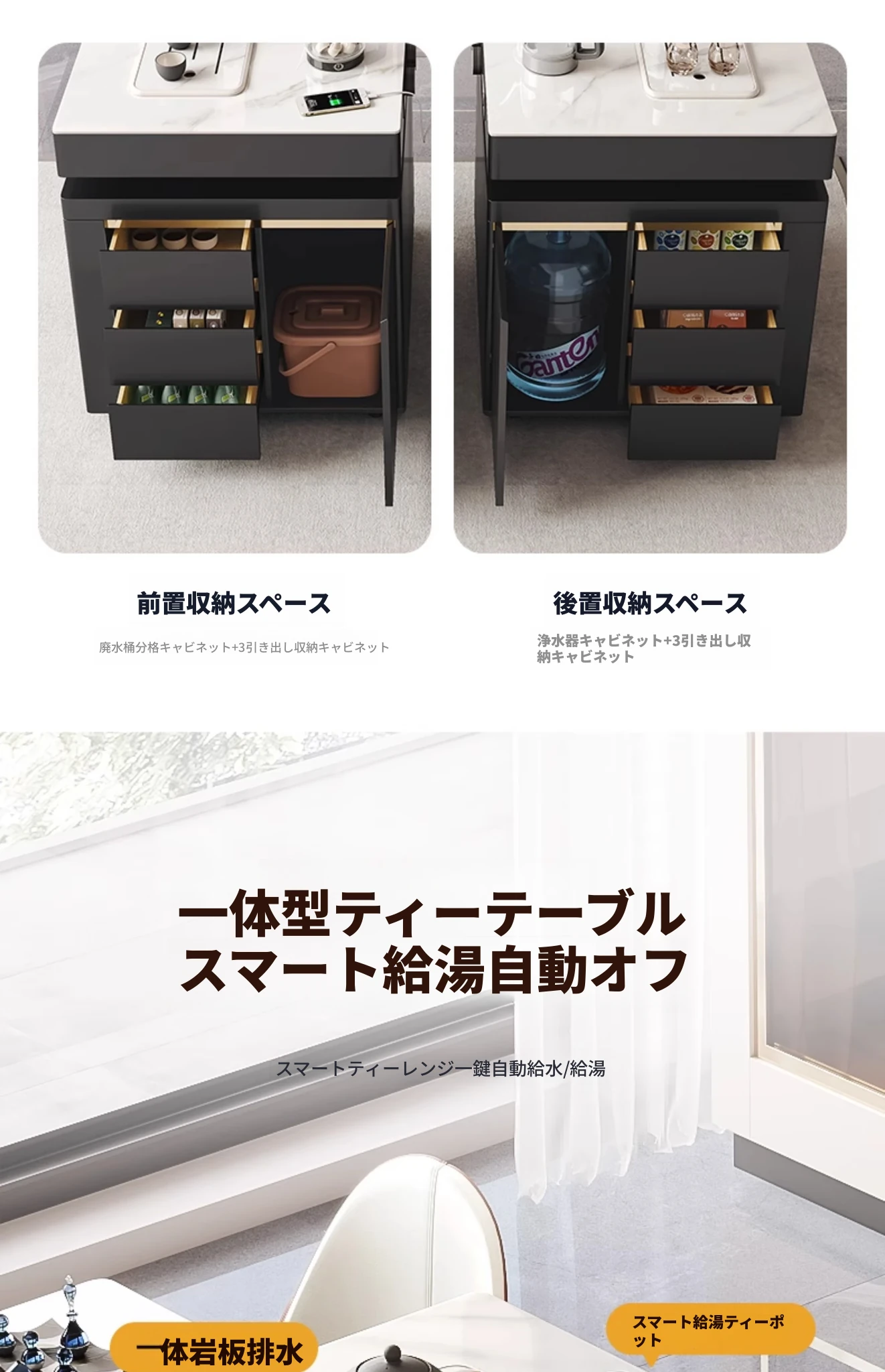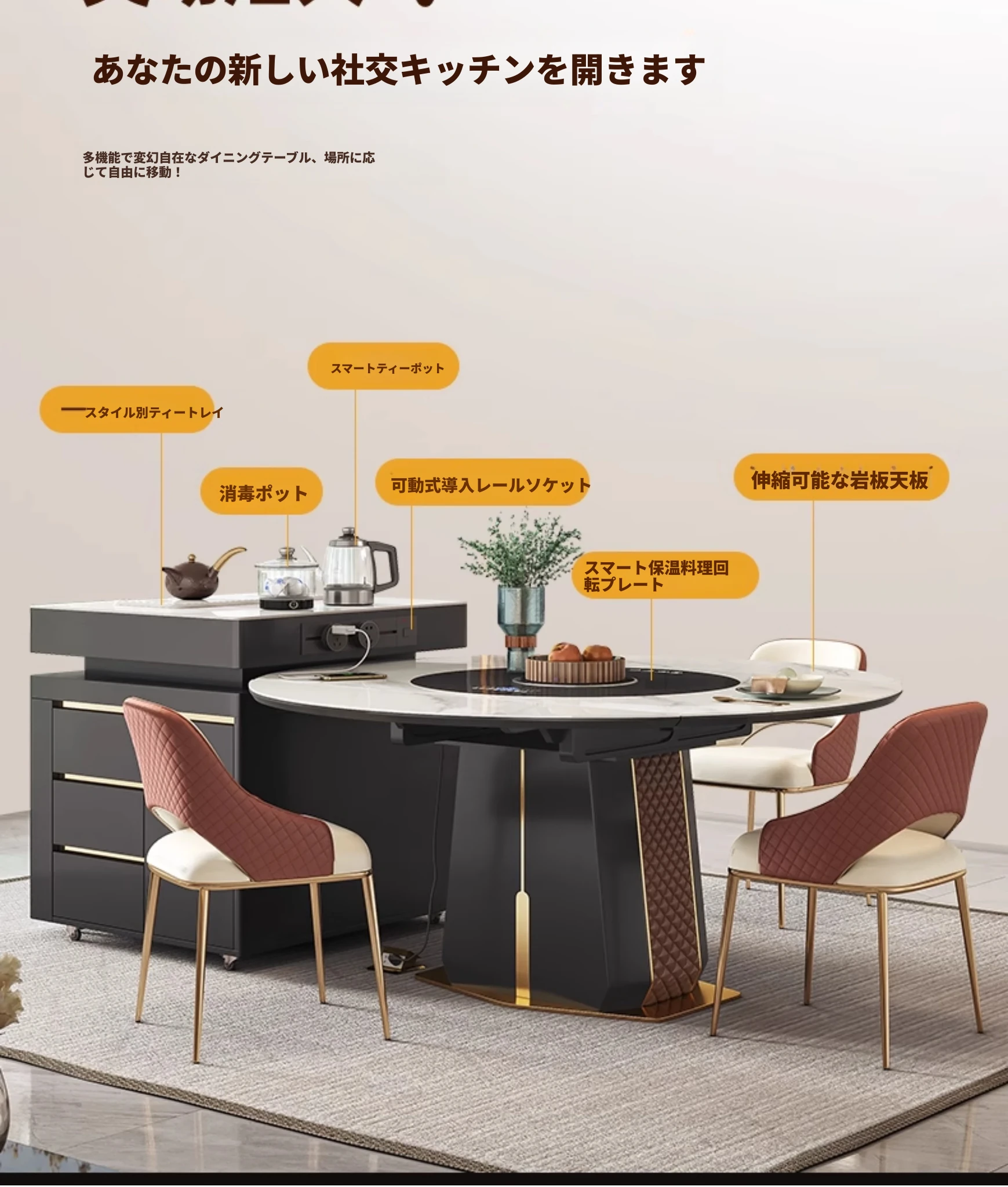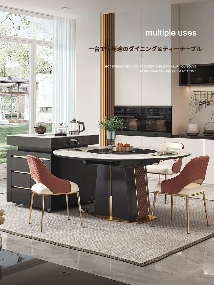 現代的な軽奢スタイル!電磁炉付きの多機能一体型テーブル - 岩板デザインのダイニング&ティーテーブル。おしゃれな黒色で、家庭でも便利にお使いいただけます。