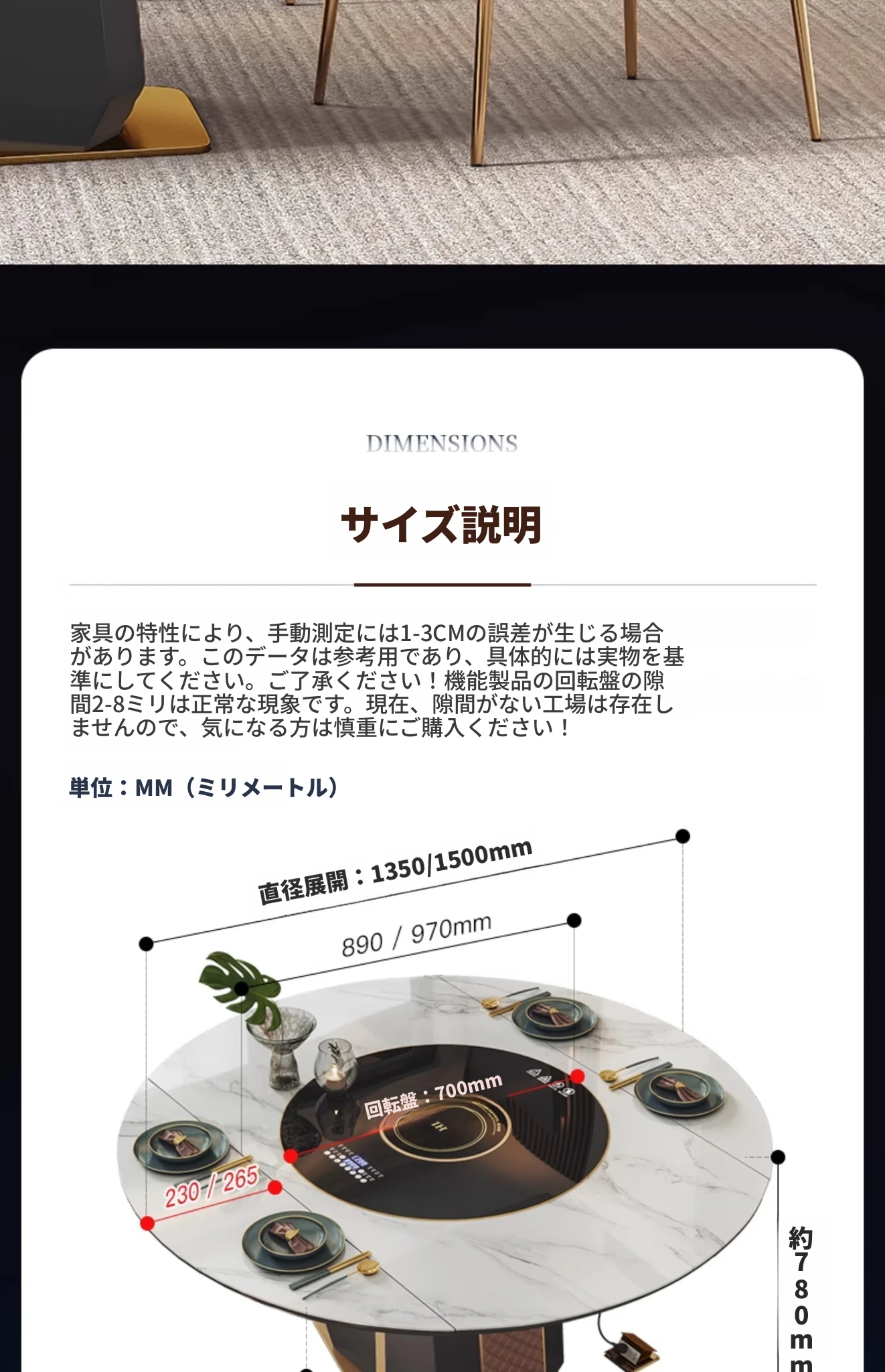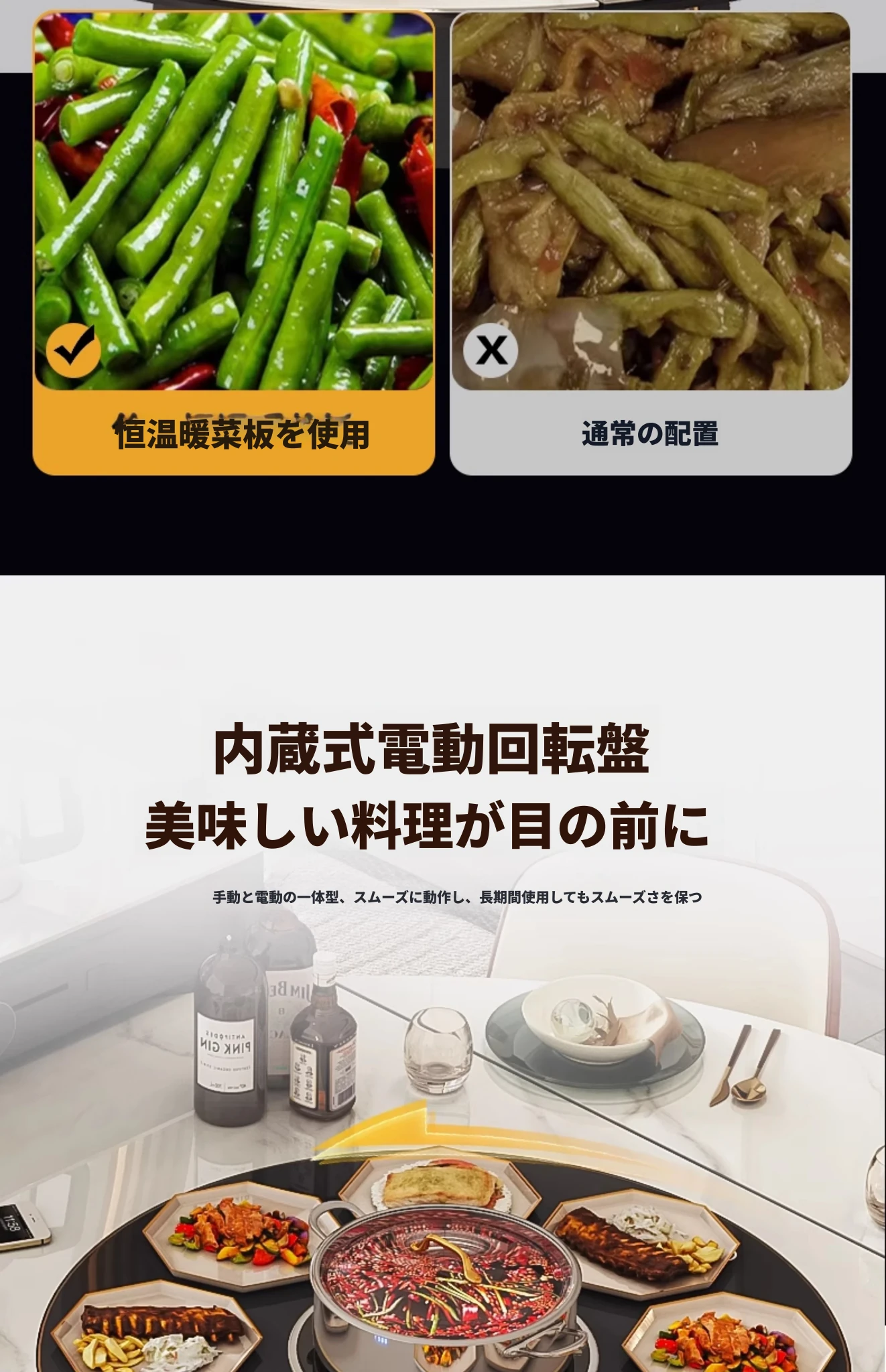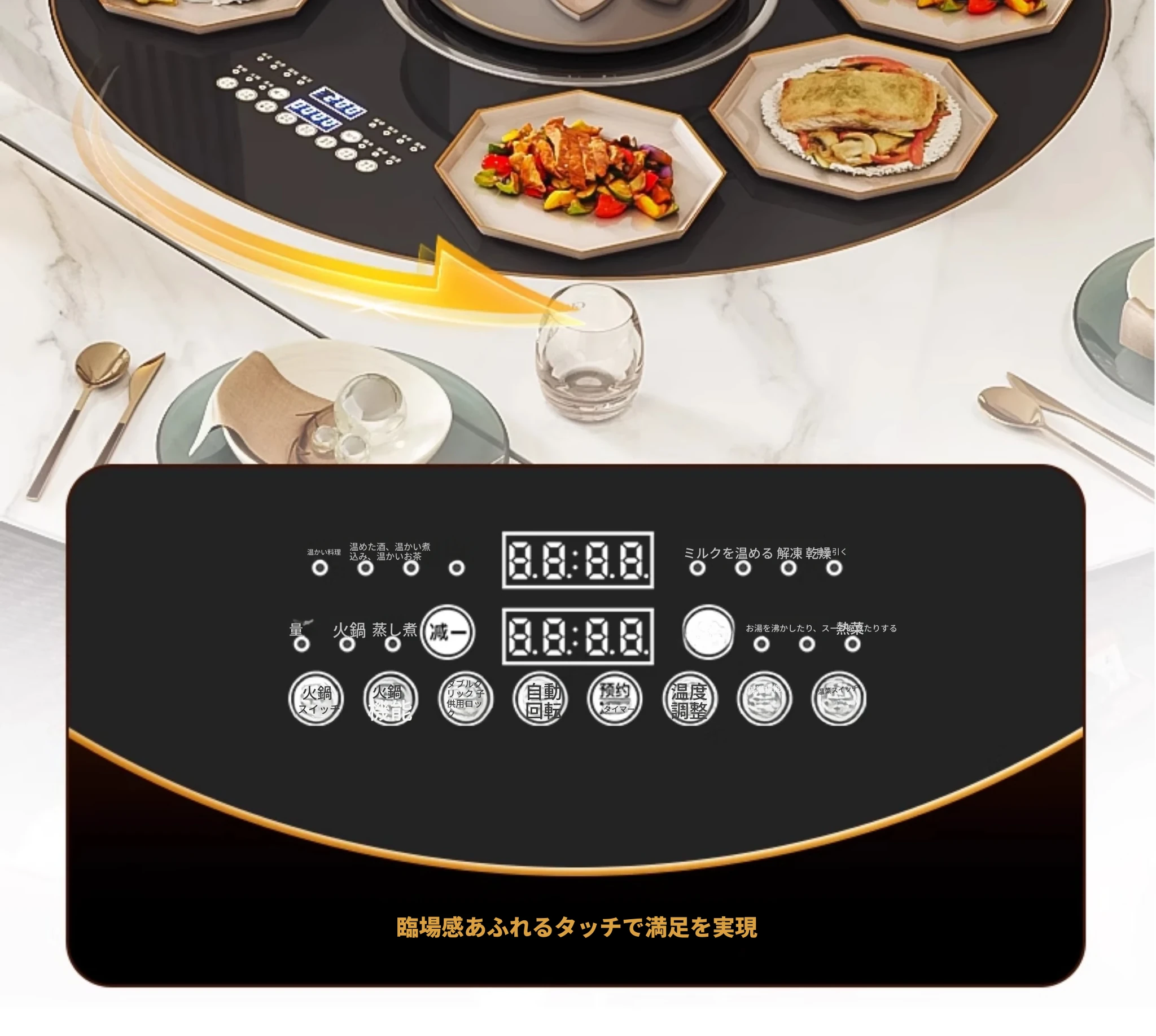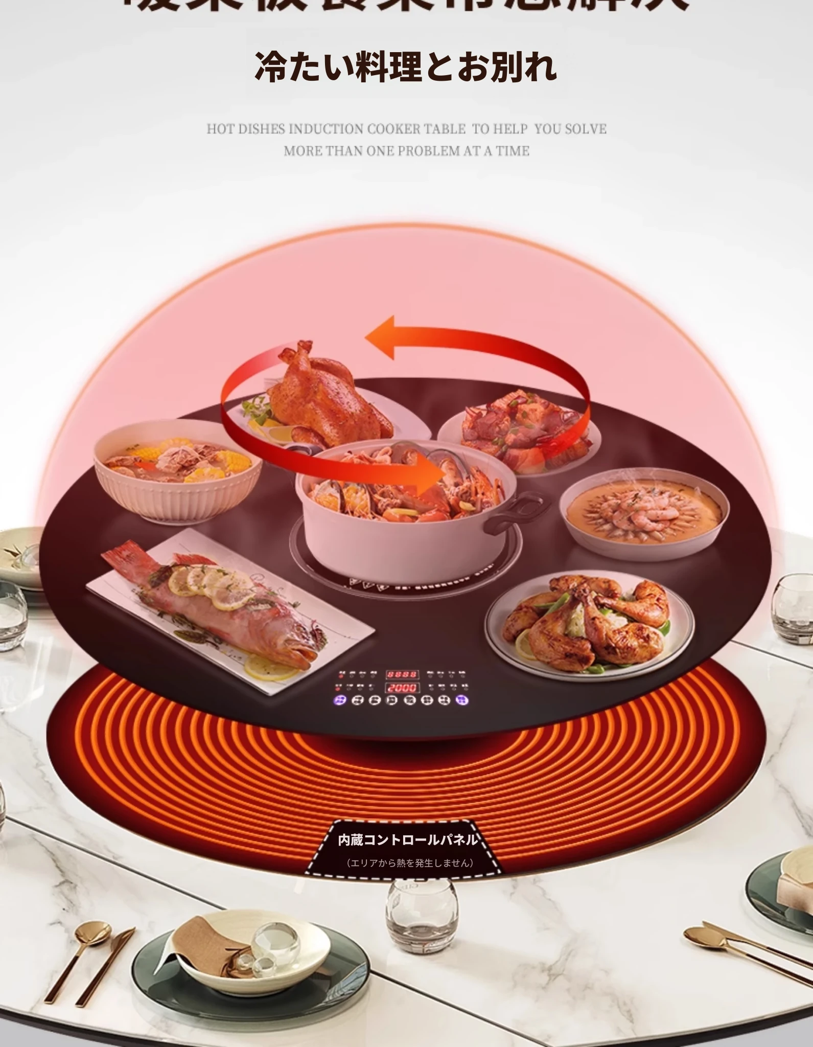 電磁調理器付き伸縮式岩板テーブル - 中古クリーム風デザインの多機能円形ダイニングテーブル、火鍋も楽しめる!家族や友人との食事に最適!