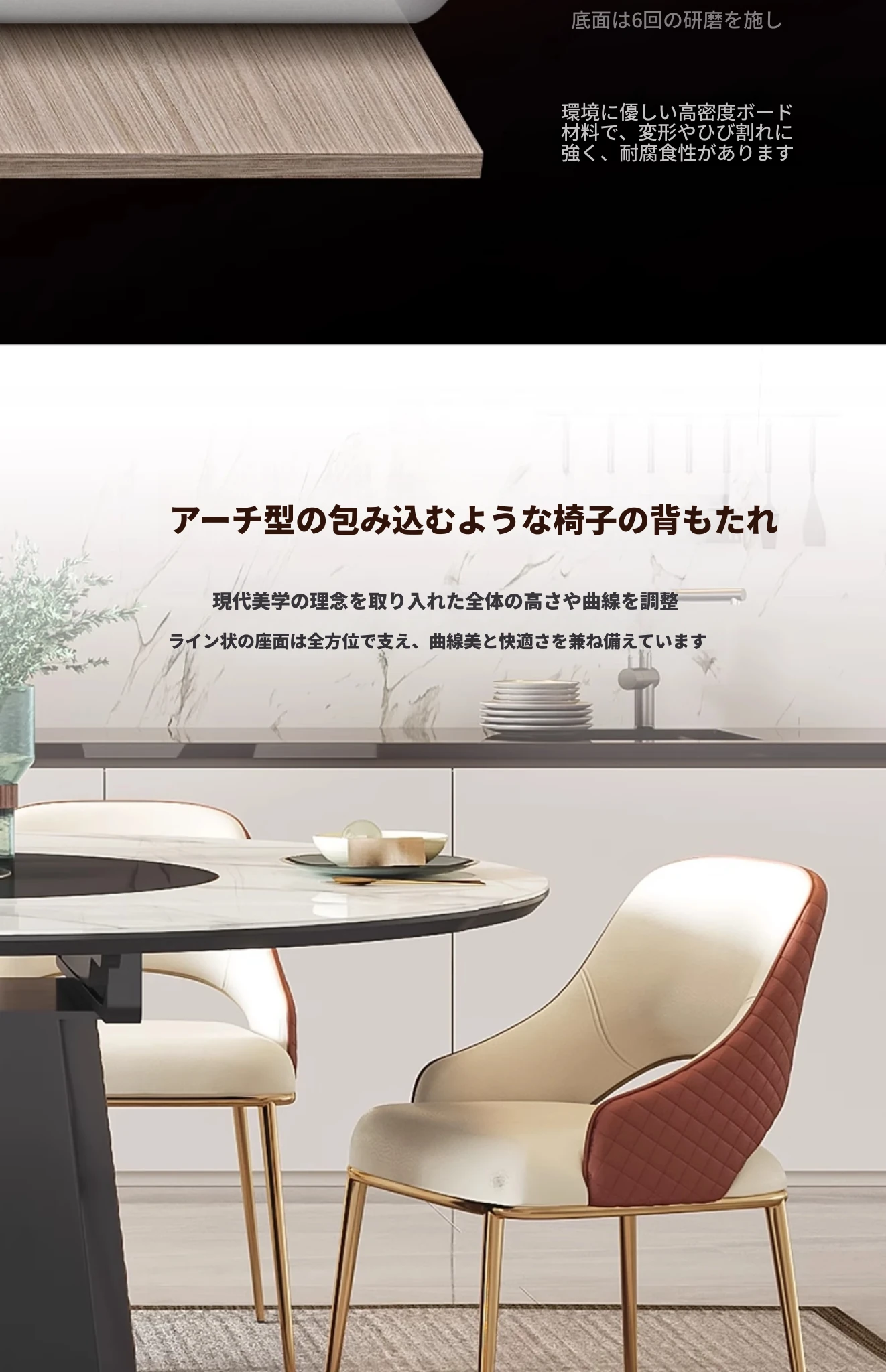 北欧デザインの伸縮式ラウンド岩板ダイニングテーブル - 小スペースに最適!角丸両用の折りたたみ可能な天然木製テーブルで、家族や友人との食事を楽しむための完璧なアイテムです。