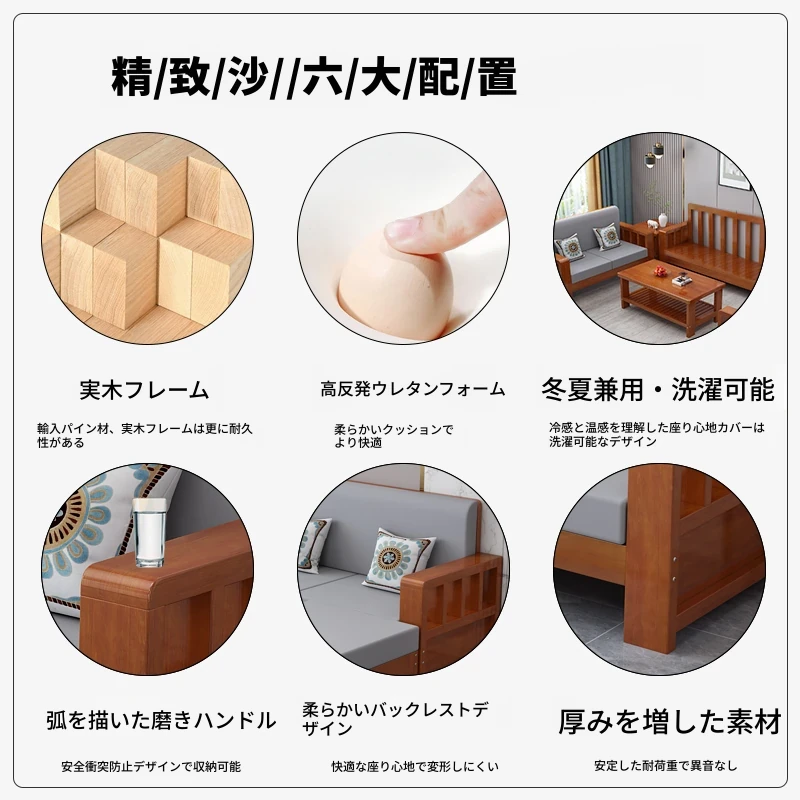 新中式天然木製ソファー|全木組み合わせ|田舎のリビングにぴったりな小型モダンデザイン|冬も夏も快適なシンプルな家具