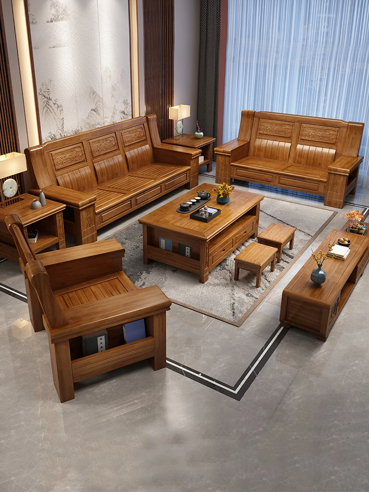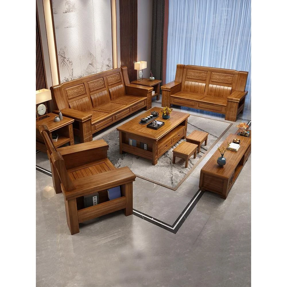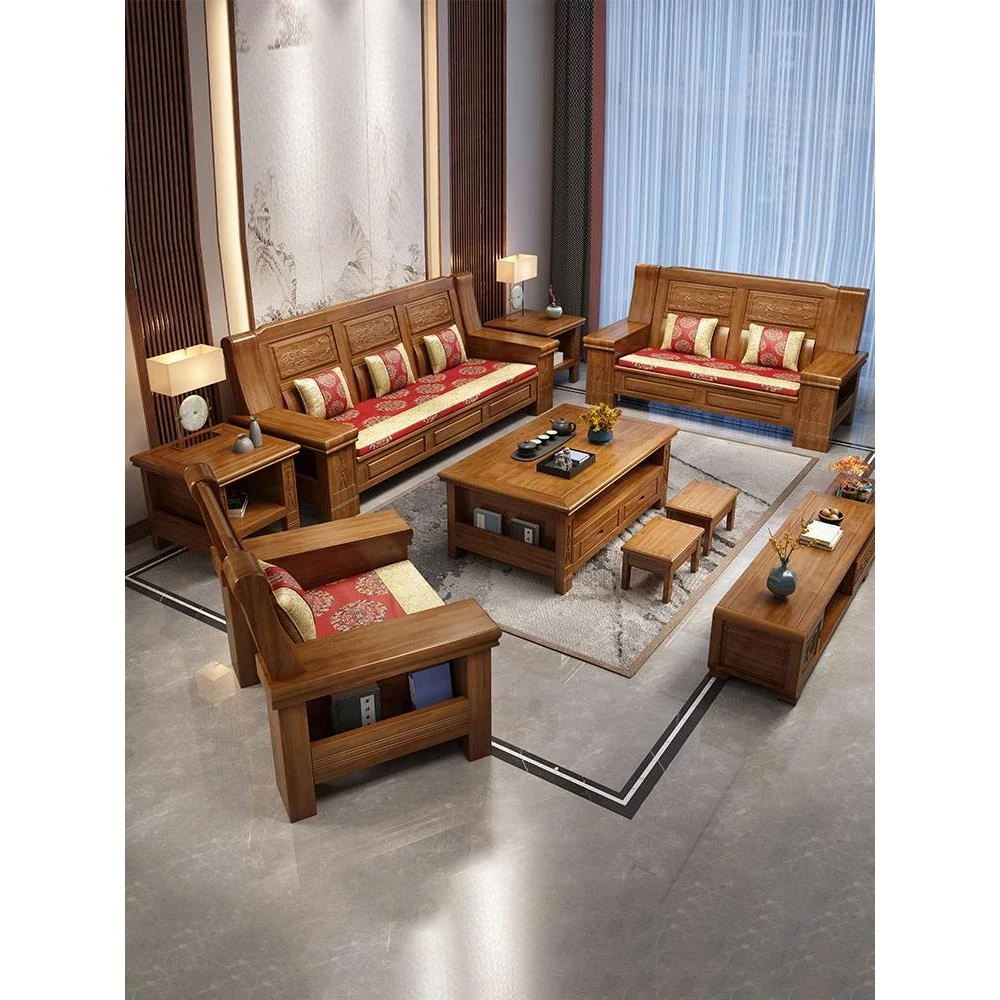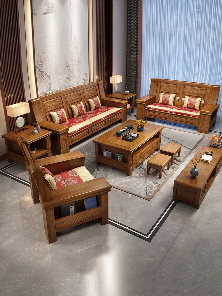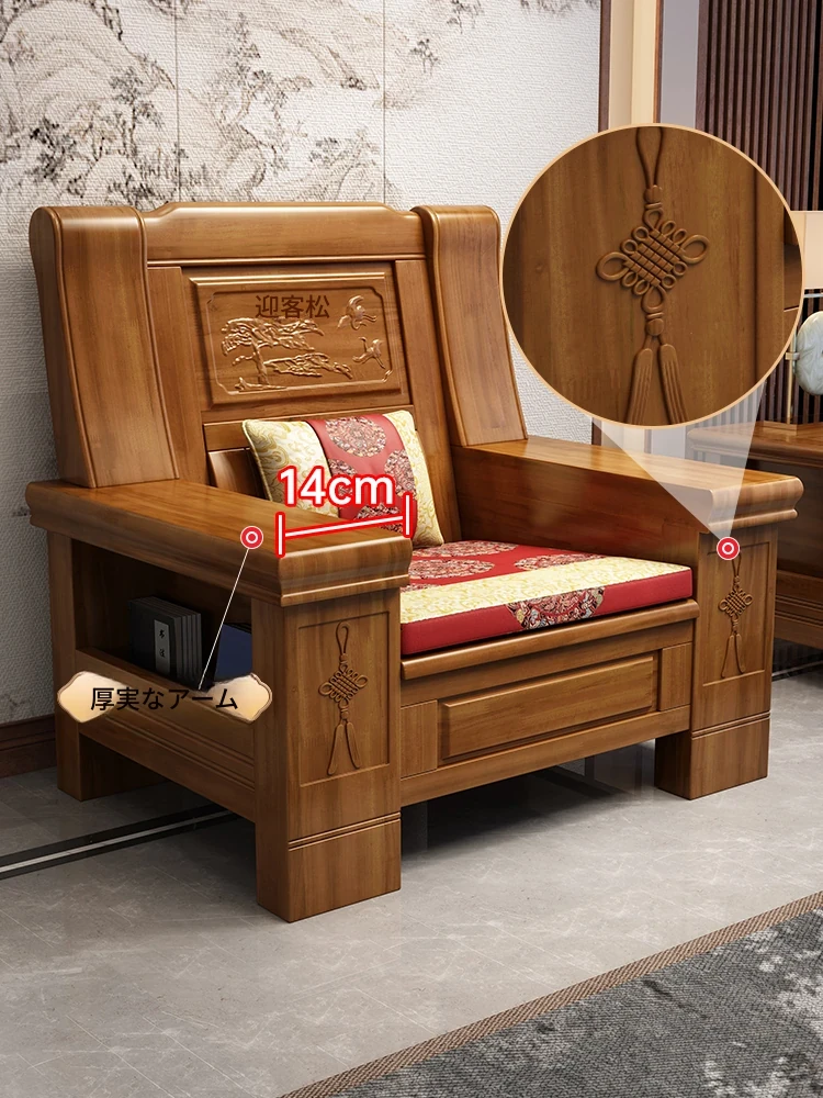 2024年新作!香樟木全実木製の現代中式ソファセット - 大小さまざまなお部屋にぴったりのアンティーク調彫刻デザインで、心地よいリビング空間を演出します!