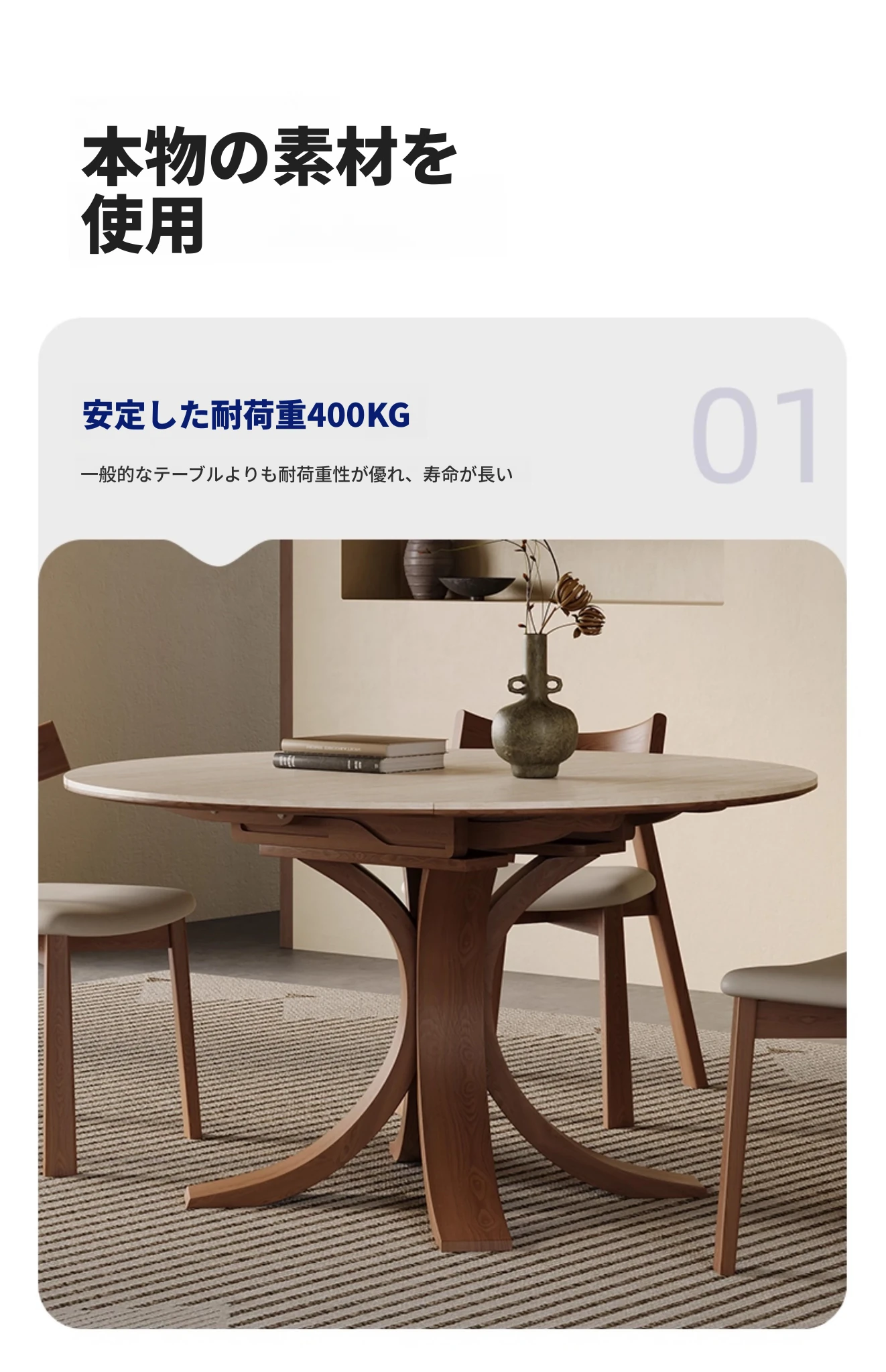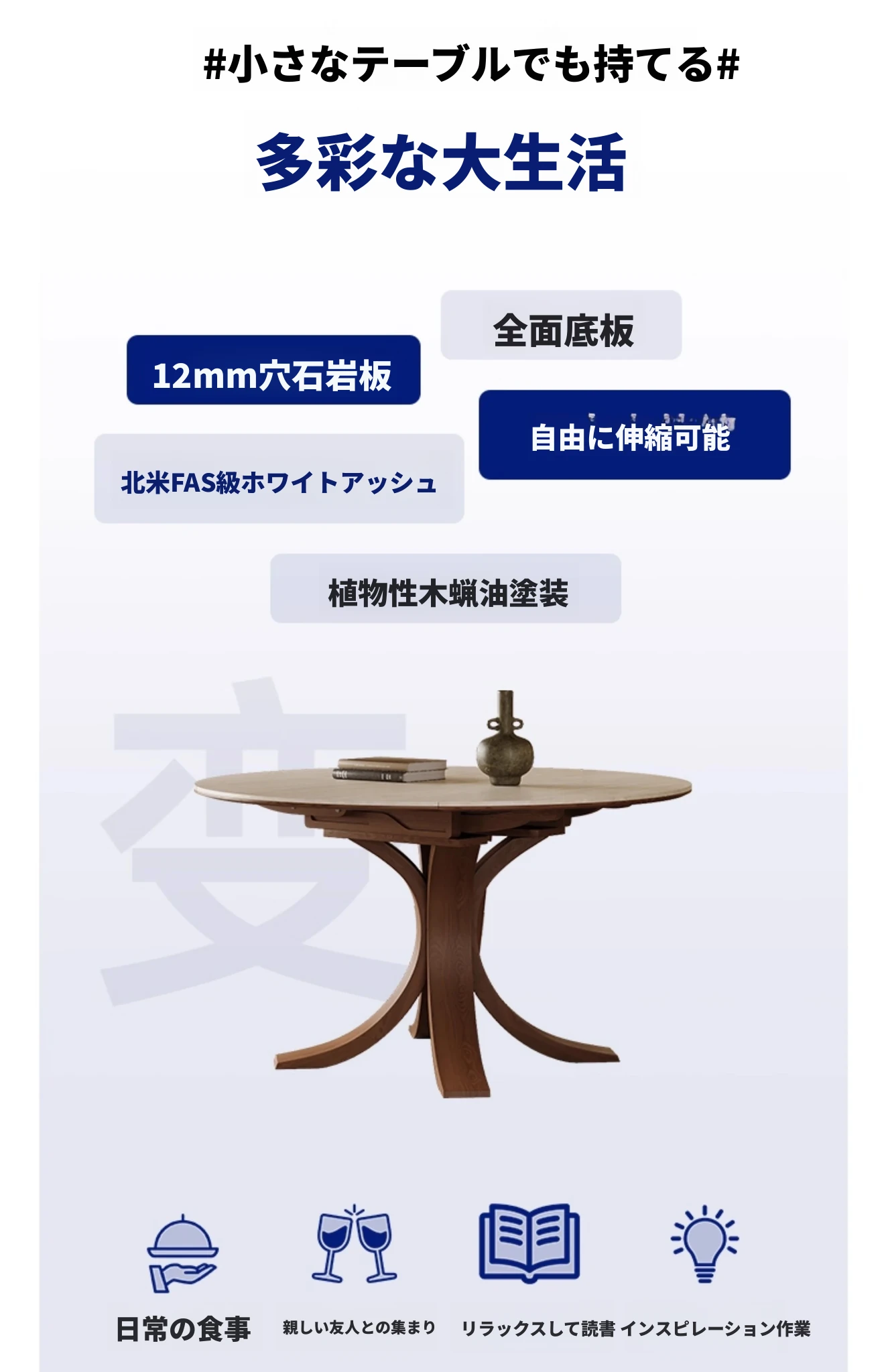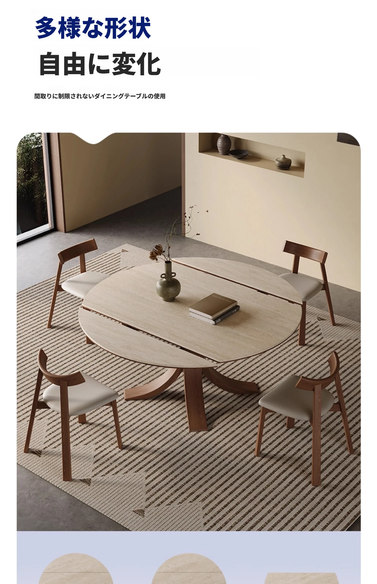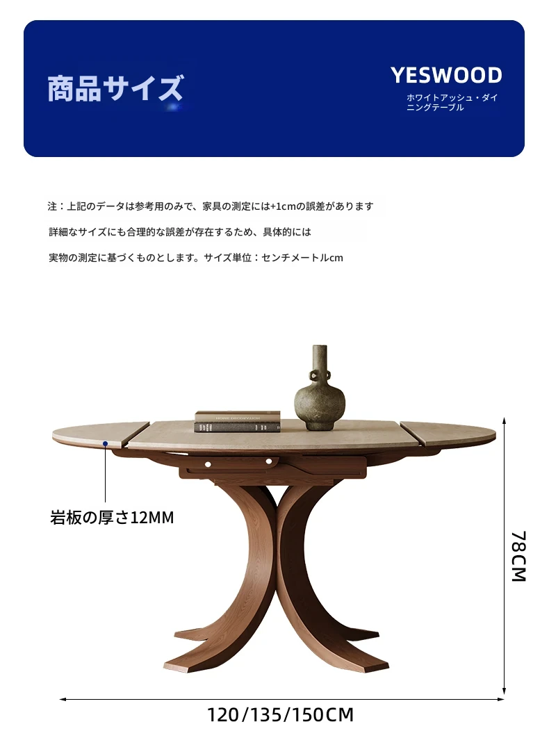 スタイリッシュな小蛮腰デザインの無垢材伸縮式ダイニングテーブル - コンパクトな家族向け、折りたたみ可能な現代的な丸型・四角型両用テーブル!おしゃれで機能的な空間を演出します。