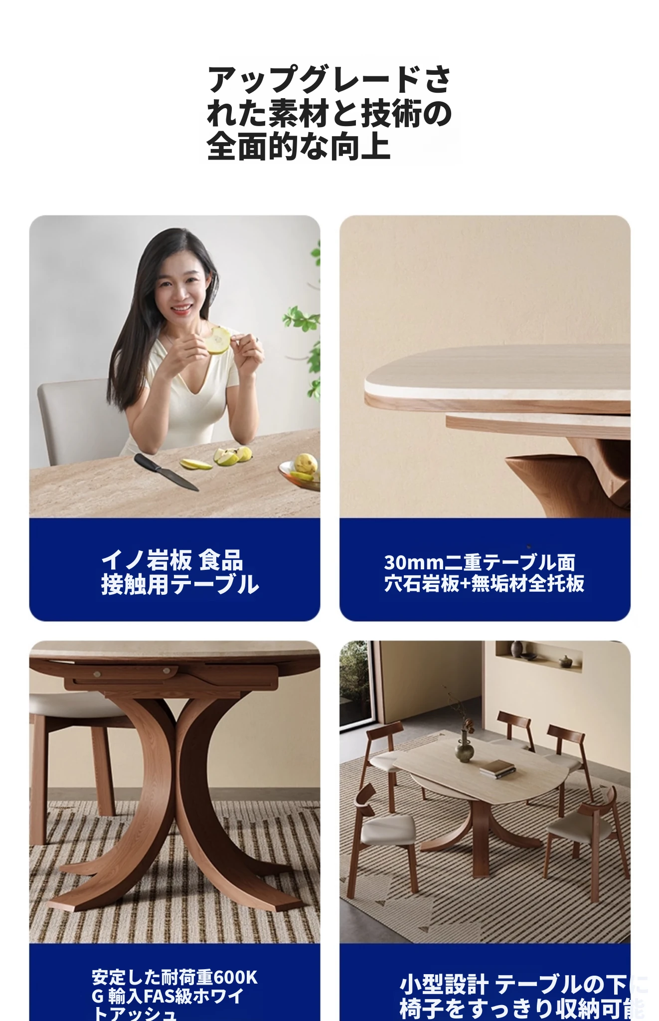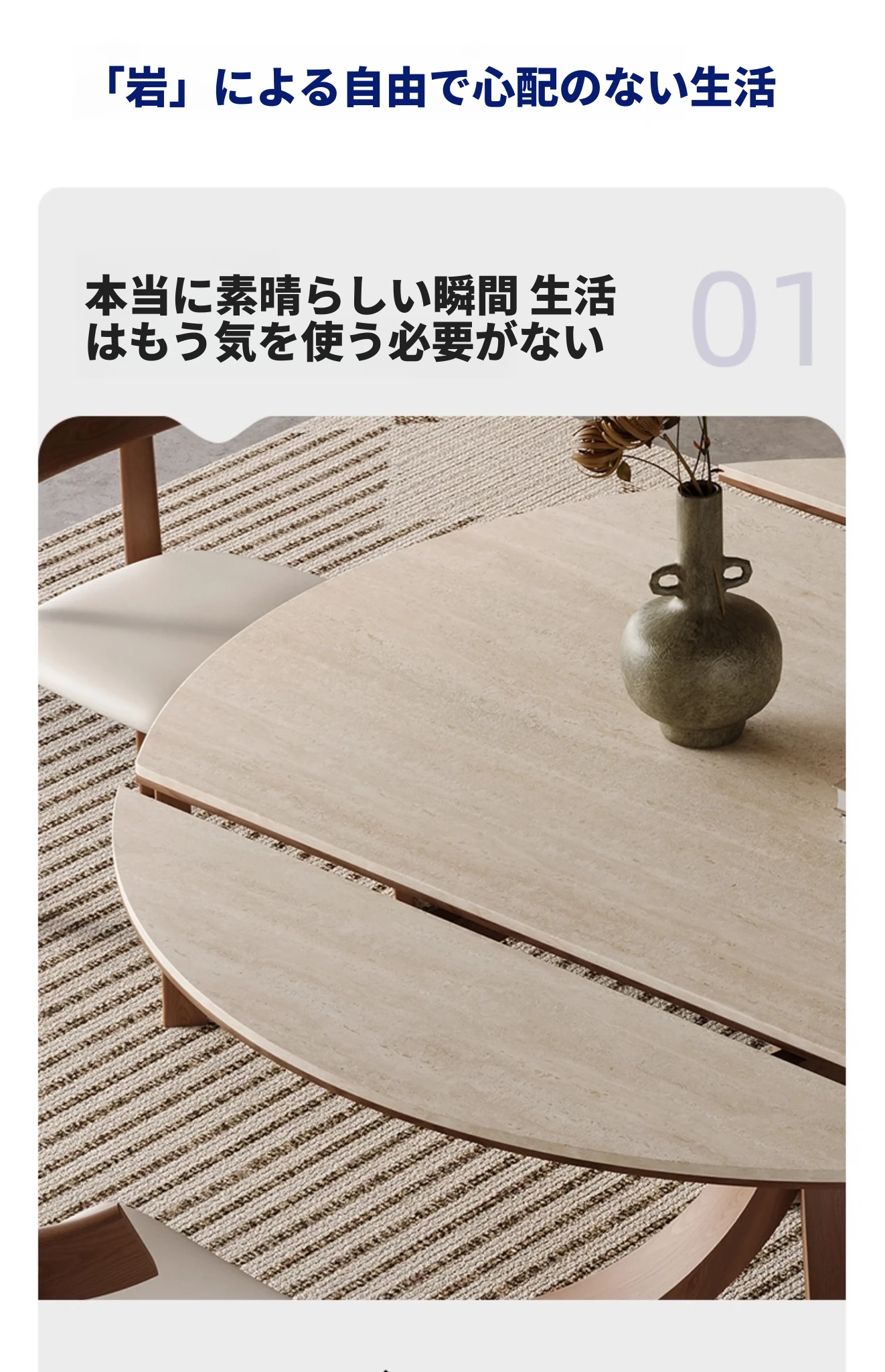 1.35メートル+4椅子【洞石岩板白蜡木】