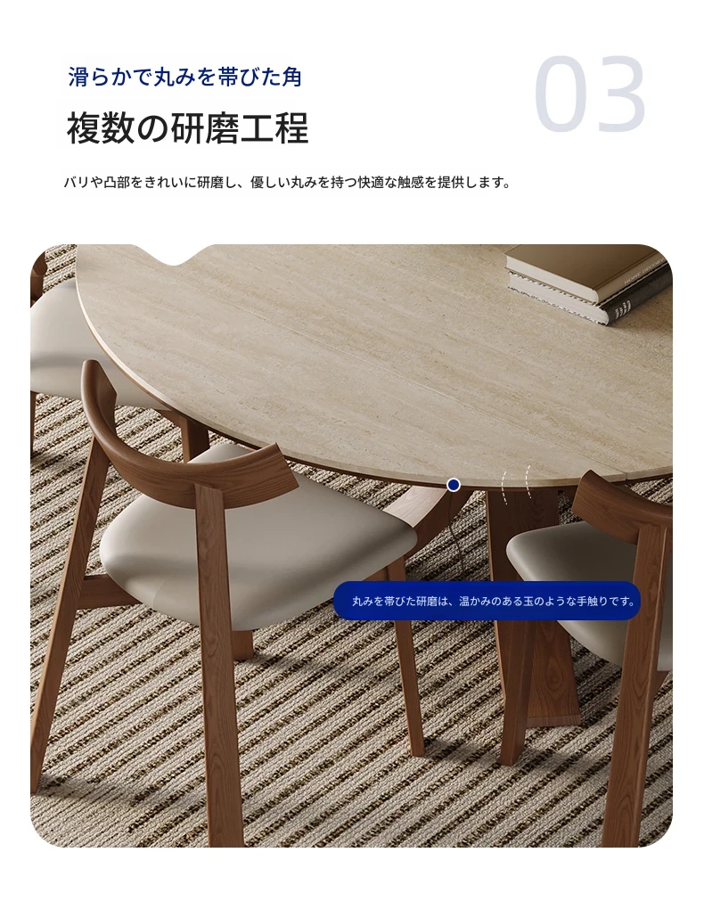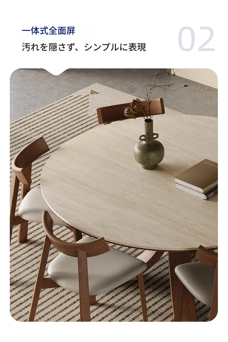 1.35メートル+6椅子【洞石岩板白蜡木】