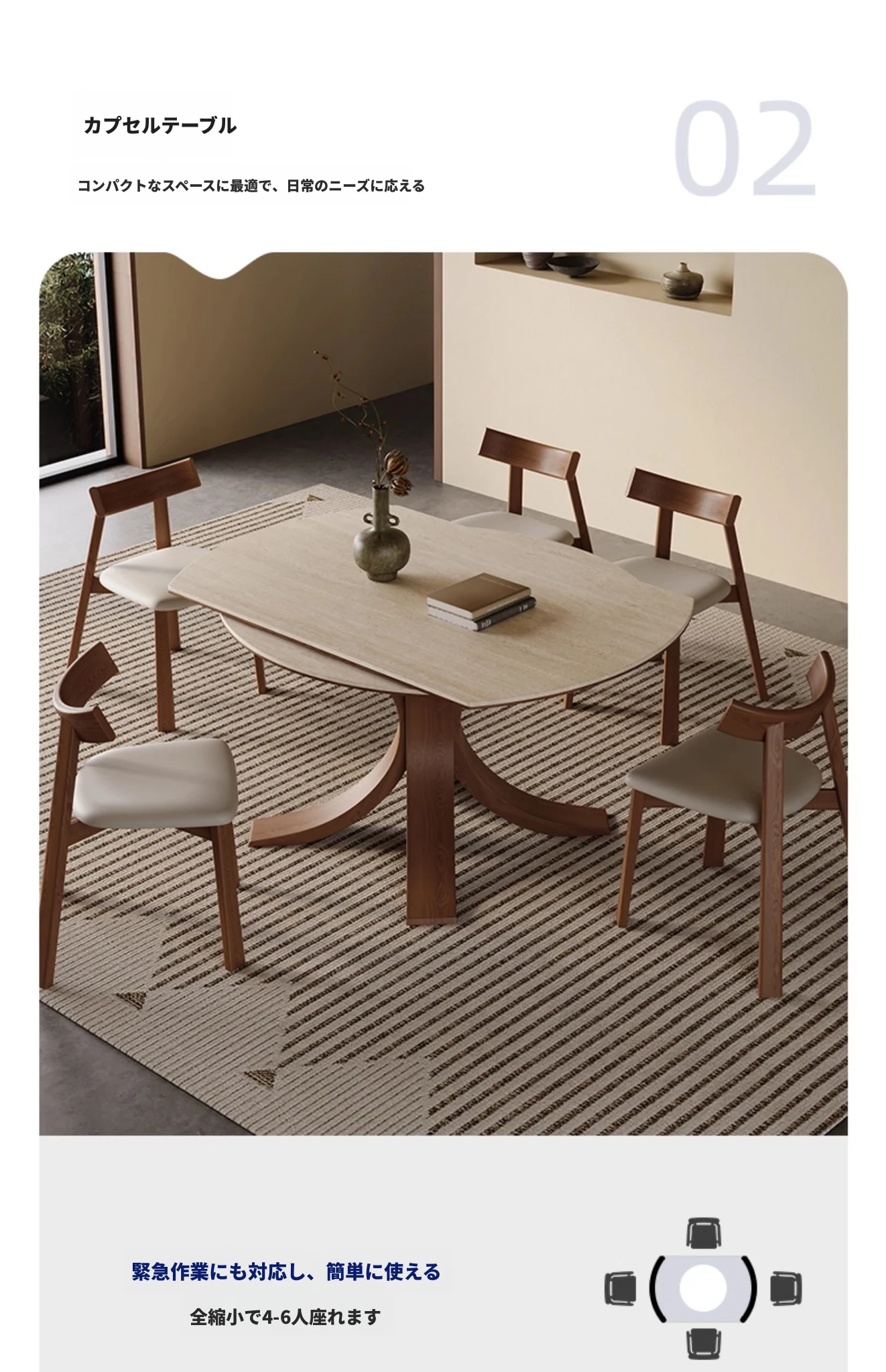 1.2メートル+6椅子【洞石岩板白蜡木】