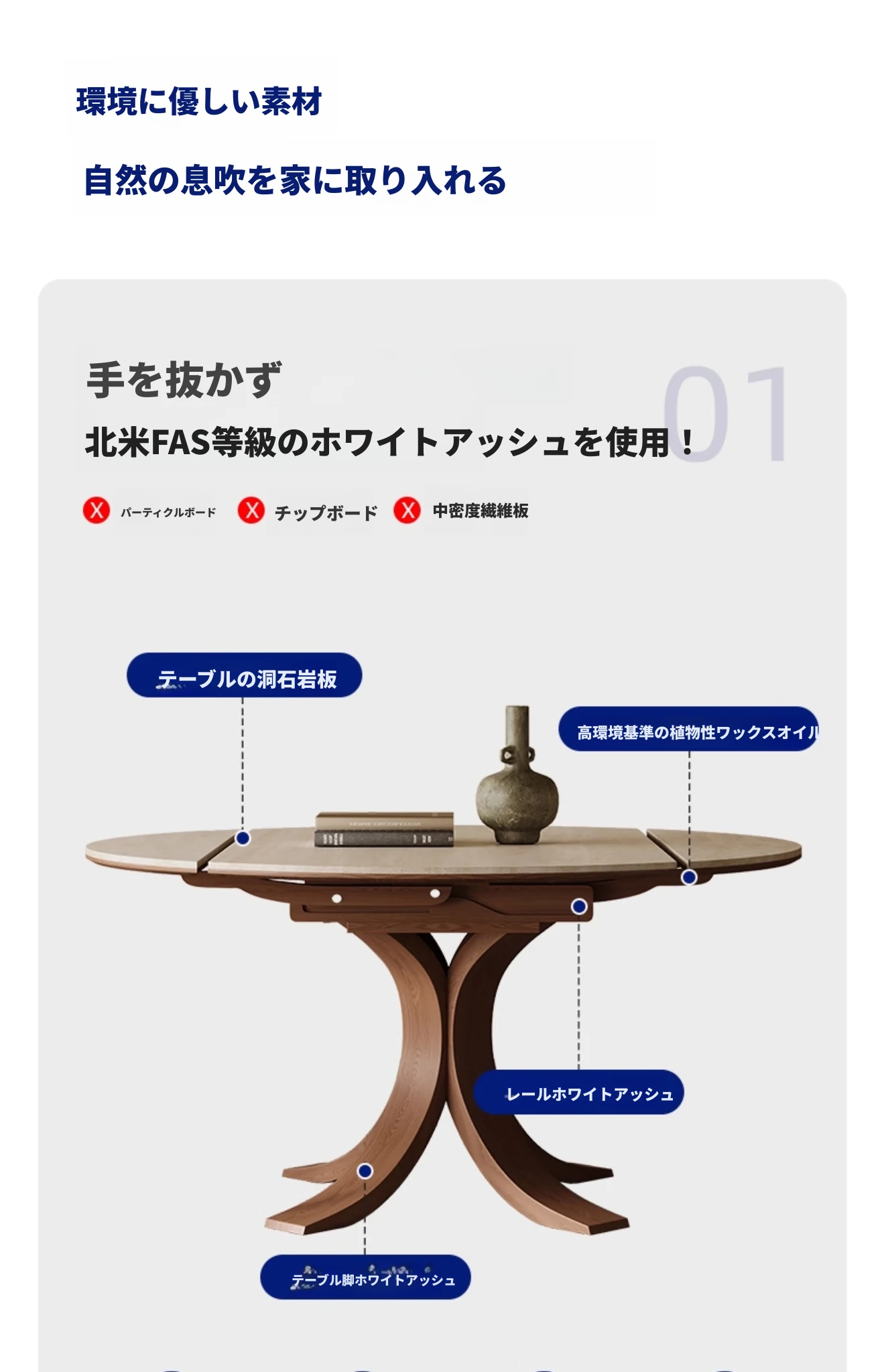 1.5メートル+6椅子【洞石岩板白蜡木】
