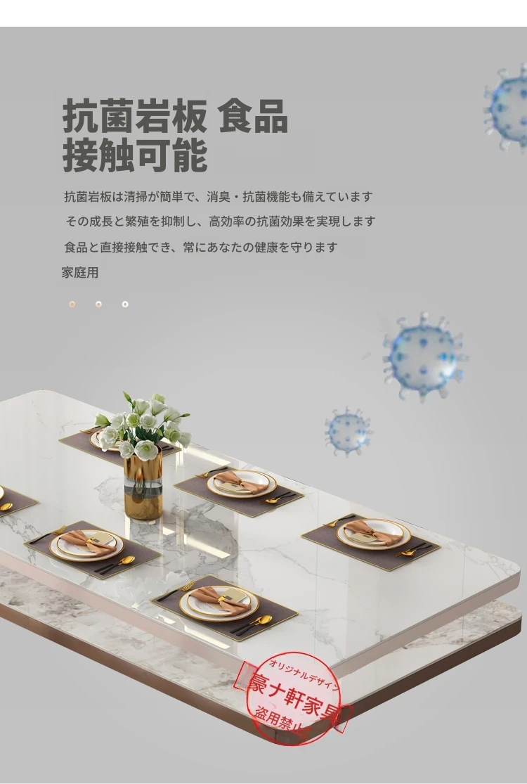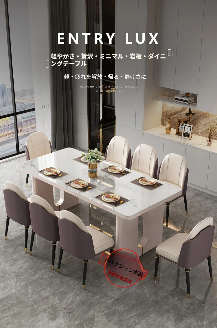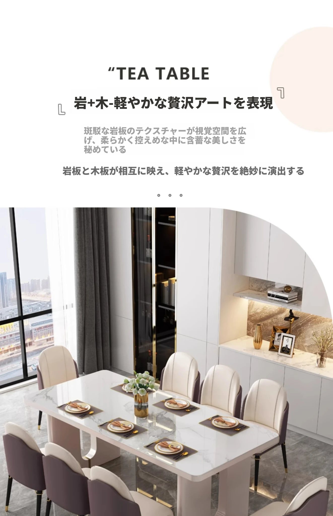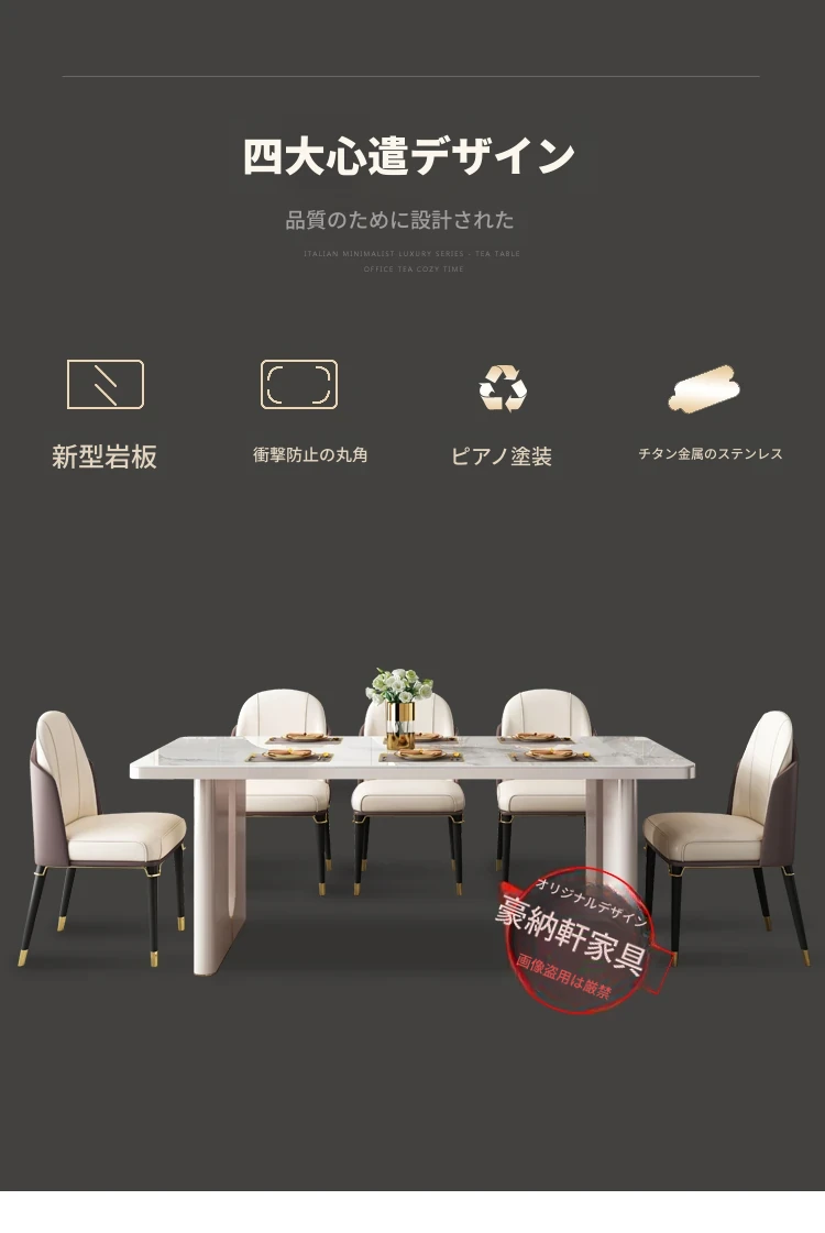 高級感溢れる光沢岩板ダイニングテーブル - モダンなイタリアンスタイルの長方形デザイン、小さなお部屋にもぴったりな高品質テーブル&チェアセット!
