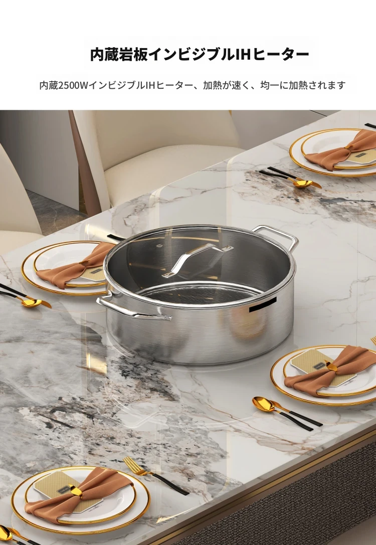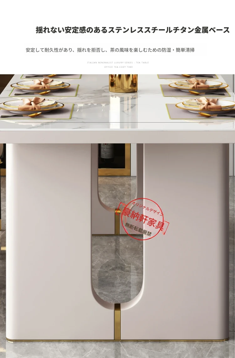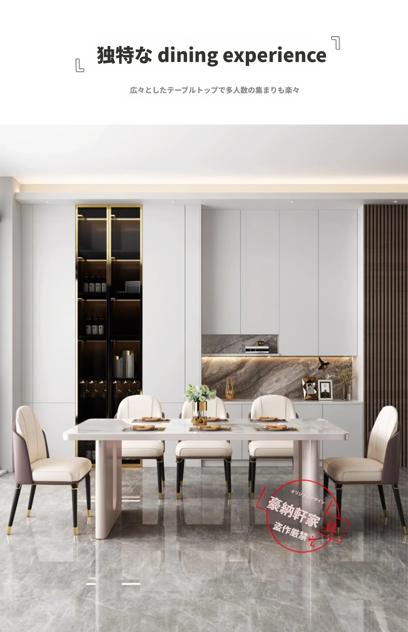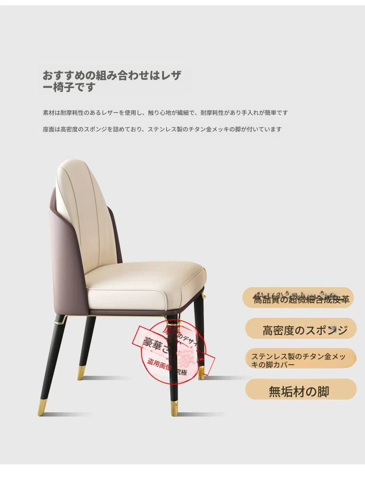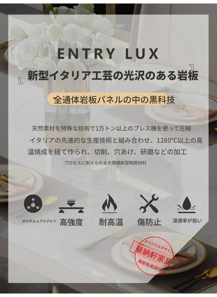 高級感溢れる光沢岩板ダイニングテーブル - モダンなイタリアンスタイルの長方形デザイン、小さなお部屋にもぴったりな高品質テーブル&チェアセット!