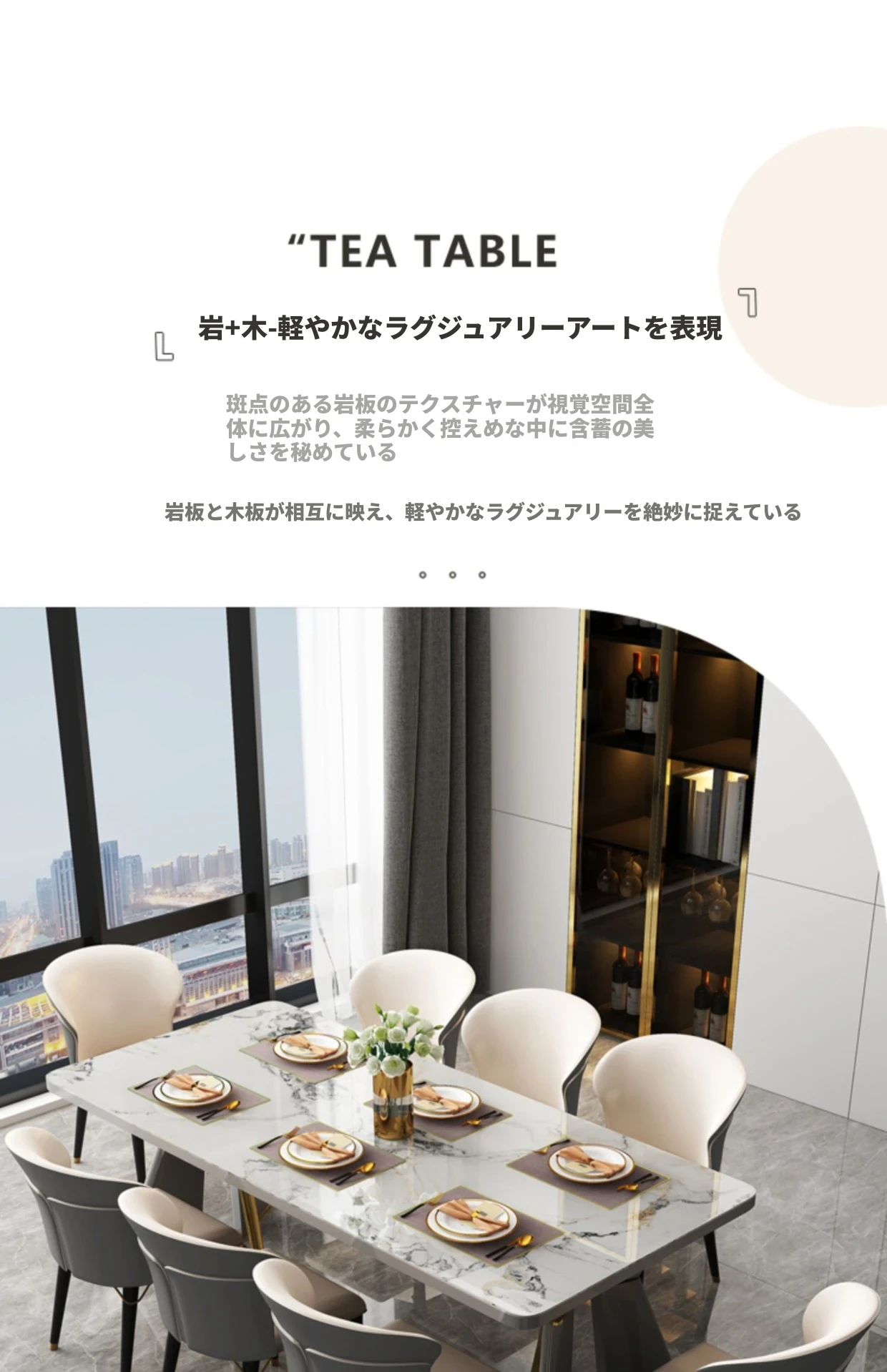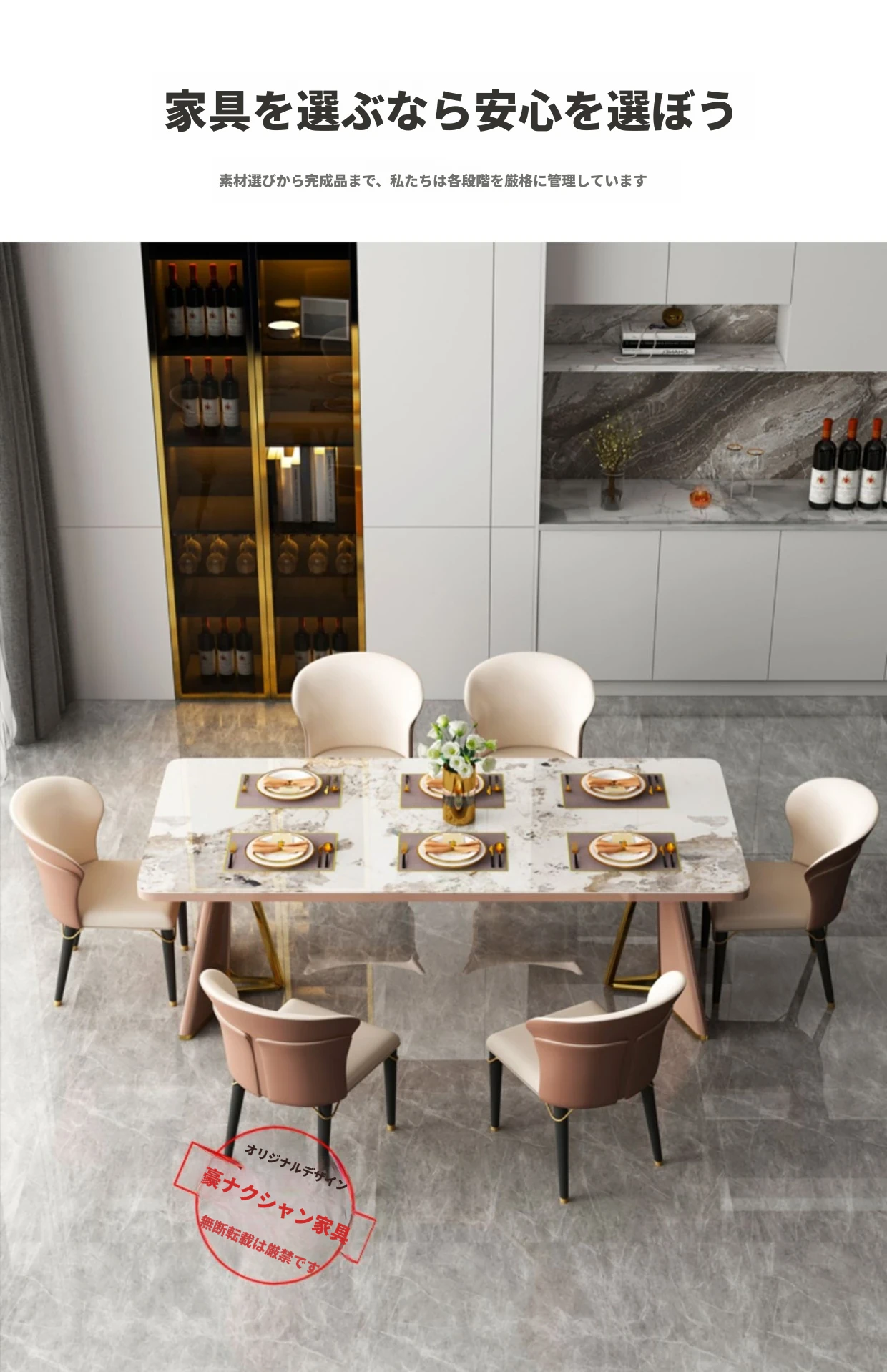 2.2メートルダイニングテーブル+6椅子抗菌岩板