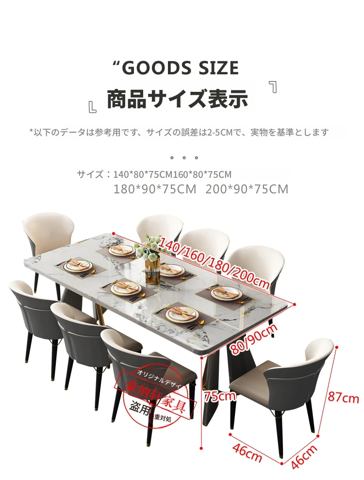 2メートルダイニングテーブル+8椅子抗菌岩板
