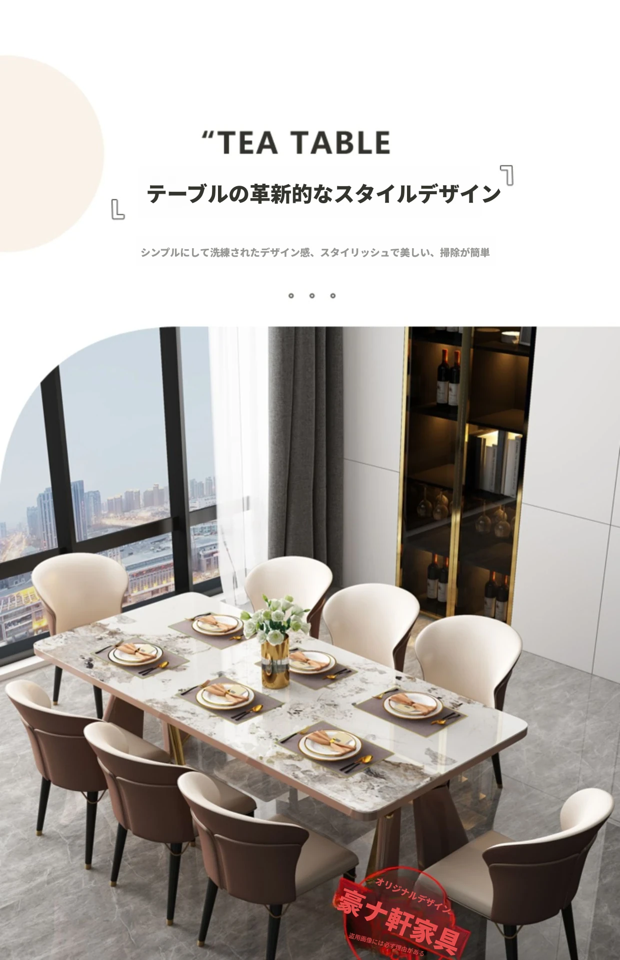 2.2メートルダイニングテーブル+10椅子抗菌岩板