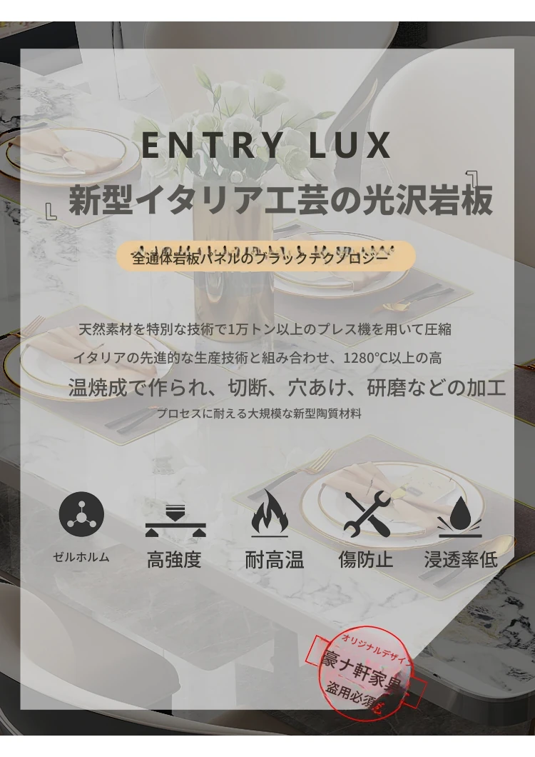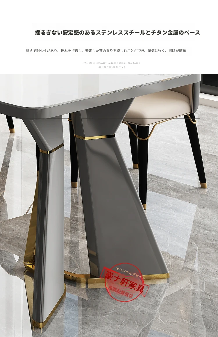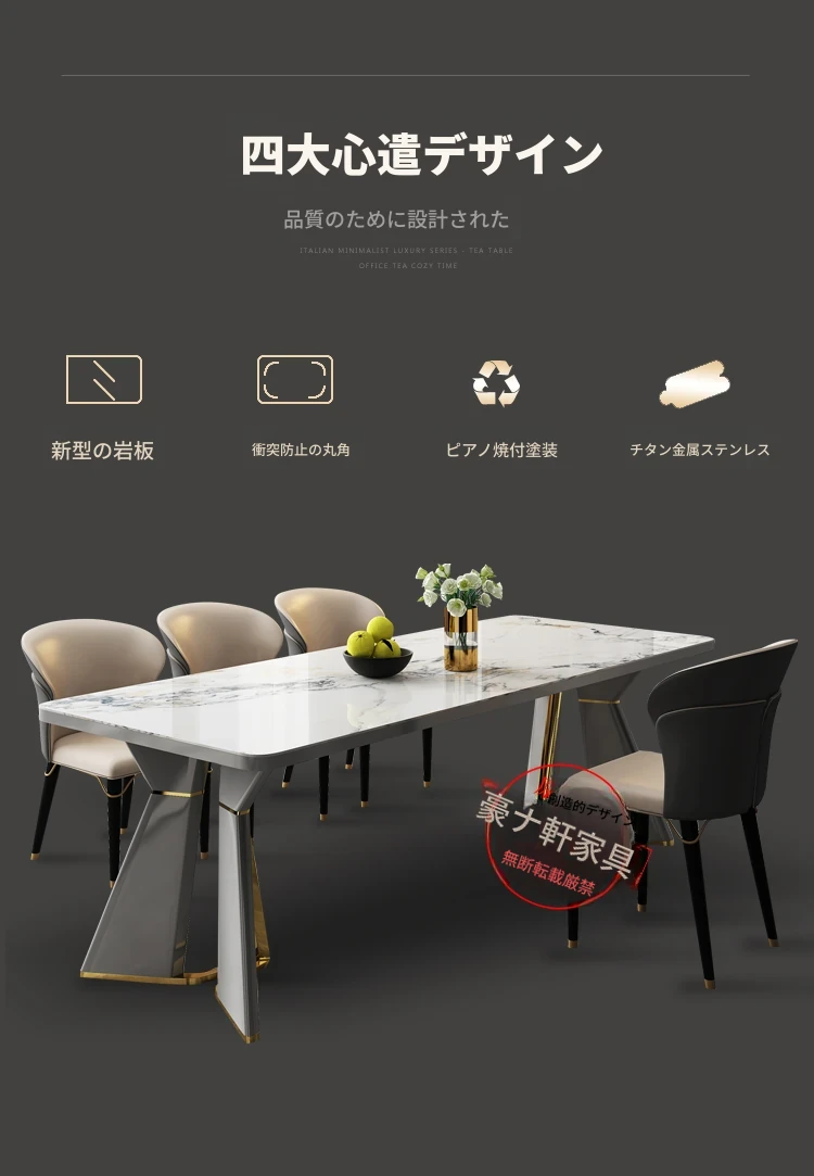 光沢のある岩板ダイニングテーブル|現代イタリアンスタイルのラグジュアリー|高級長方形大理石製|小型住宅に最適なテーブル椅子セット!おしゃれで機能的な空間を演出します。