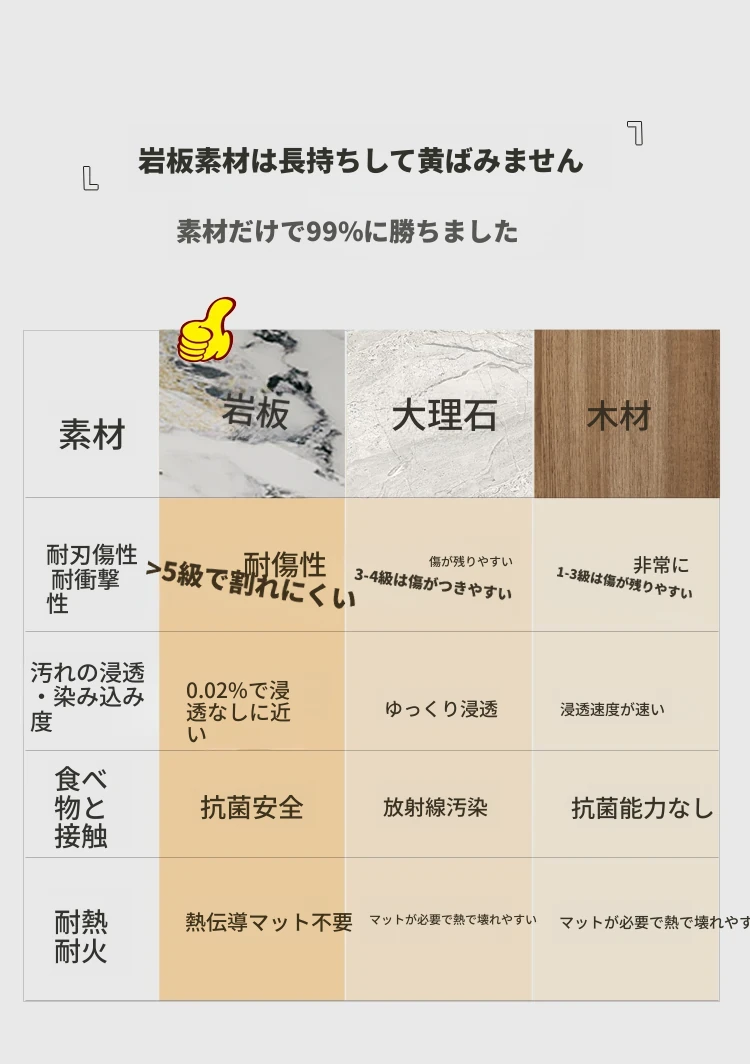 2.2*1.0メートルダイニングテーブル抗菌岩板