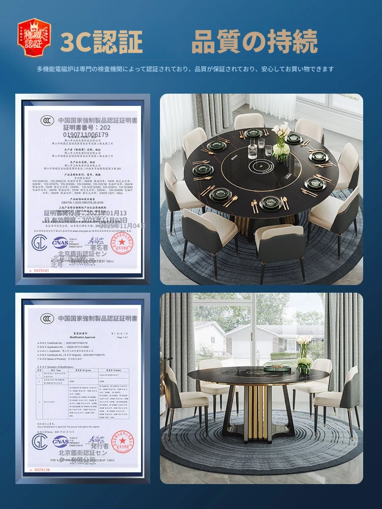 1.35メートルのダイニングテーブル+6椅子【温かい料理+電磁調理器+電動回転台】