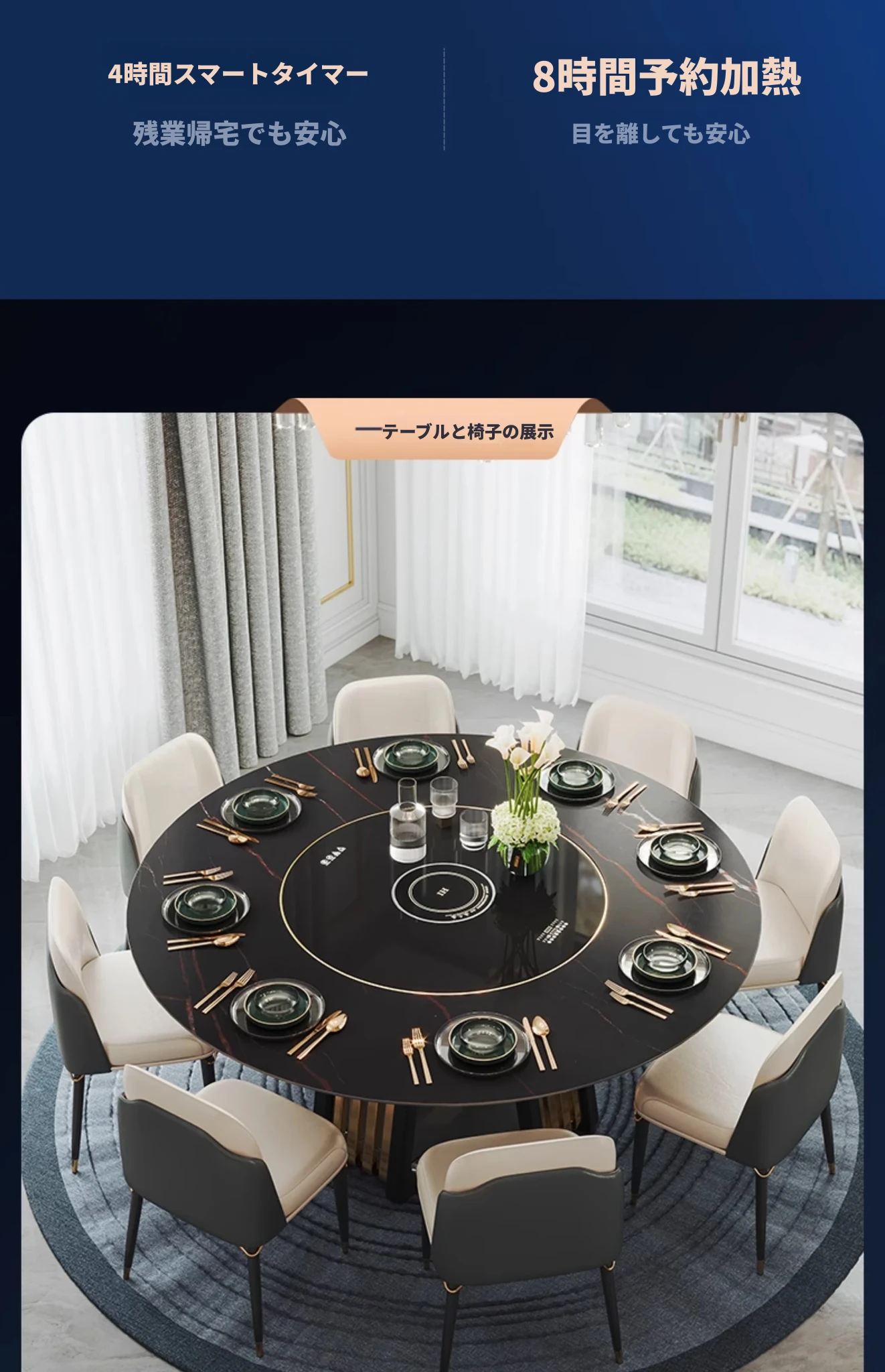 1.5メートルのダイニングテーブル+8椅子【温かい料理+電磁調理器+電動回転台】