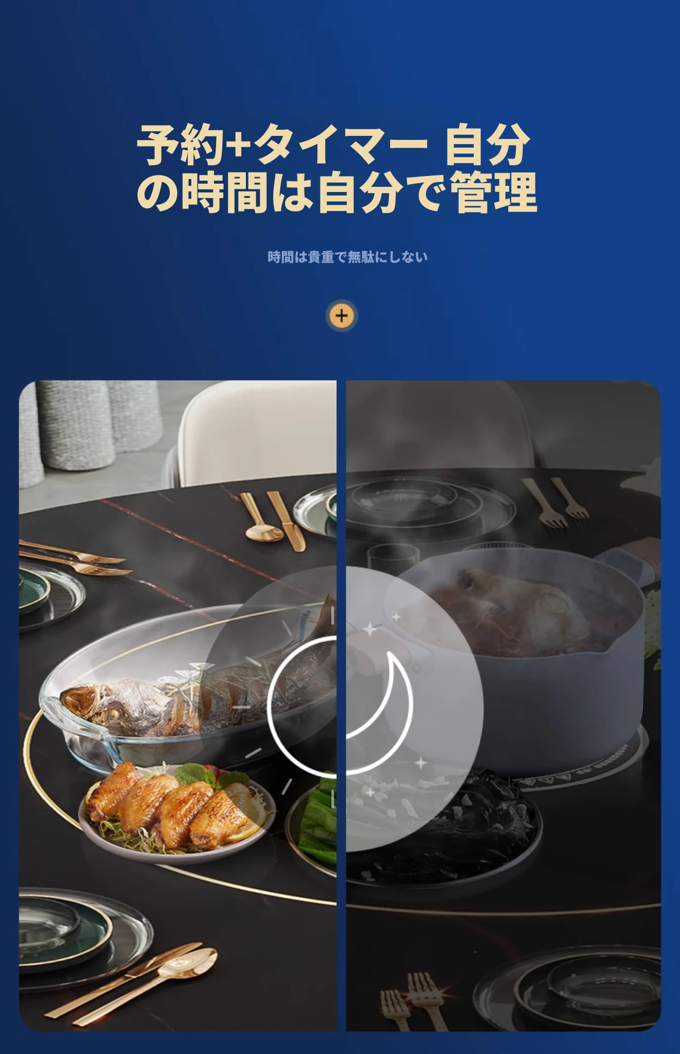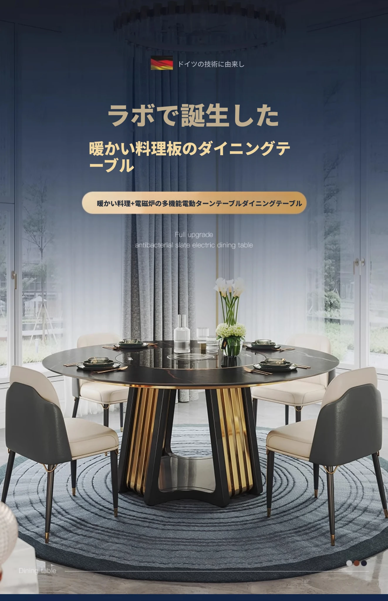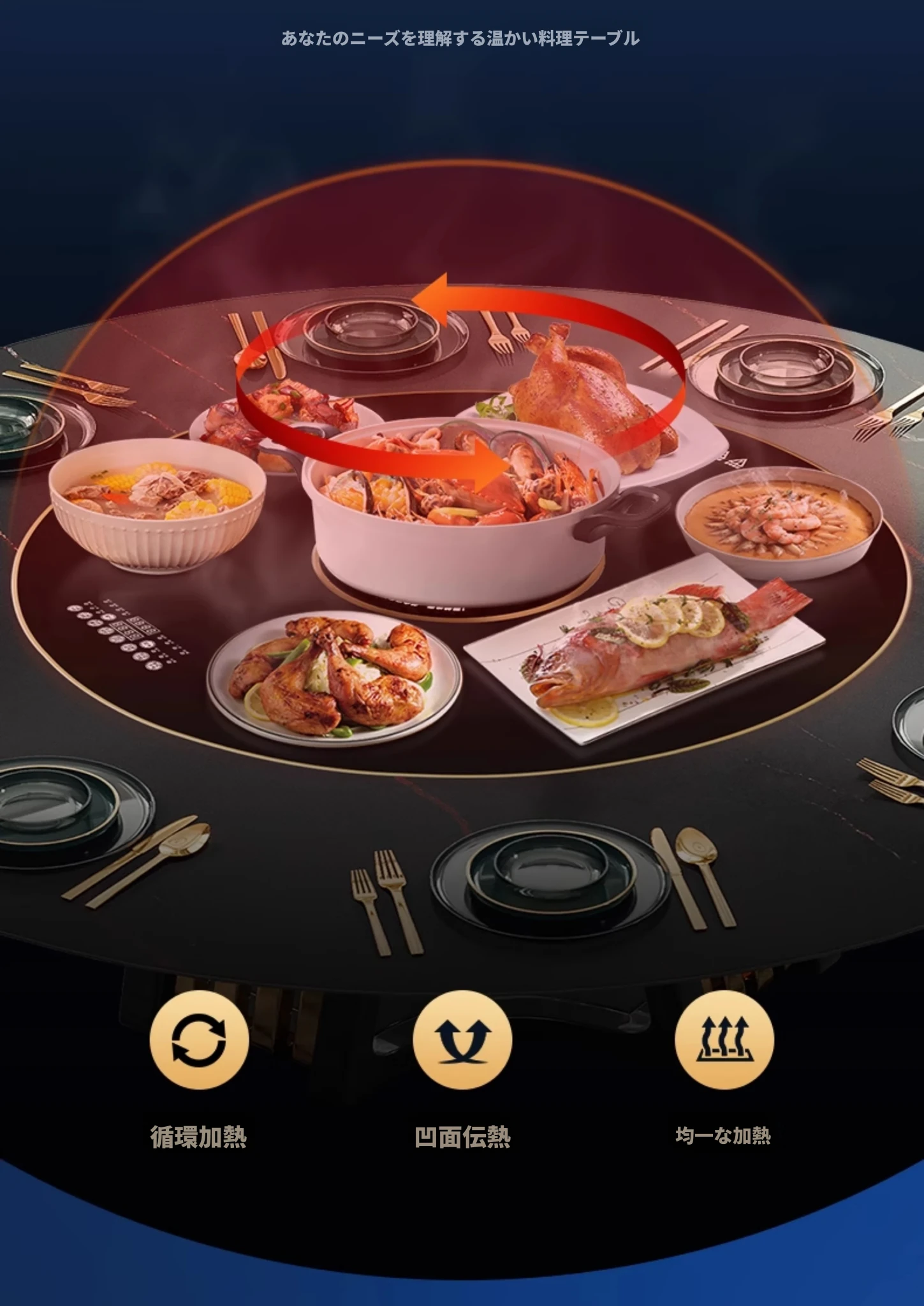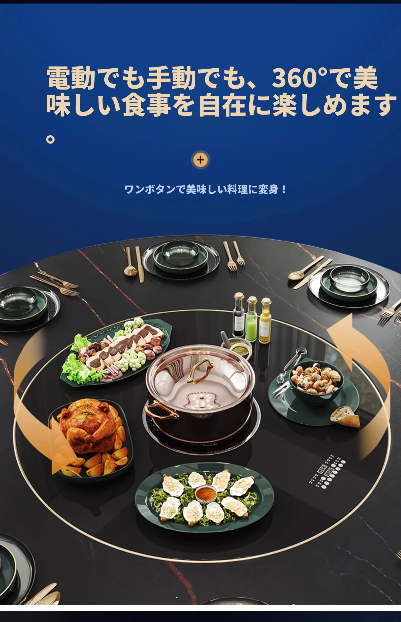 1.5メートルのダイニングテーブル【温かい料理+電磁調理器+電動回転台】