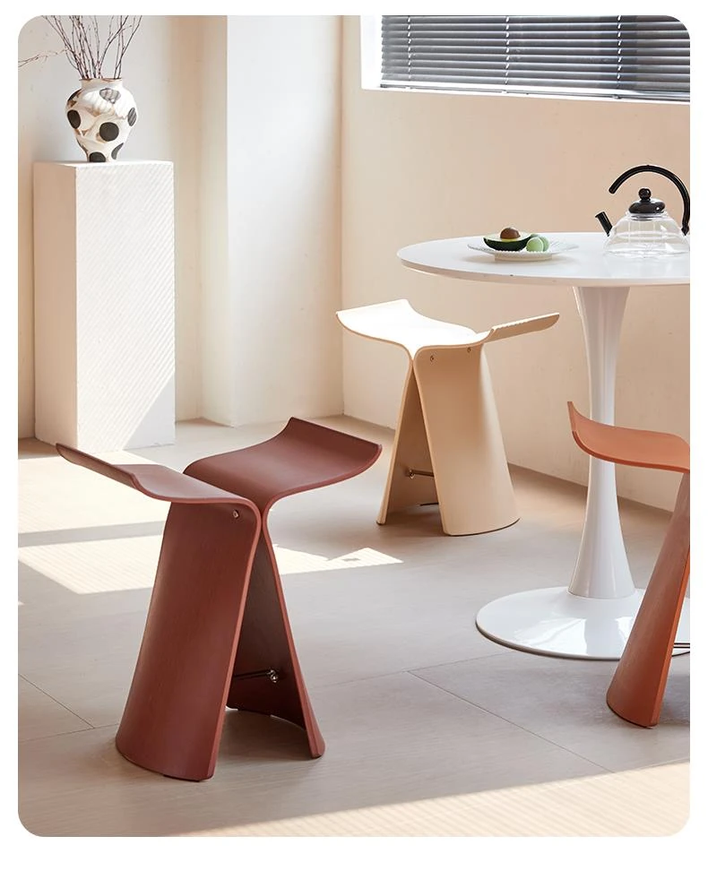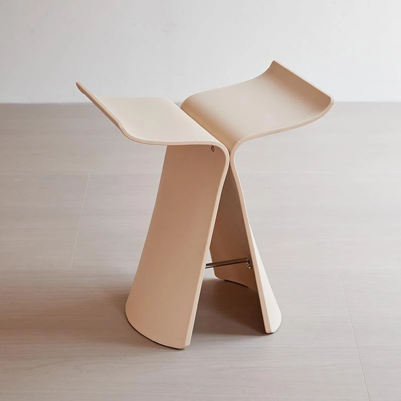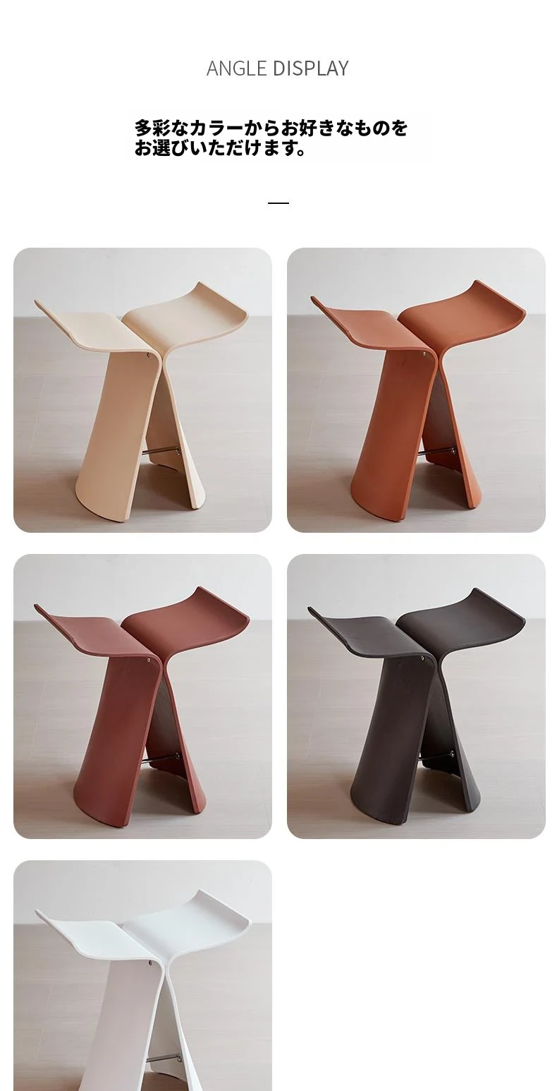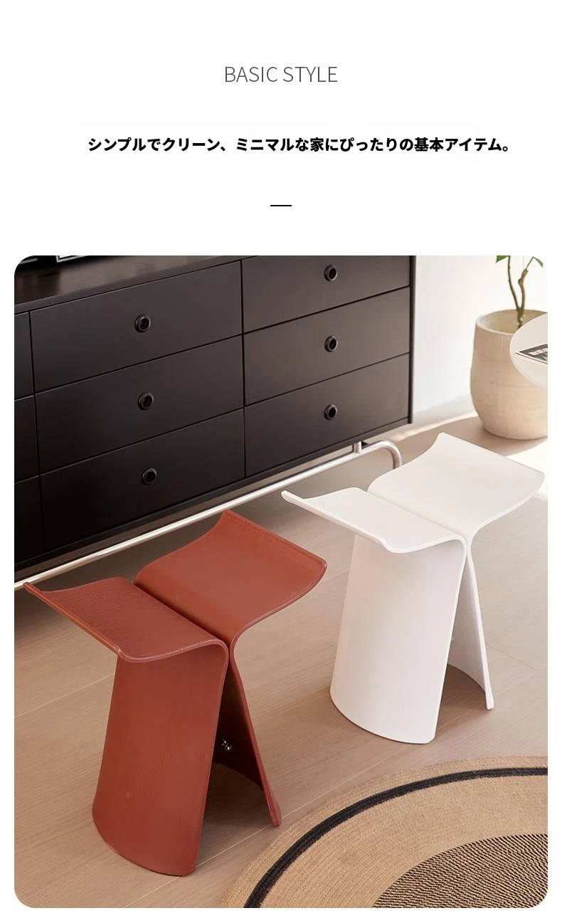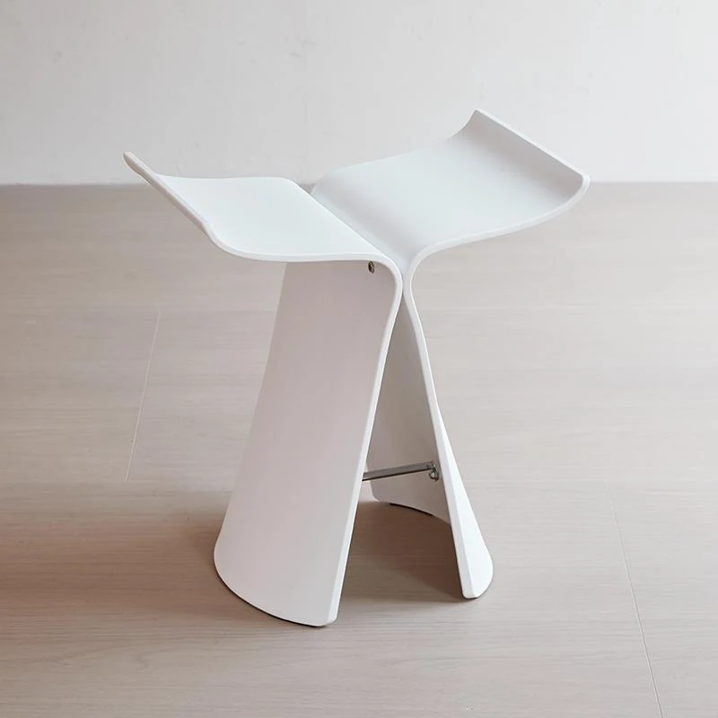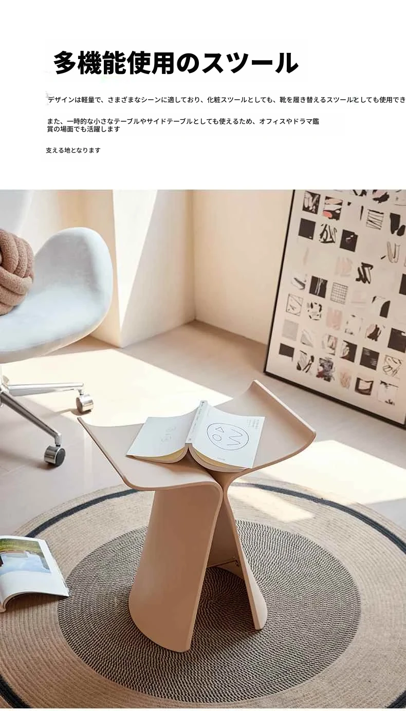 おしゃれなアクリルバタフライスツール - リビングにぴったりな現代的でシンプルなデザインの靴替え用スツール!コンパクトで使いやすく、メイクアップやくつろぎのひとときに最適です。