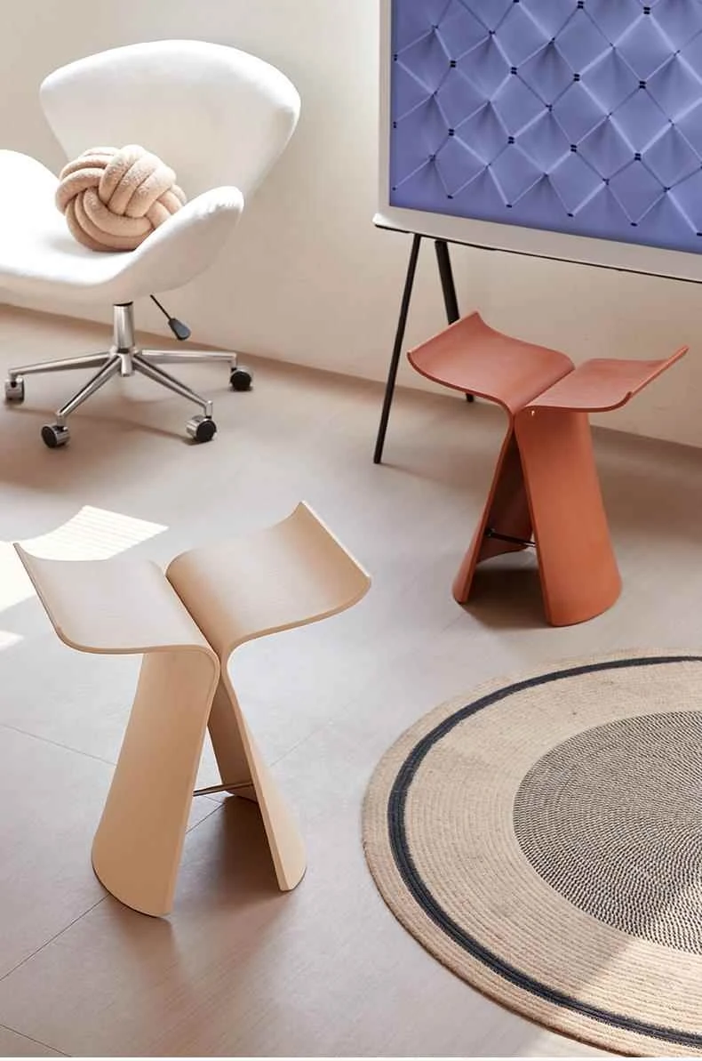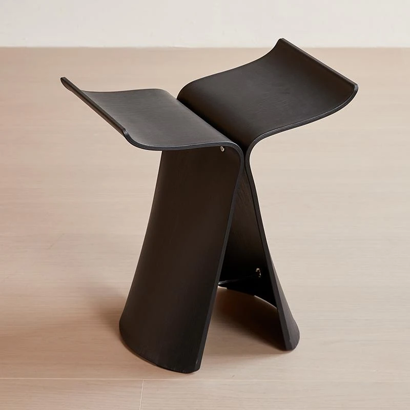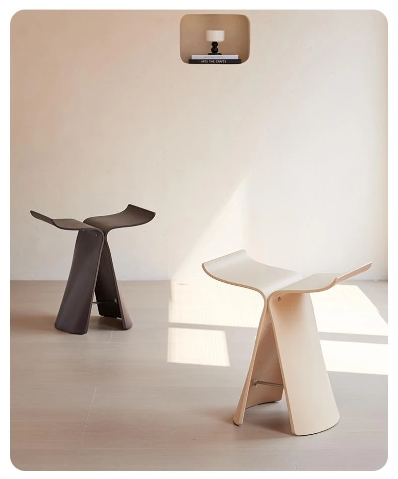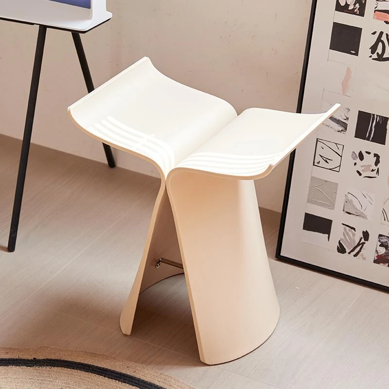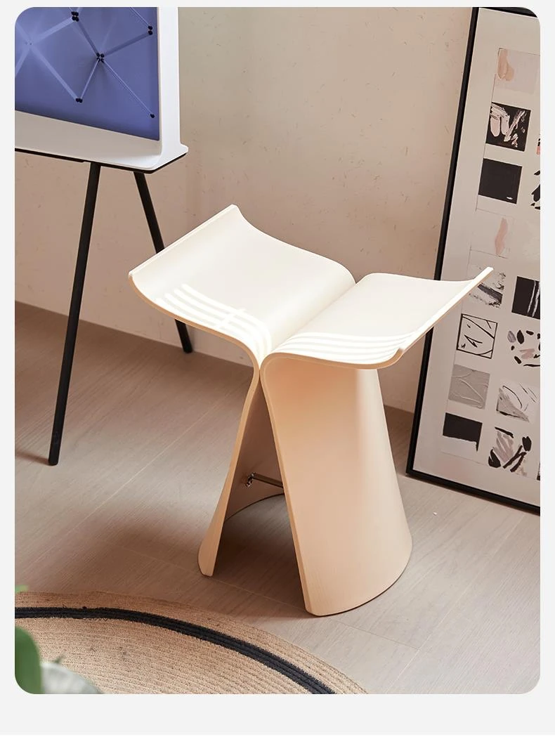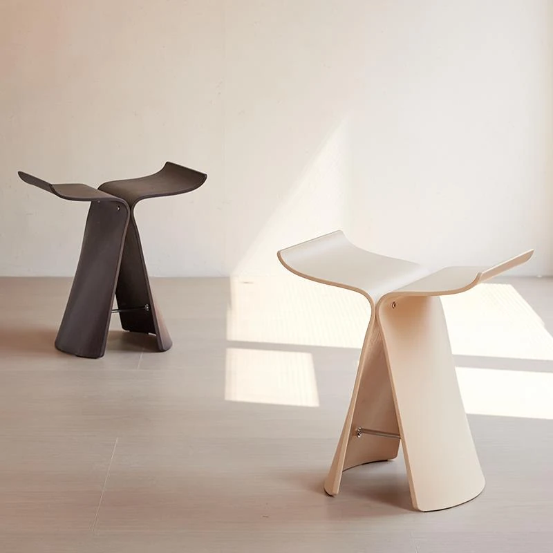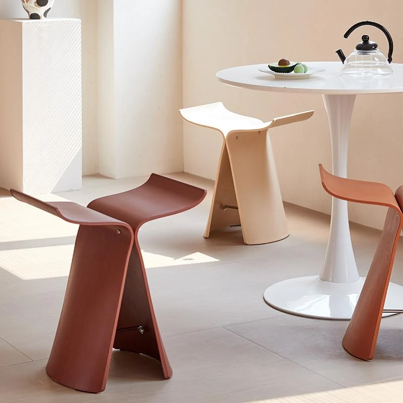 おしゃれなアクリルバタフライスツール - リビングにぴったりな現代的でシンプルなデザインの靴替え用スツール!コンパクトで使いやすく、メイクアップやくつろぎのひとときに最適です。