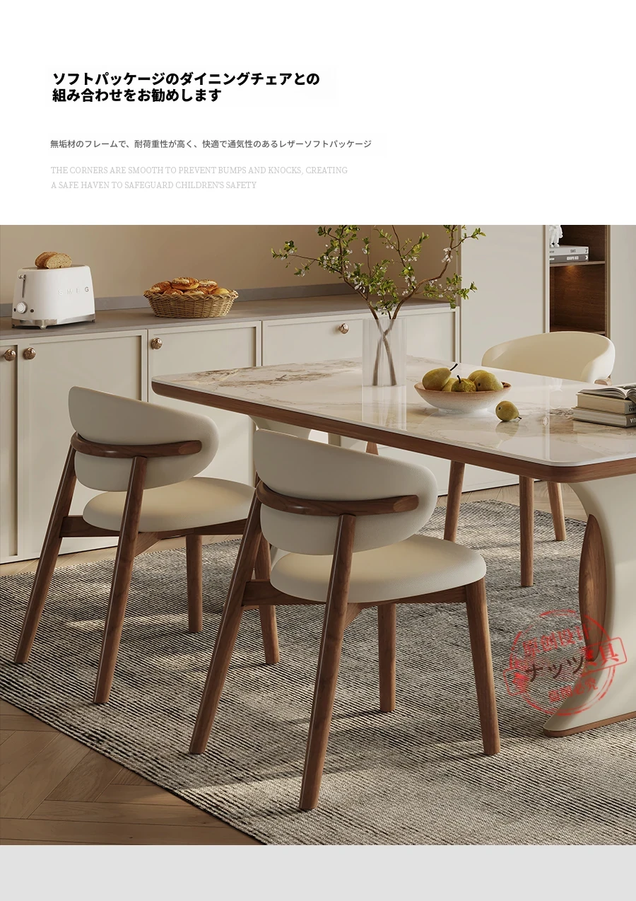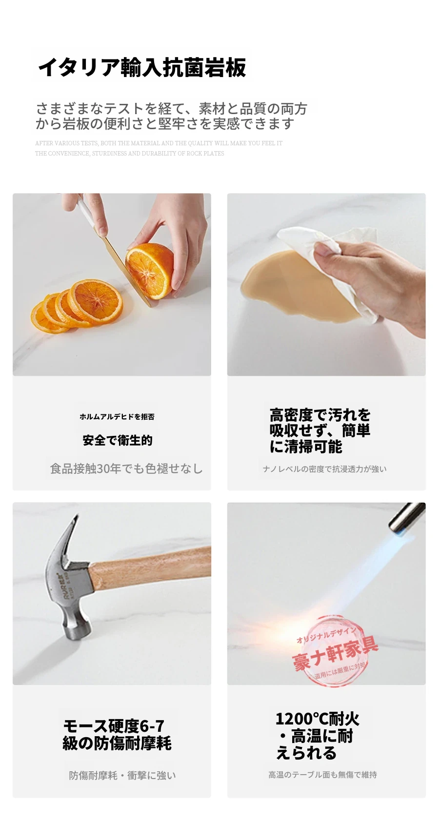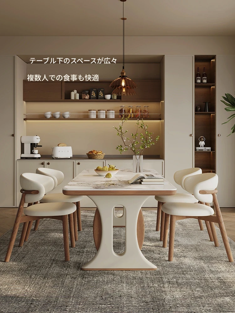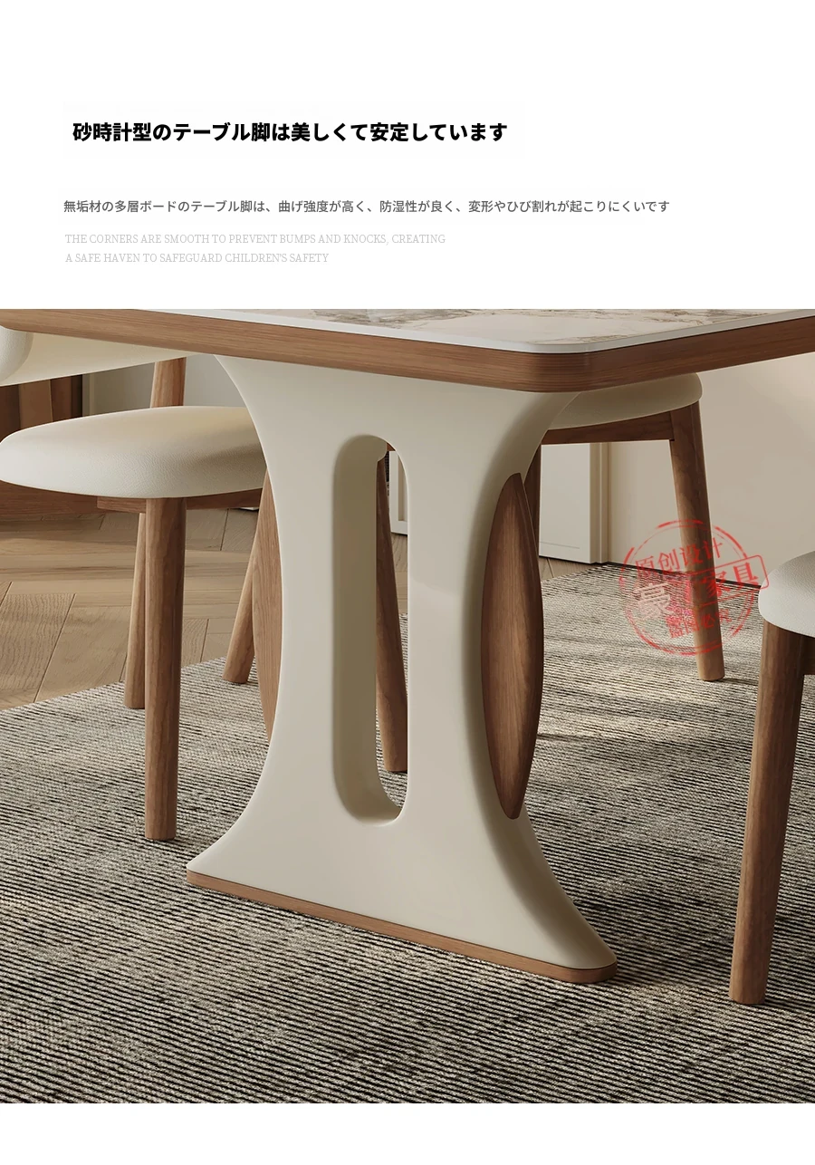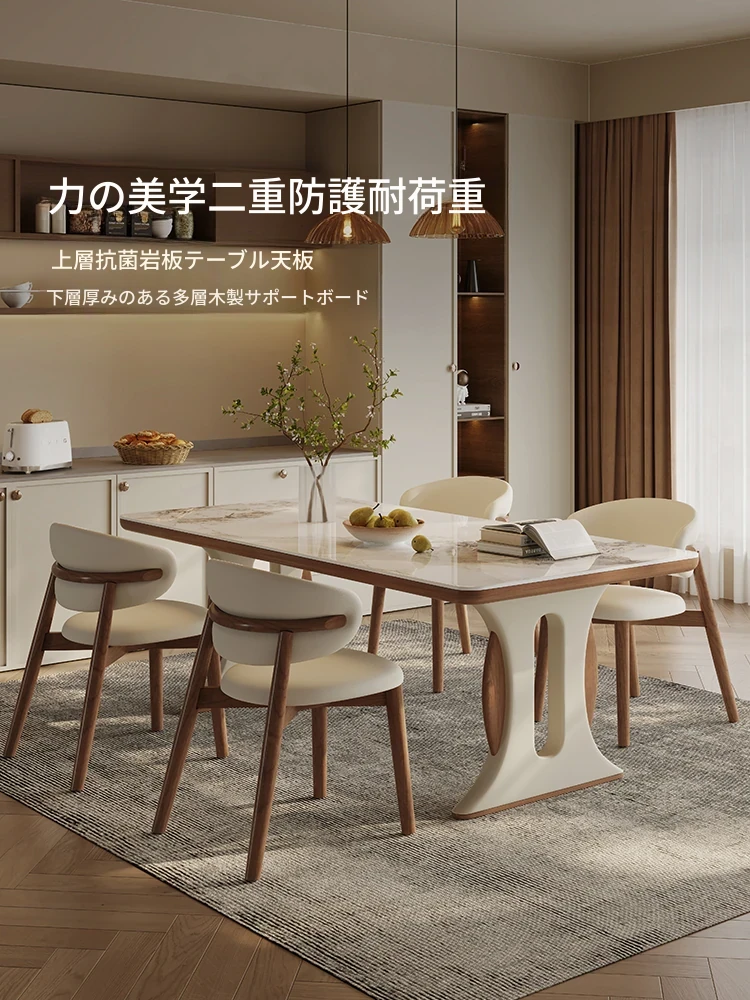 軽やかな高級感!輸入洞石製の岩板ダイニングテーブルセット - モダンでシンプルなデザイン、小型住宅にもぴったりの長方形クリエイティブダイニングテーブル。快適な食事空間を演出します!