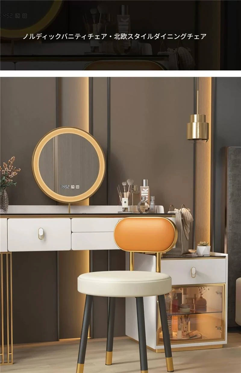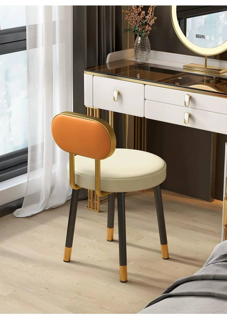 女性のための化粧台専用スツール - シンプルでモダンなデザイン、主寝室にもぴったりなラウンドスツール。軽やかで高級感のある家庭用椅子で、あなたの美しさを引き立てます。