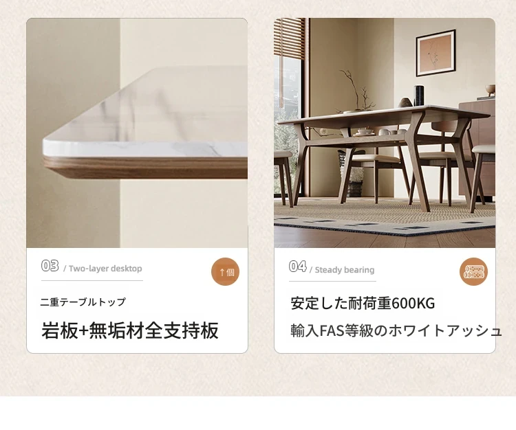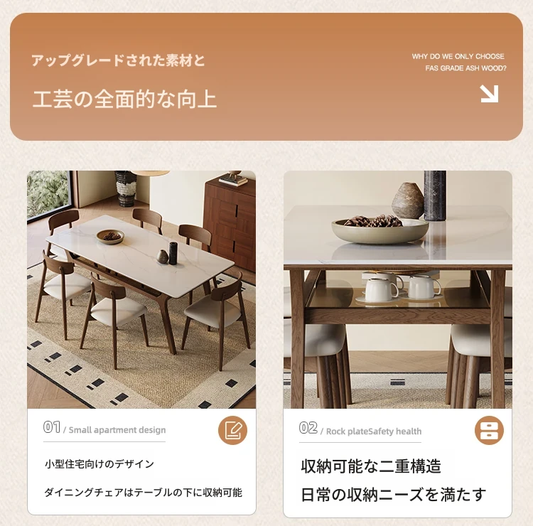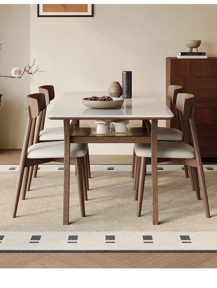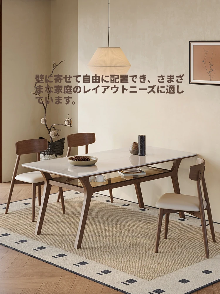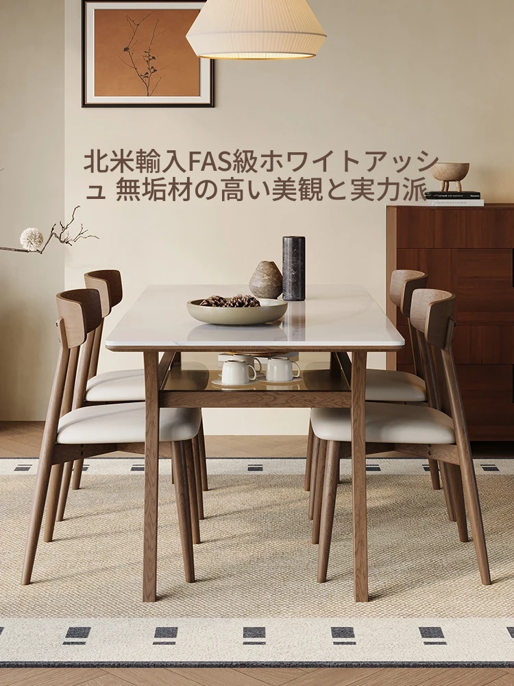 侘寂スタイルの無垢材ロックボードダイニングテーブル&チェアセット - ホワイトアッシュとウォールナットの現代的でシンプルなデザイン、2025年モデル。おしゃれで機能的な食卓を演出します!