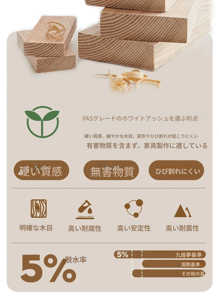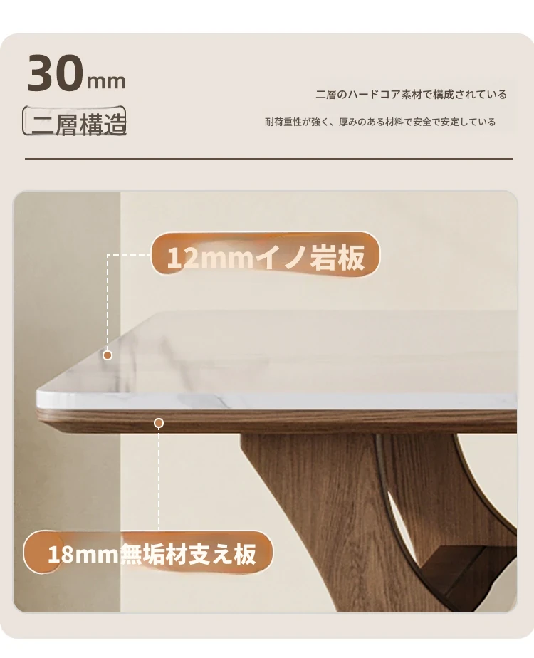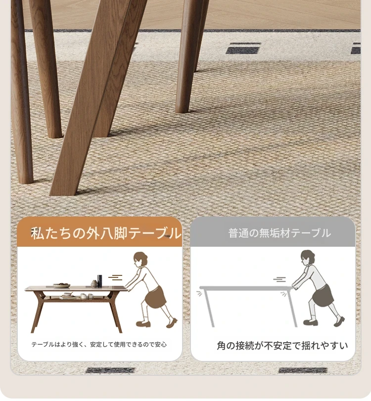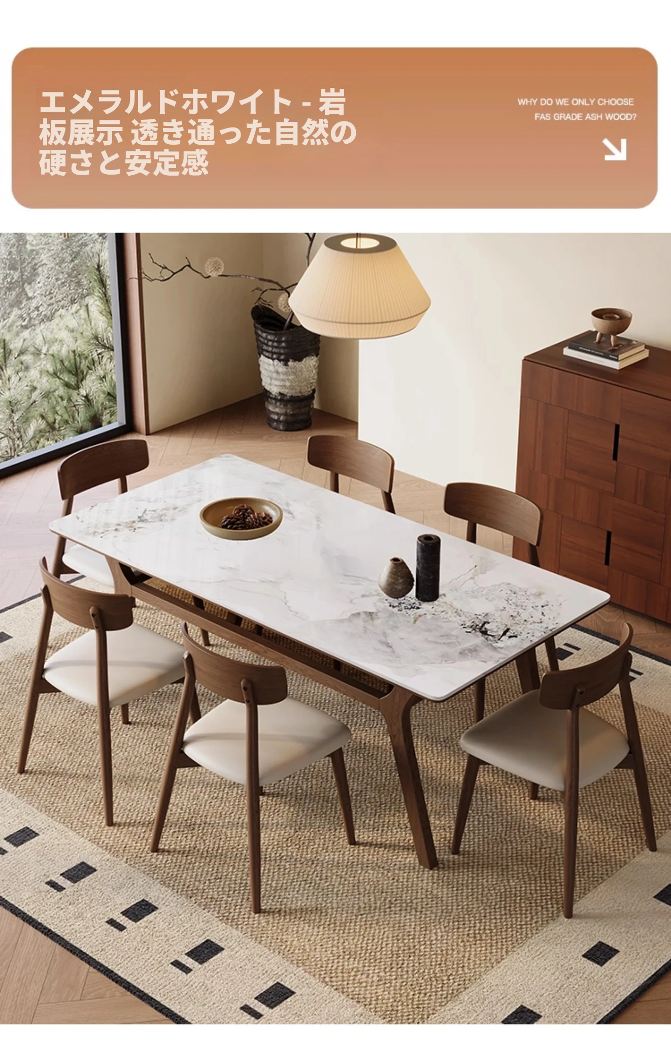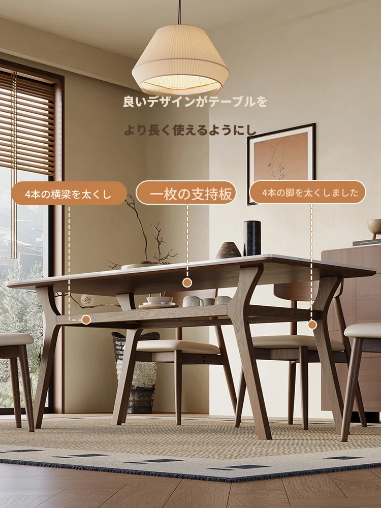侘寂スタイルの無垢材ロックボードダイニングテーブル&チェアセット - ホワイトアッシュとウォールナットの現代的でシンプルなデザイン、2025年モデル。おしゃれで機能的な食卓を演出します!