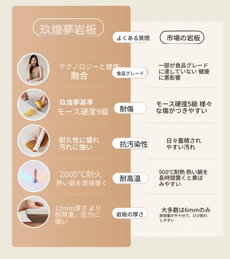 電磁調理器付き伸縮式岩板テーブル - 中古クリーム風デザインの多機能円形ダイニングテーブル、火鍋も楽しめる!家族や友人との食事に最適!