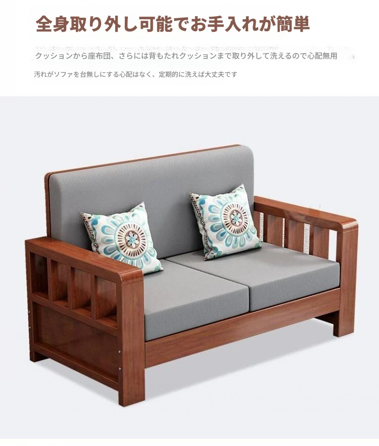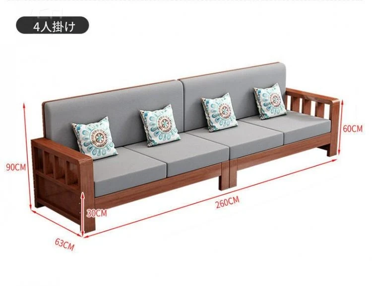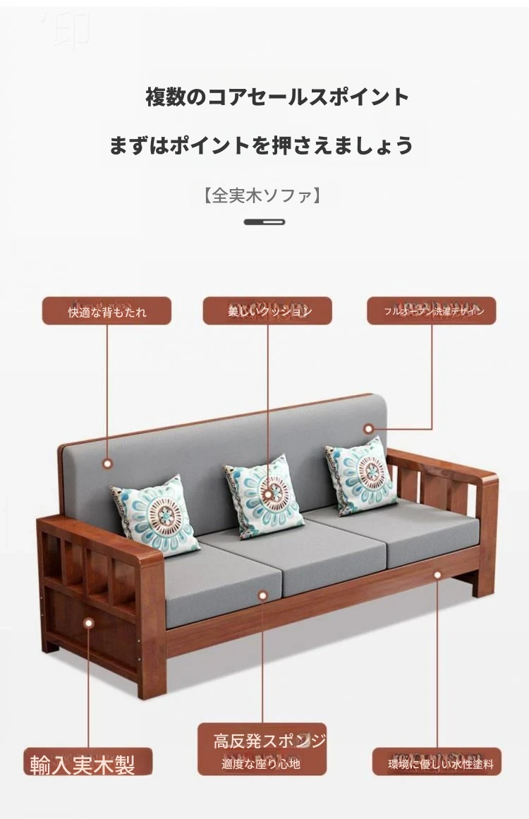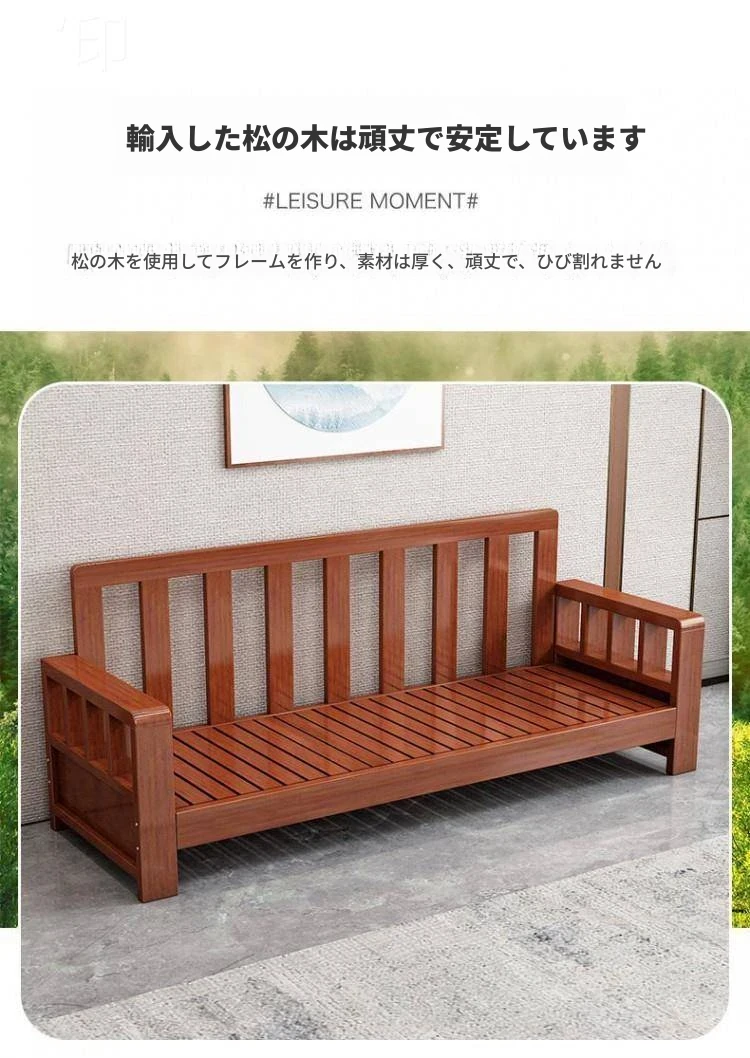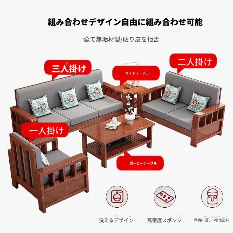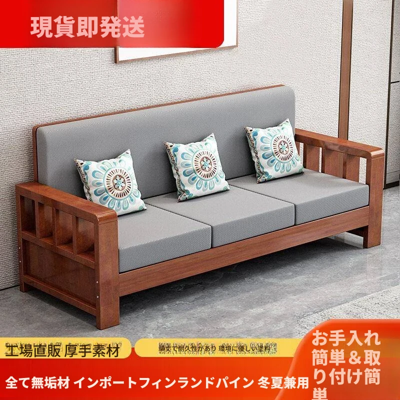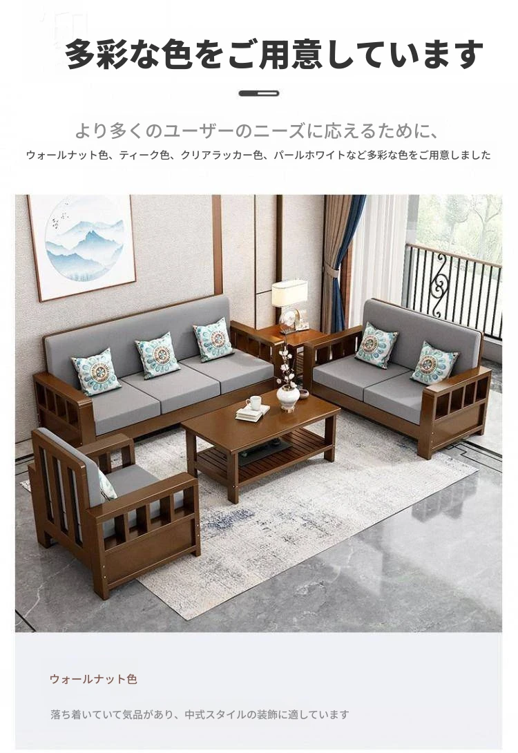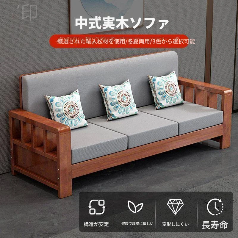 新中式デザインの無垢材ソファセット!小型リビングにぴったりの3人掛けシンプルで経済的な原木ソファ。快適な座り心地と洗練されたスタイルで、あなたの家を素敵に演出します!