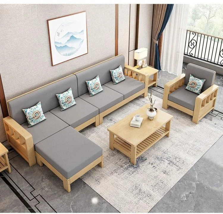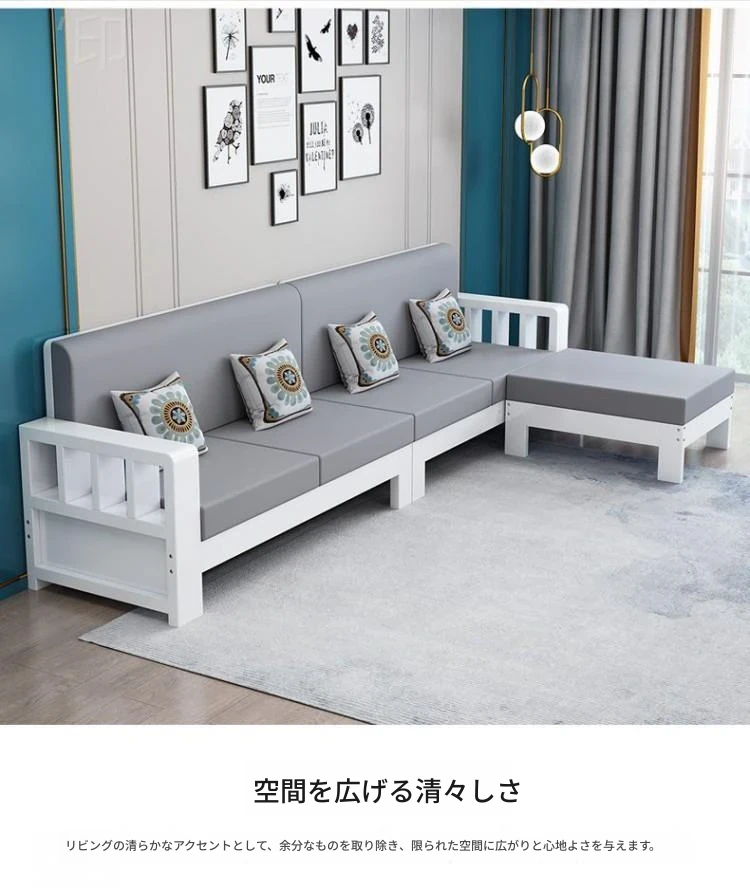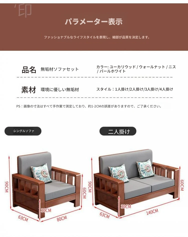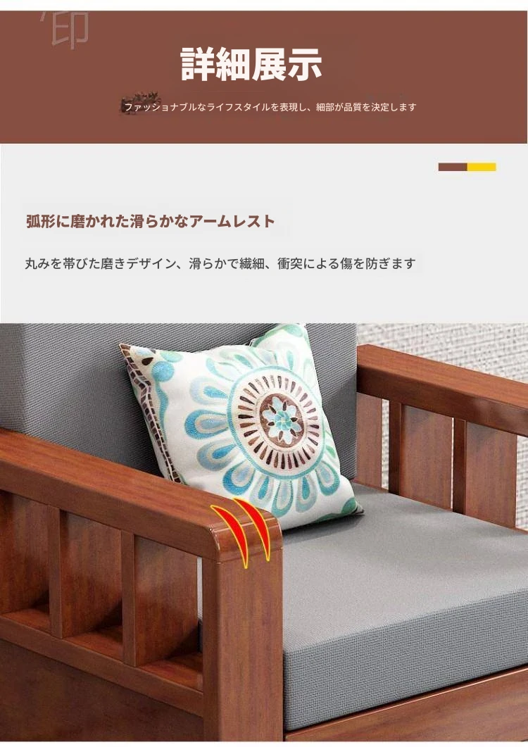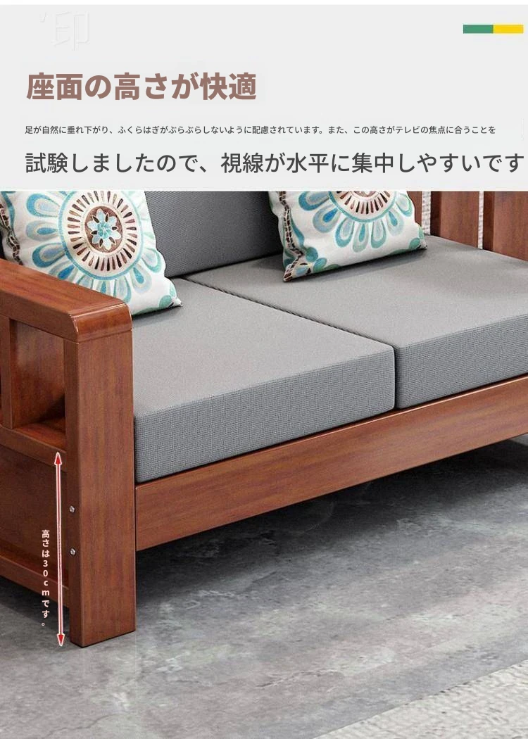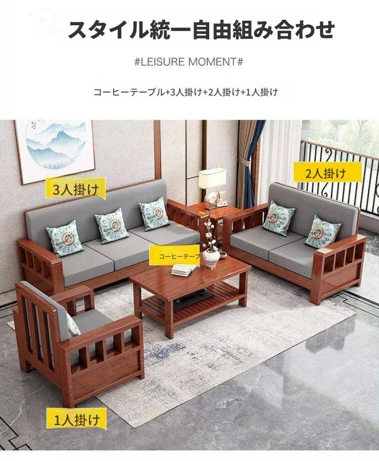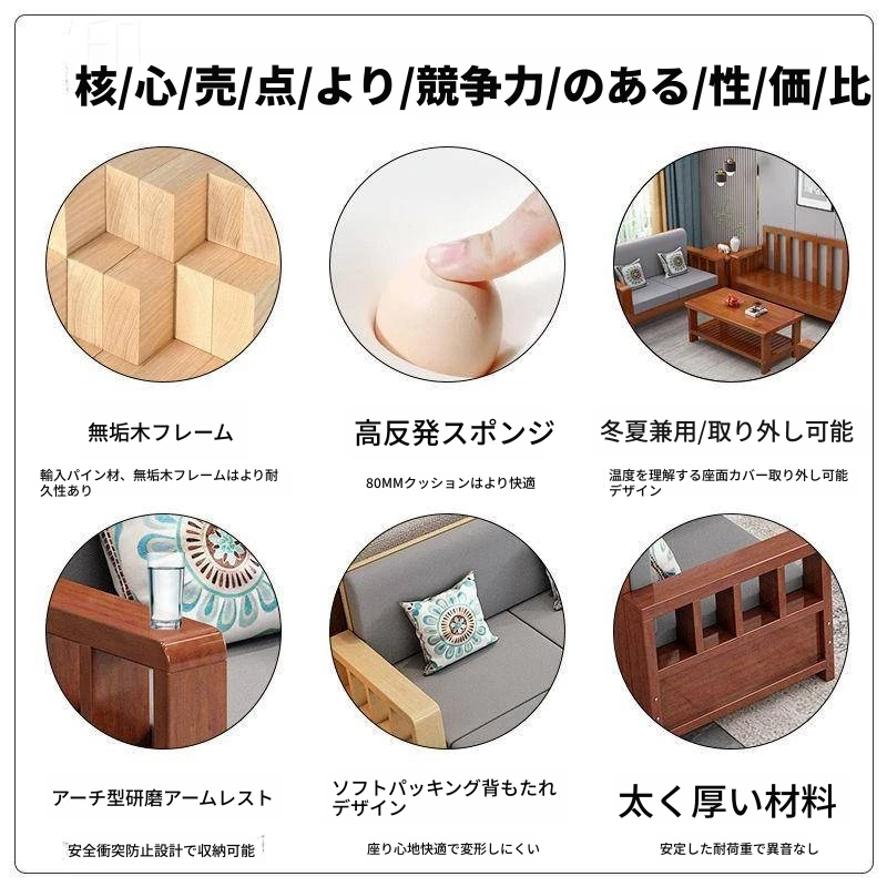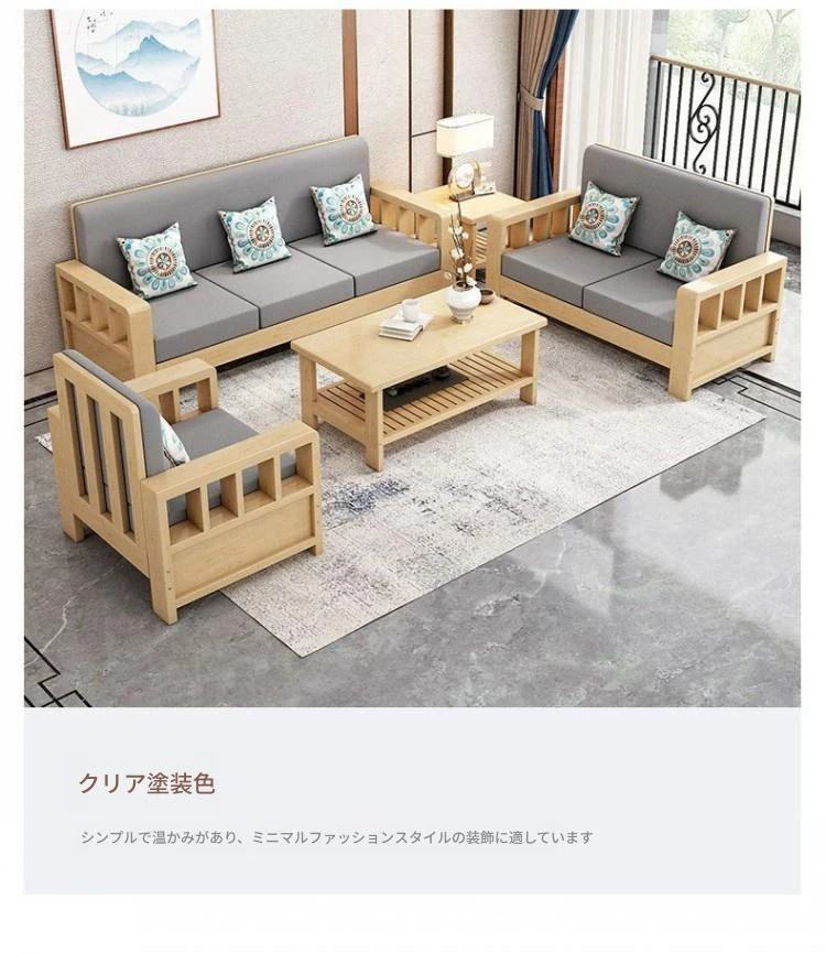 新中式デザインの無垢材ソファセット!小型リビングにぴったりの3人掛けシンプルで経済的な原木ソファ。快適な座り心地と洗練されたスタイルで、あなたの家を素敵に演出します!