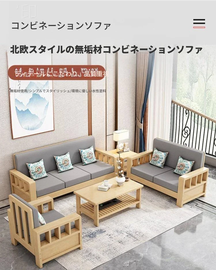 全無垢材+一+二+三人ソファ椅子+テーブルサイドテーブル