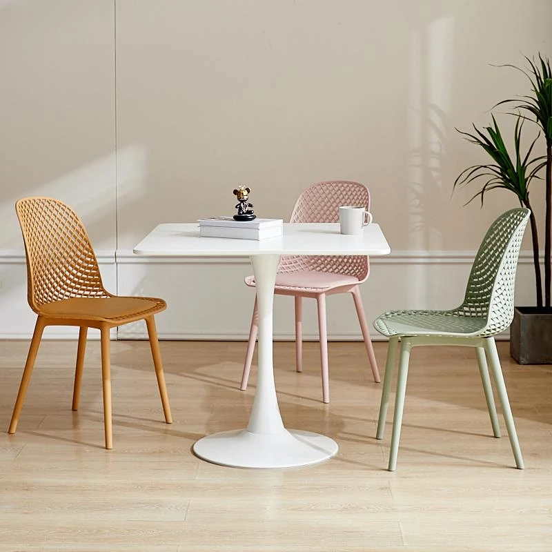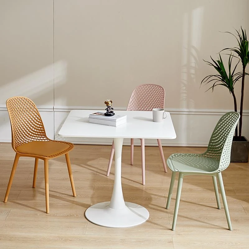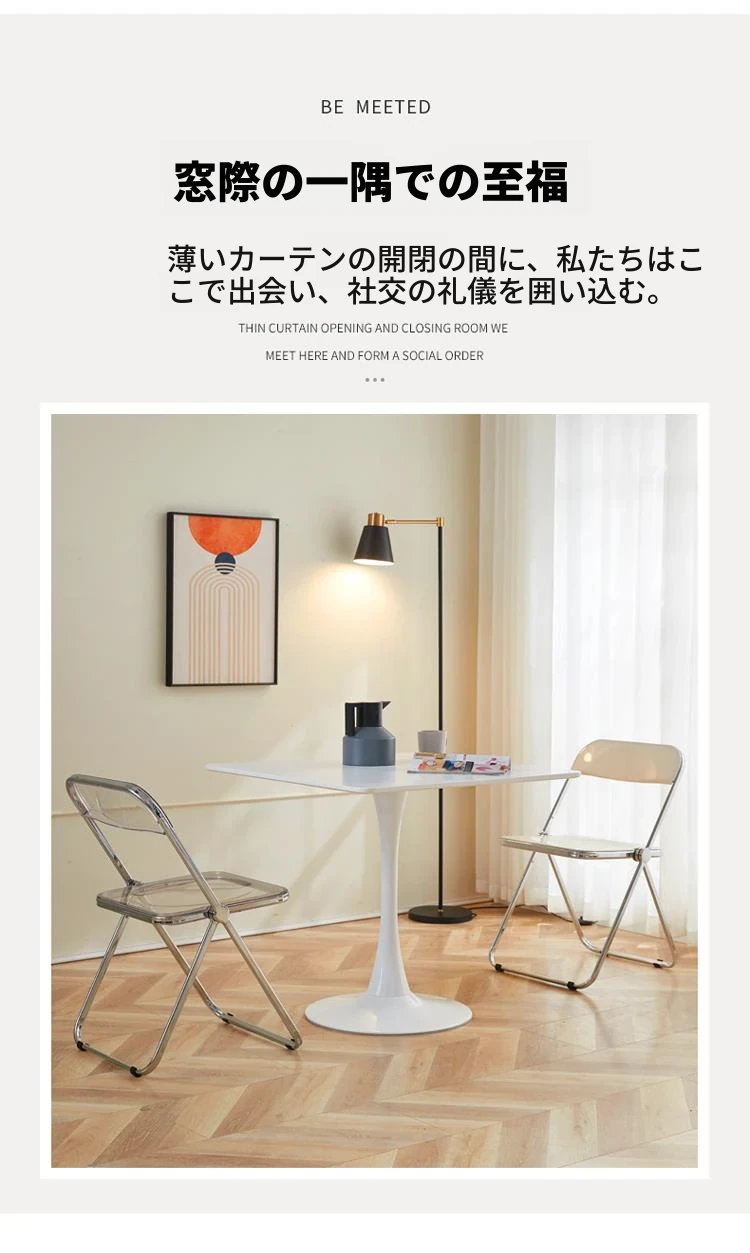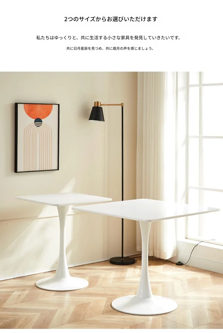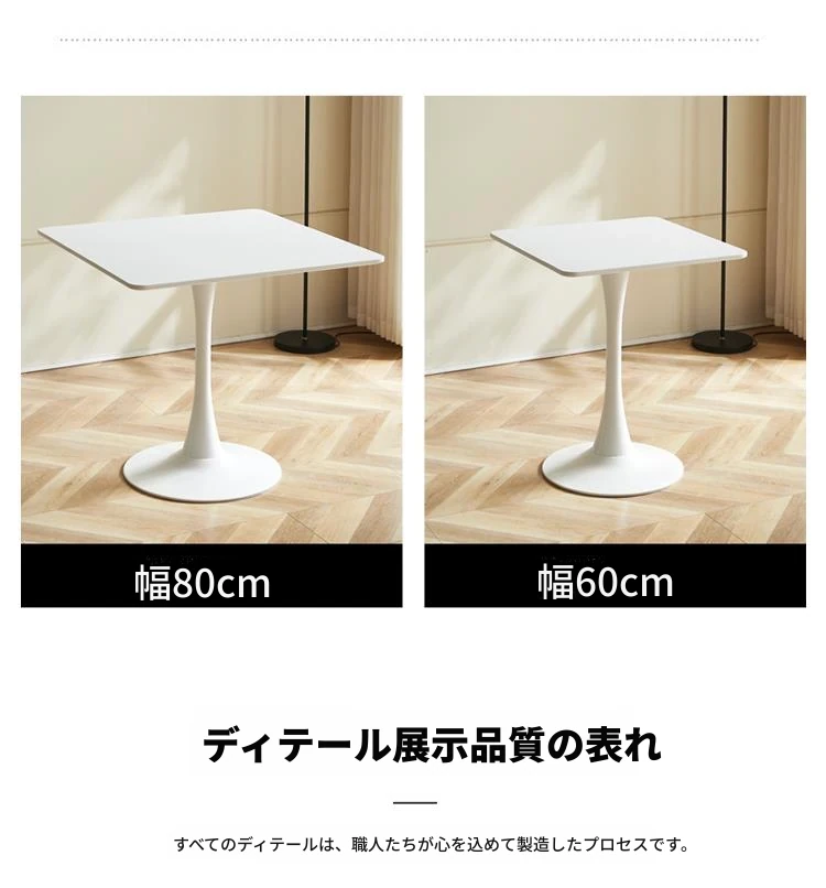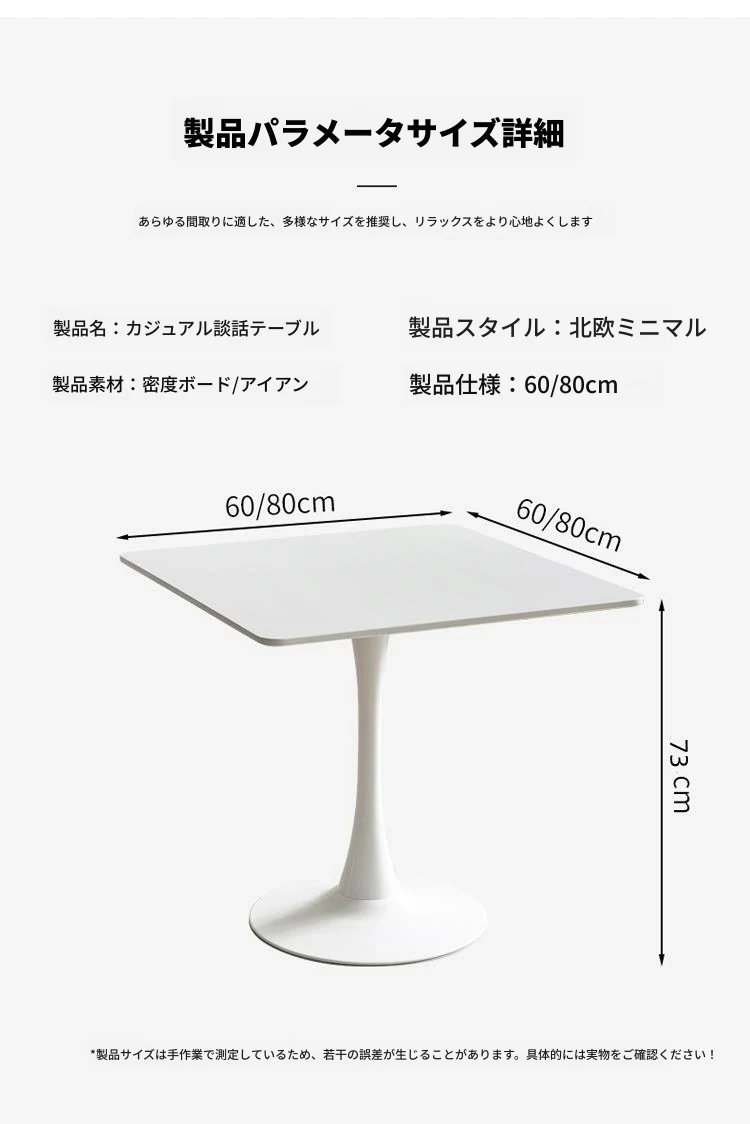シンプルでモダンなホワイトスクエアダイニングテーブル - 小型住宅に最適!カフェやティールーム、バルコニーの会話を楽しむための完璧な選択。おしゃれで機能的、どんなインテリアにもぴったりです!