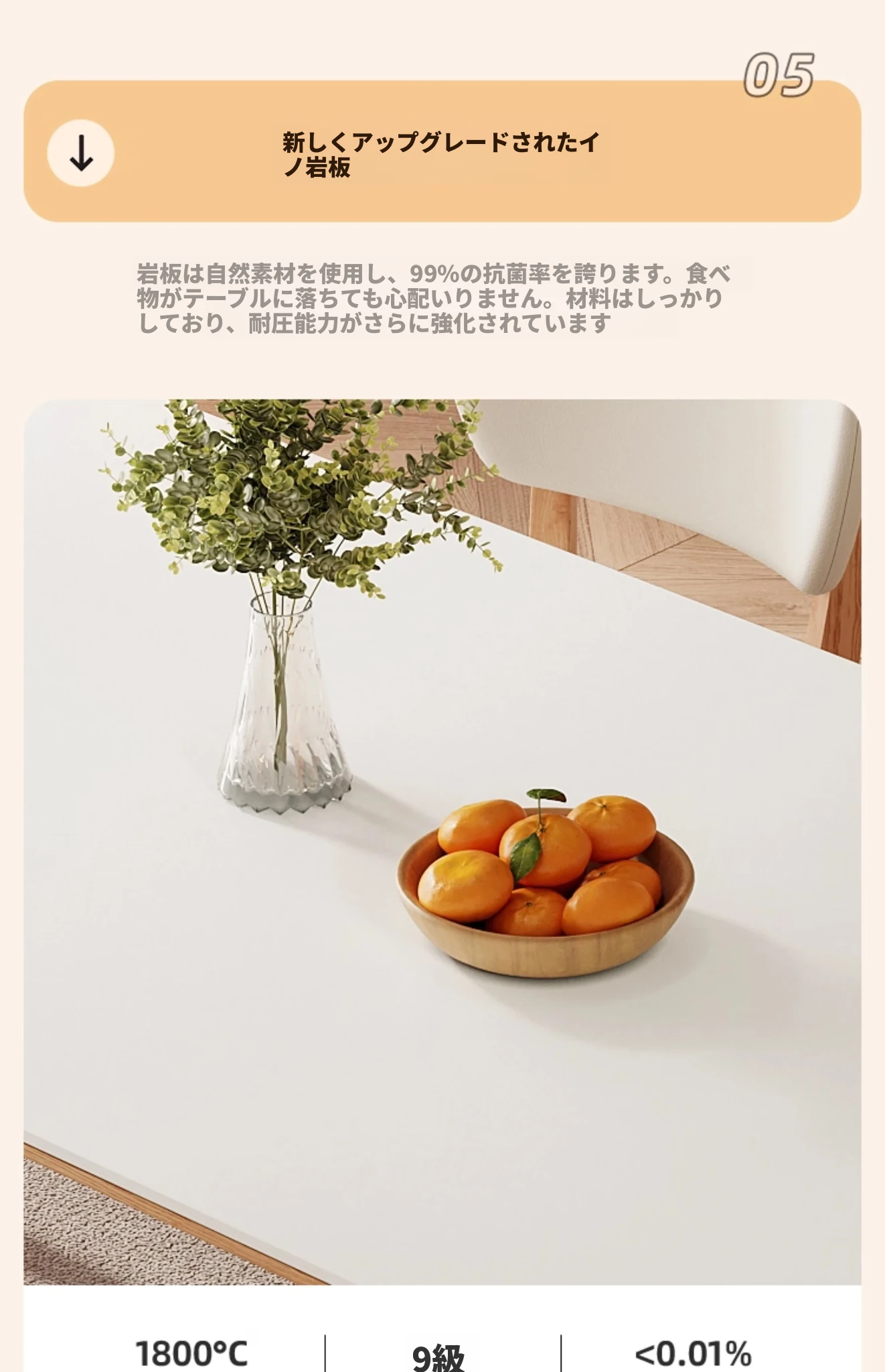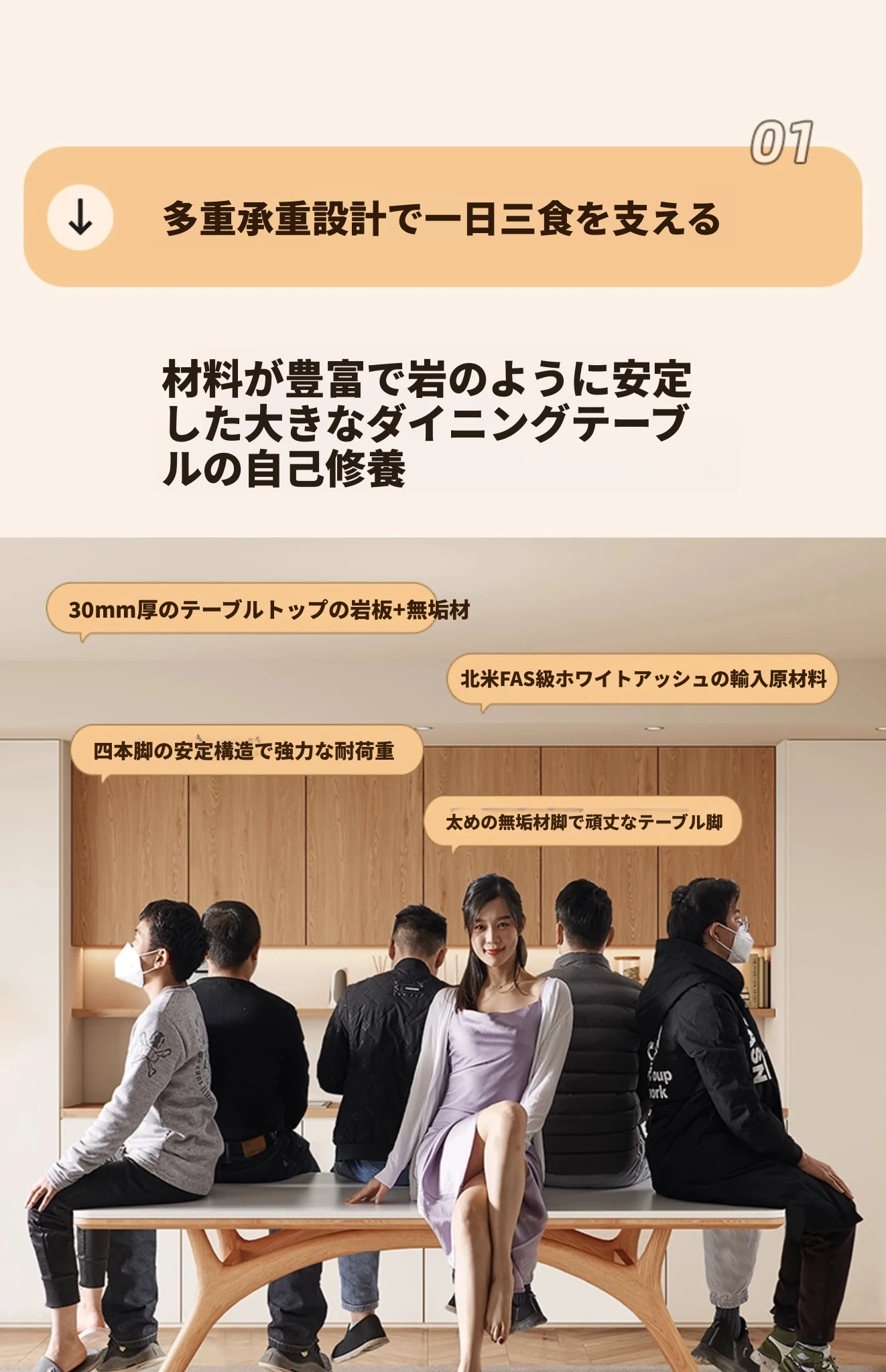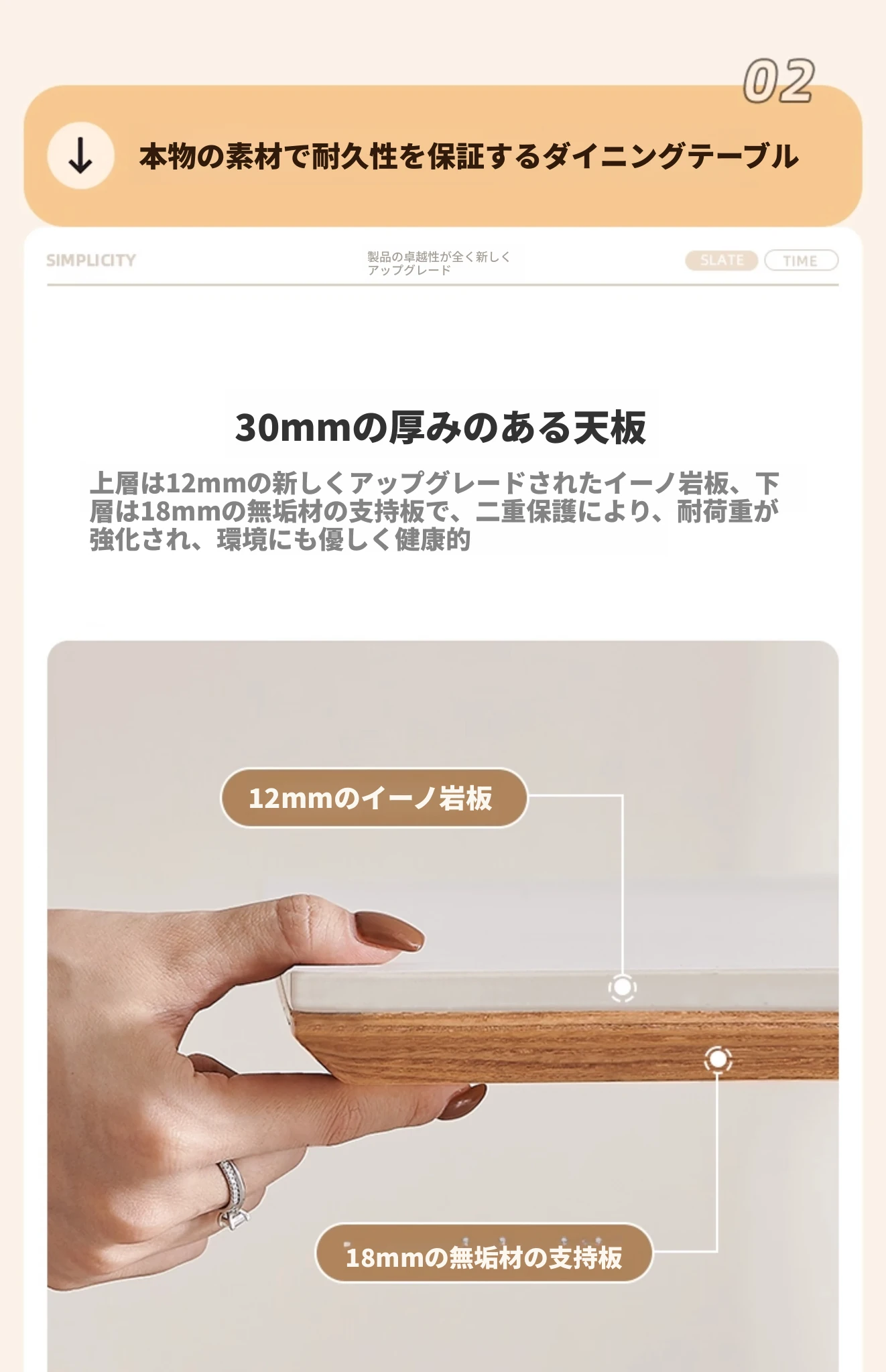 フラッグシップ版・1.8*0.9メートル単独ダイニングテーブル【イノ12mm岩板】