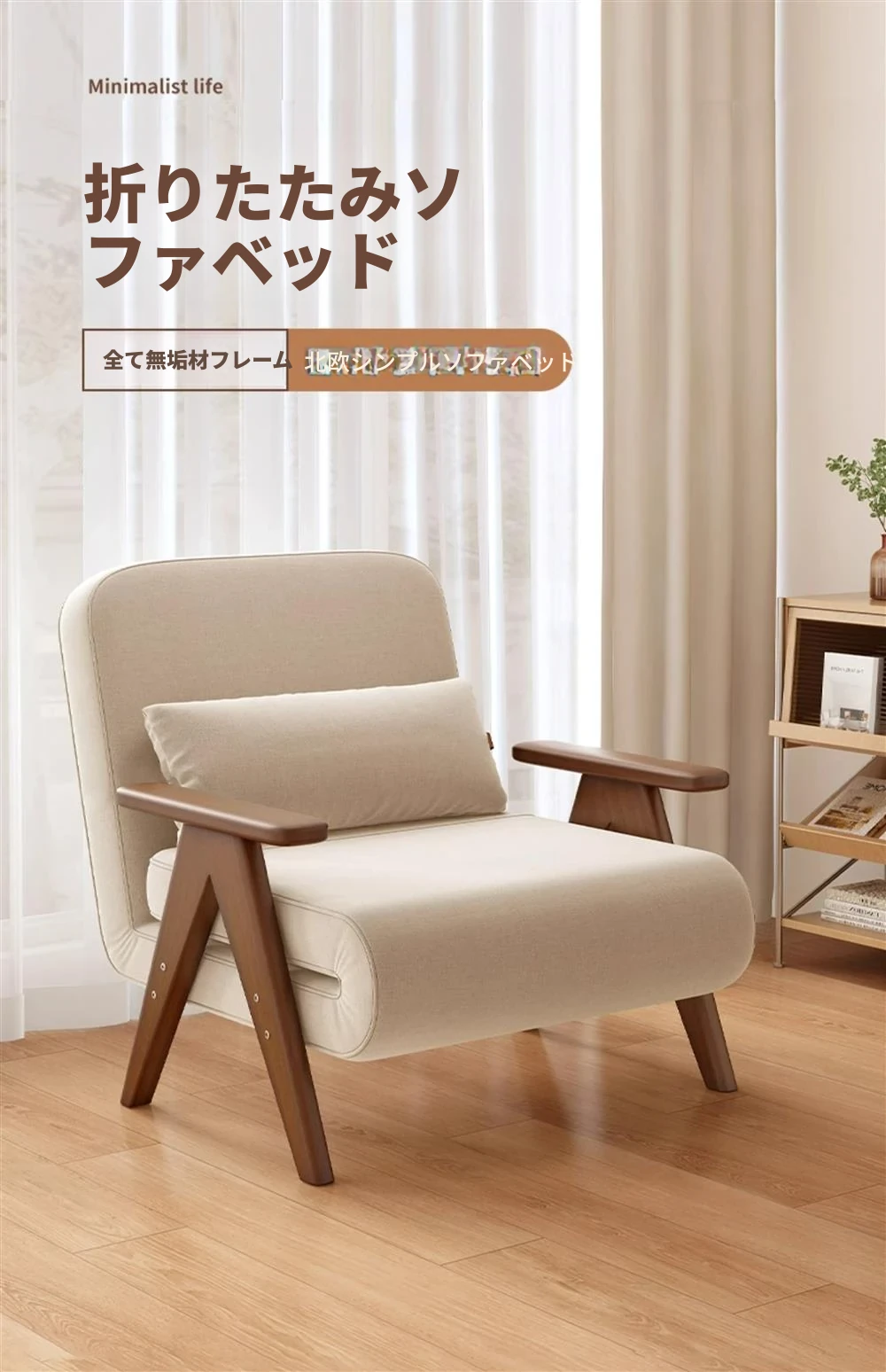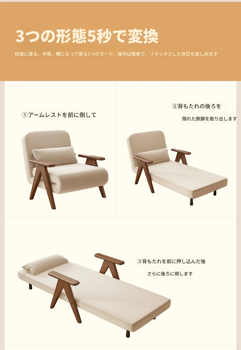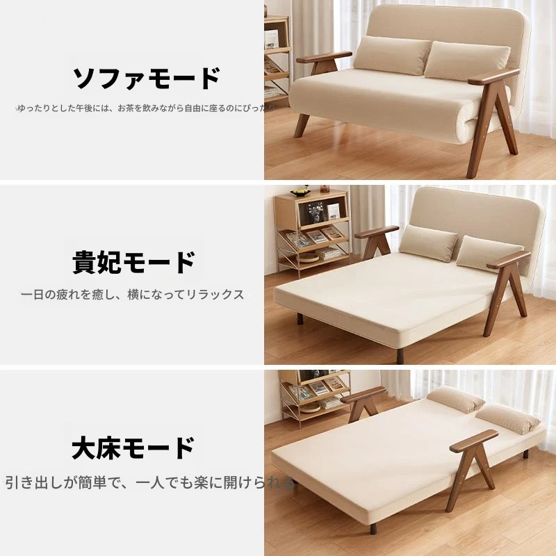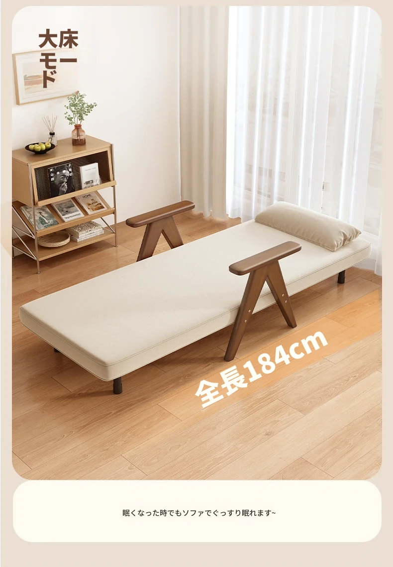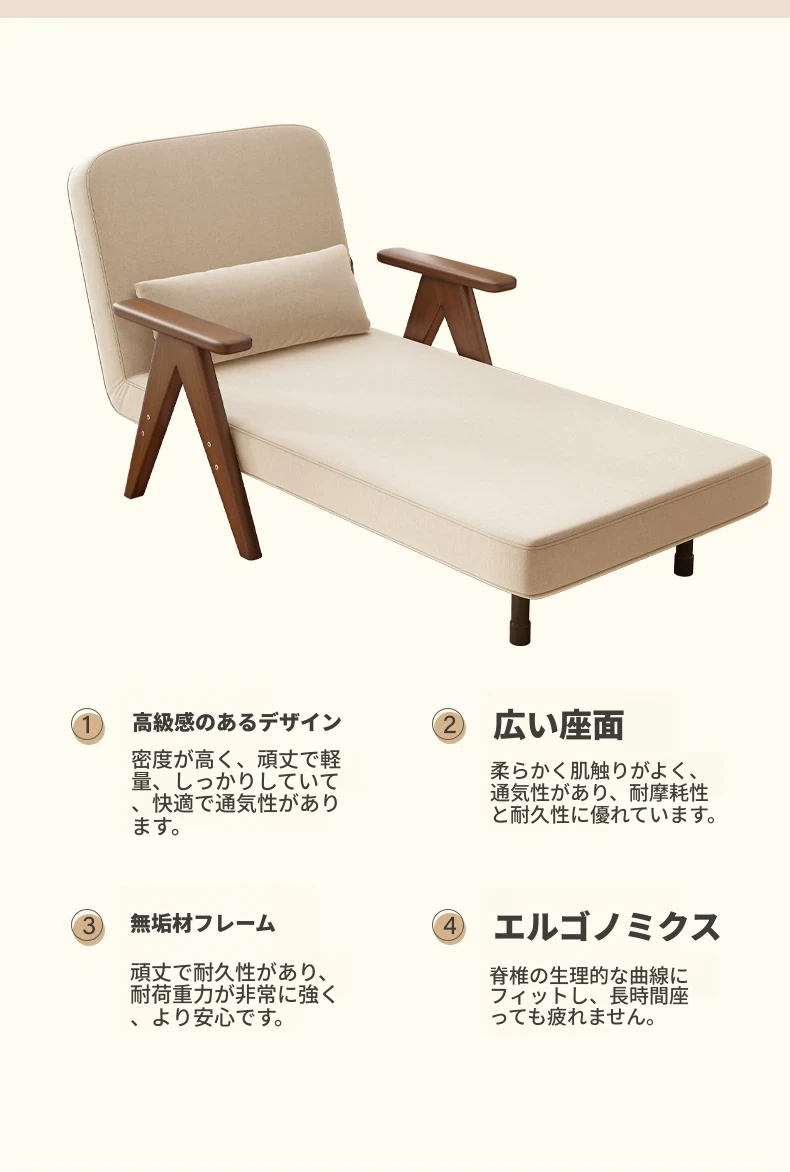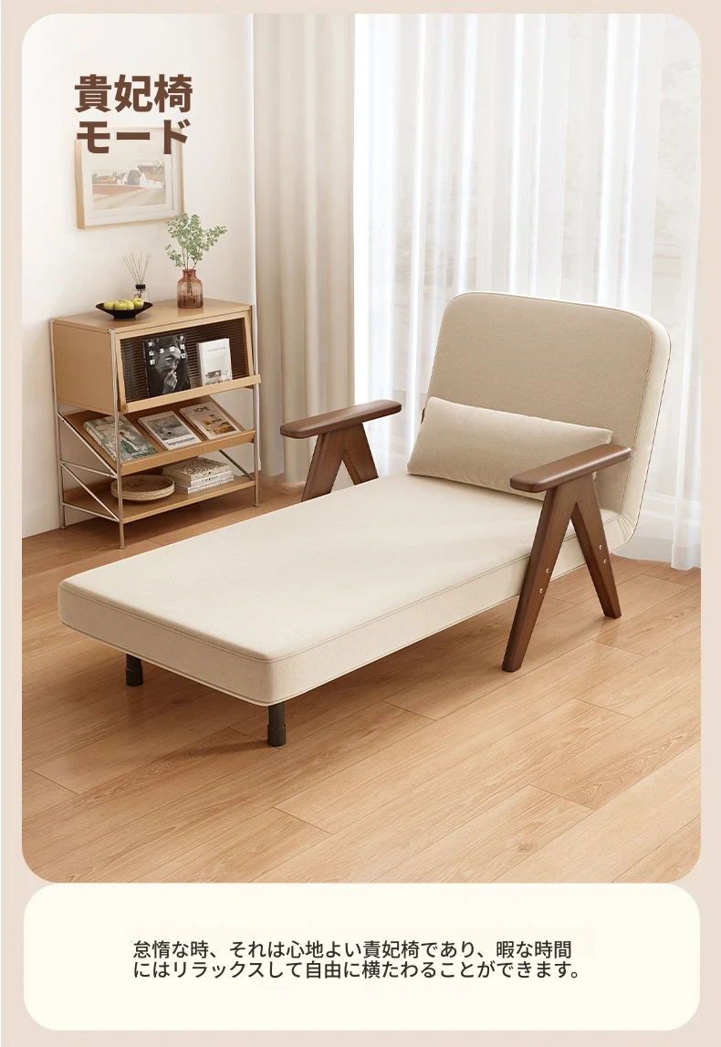 折りたたみソファベッド 多機能デザイン!寝ることも座ることもできる、トレンドの貴妃椅子。狭いリビングにもぴったりな天然木製の伸縮式ベッド。快適さとスタイルを両立した一品です!