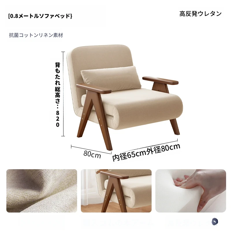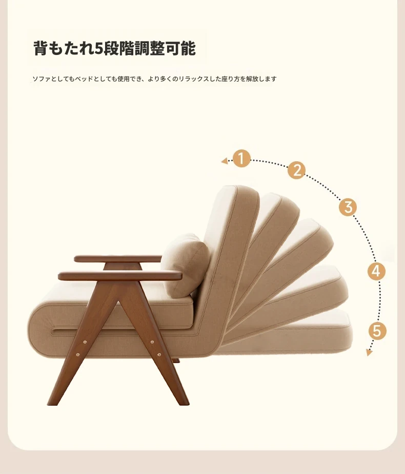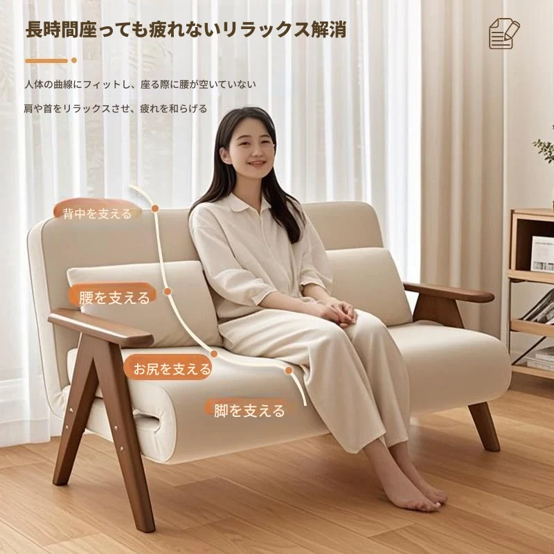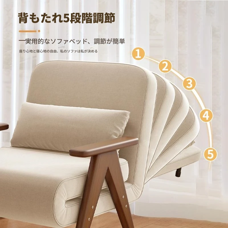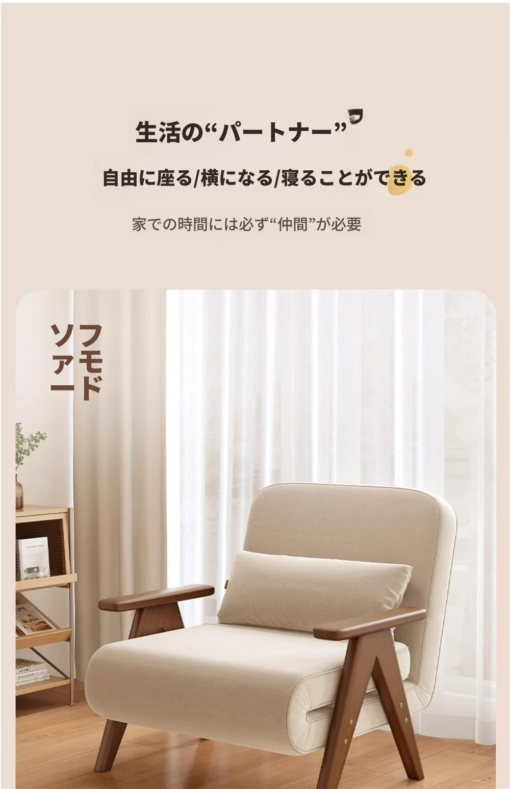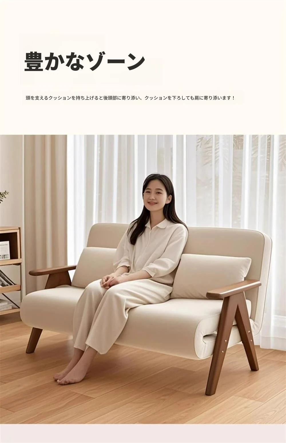 折りたたみソファベッド 多機能デザイン!寝ることも座ることもできる、トレンドの貴妃椅子。狭いリビングにもぴったりな天然木製の伸縮式ベッド。快適さとスタイルを両立した一品です!