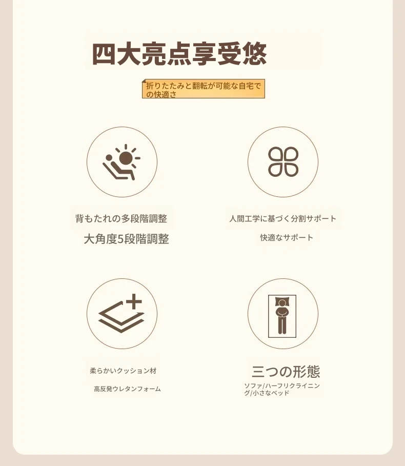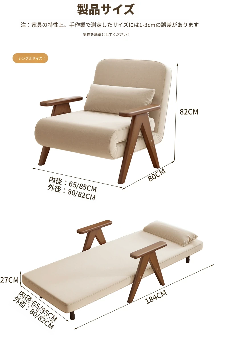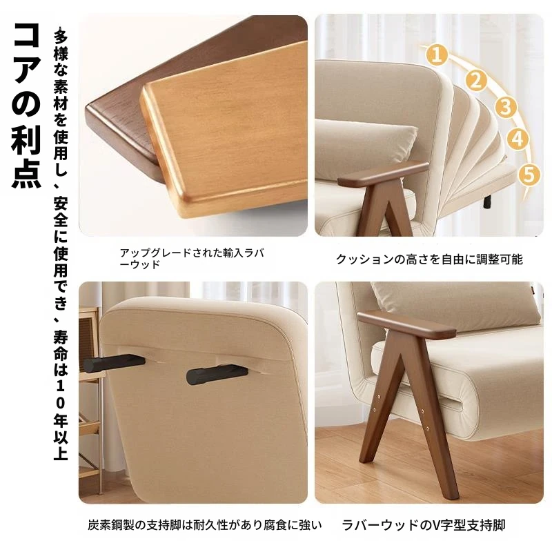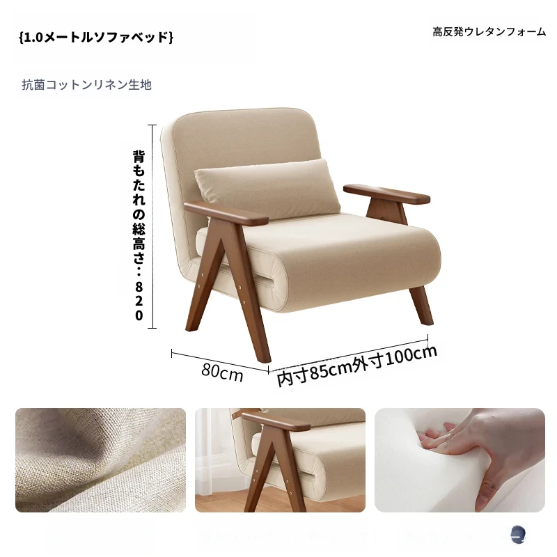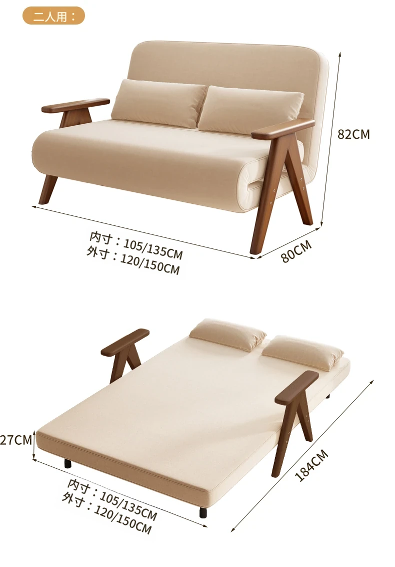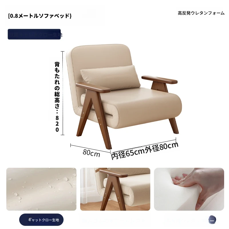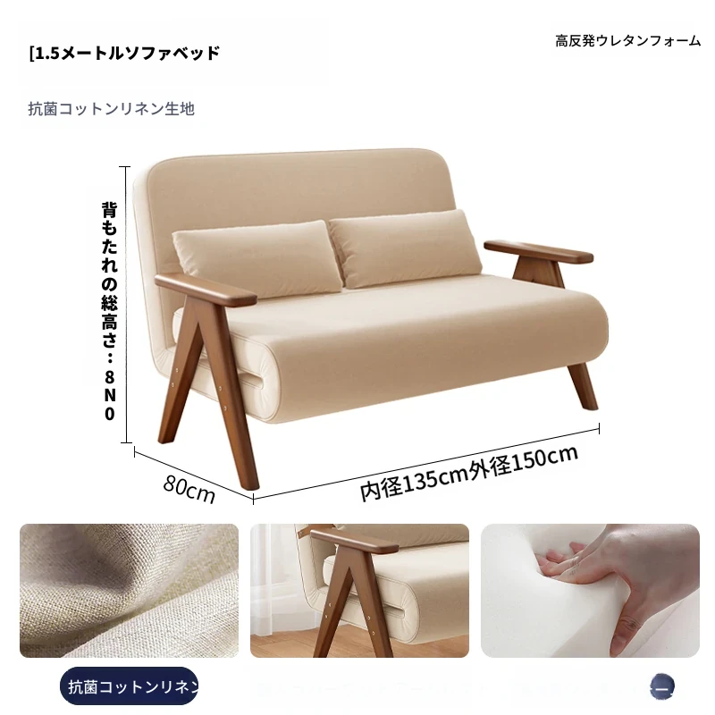 折りたたみソファベッド 多機能デザイン!寝ることも座ることもできる、トレンドの貴妃椅子。狭いリビングにもぴったりな天然木製の伸縮式ベッド。快適さとスタイルを両立した一品です!