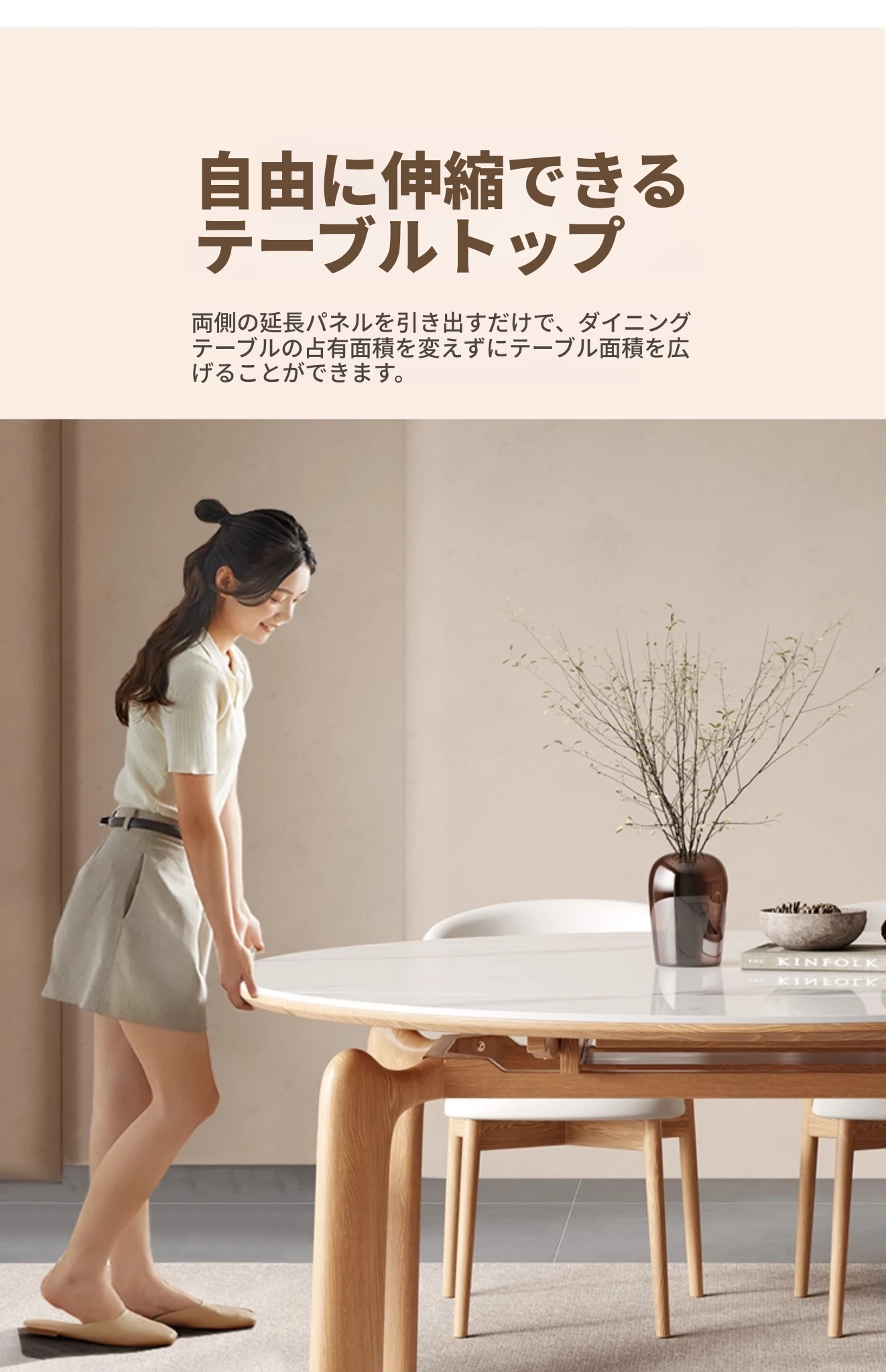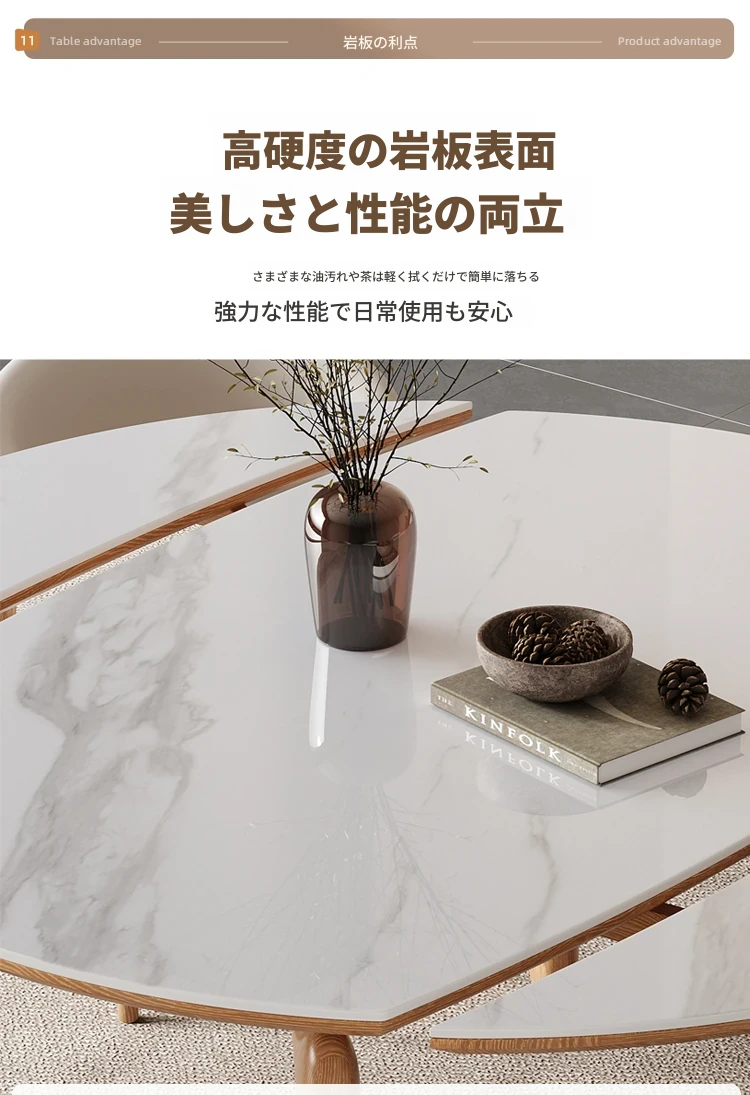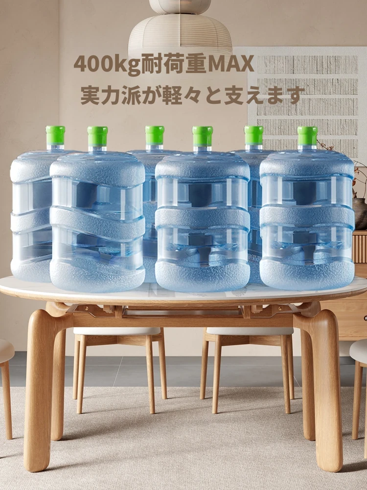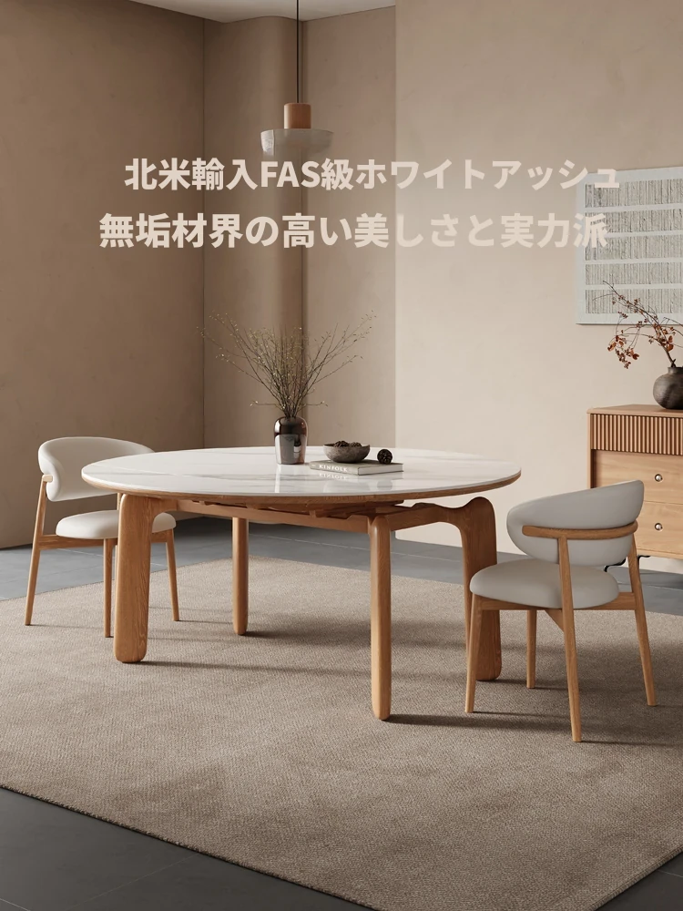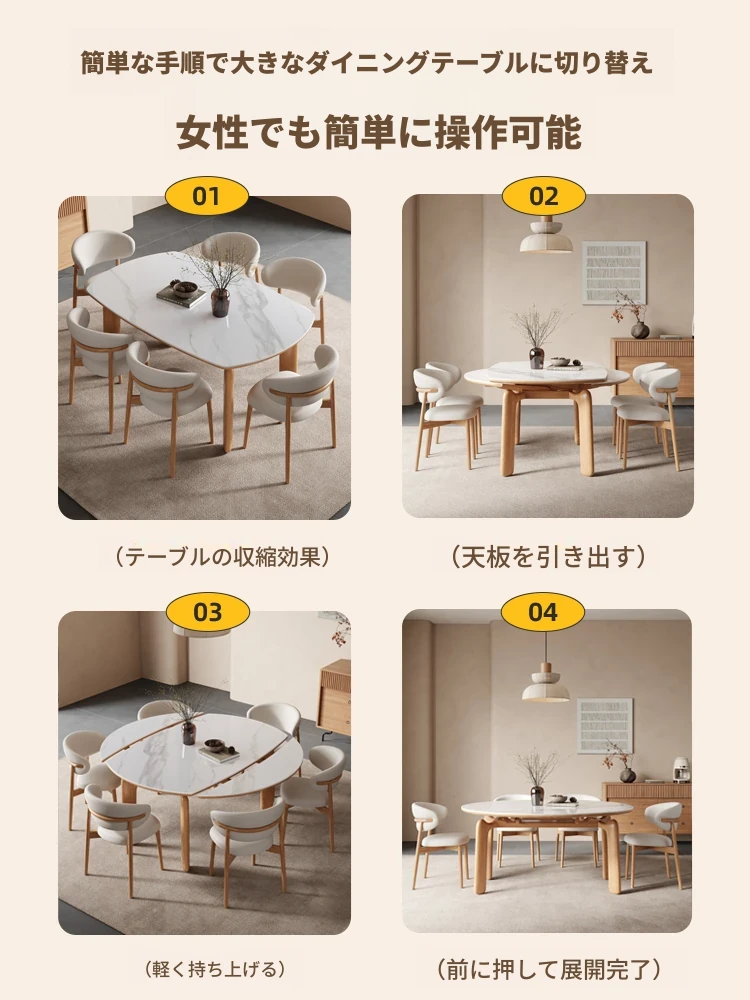 ナチュラルウッドカラーのエレファントレッグ実木ロック板伸縮式ダイニングテーブル - モダンでシンプル、多機能折りたたみ式、四角と丸の両方に対応!おしゃれな空間を演出し、家族や友人との食事を楽しむのに最適です!