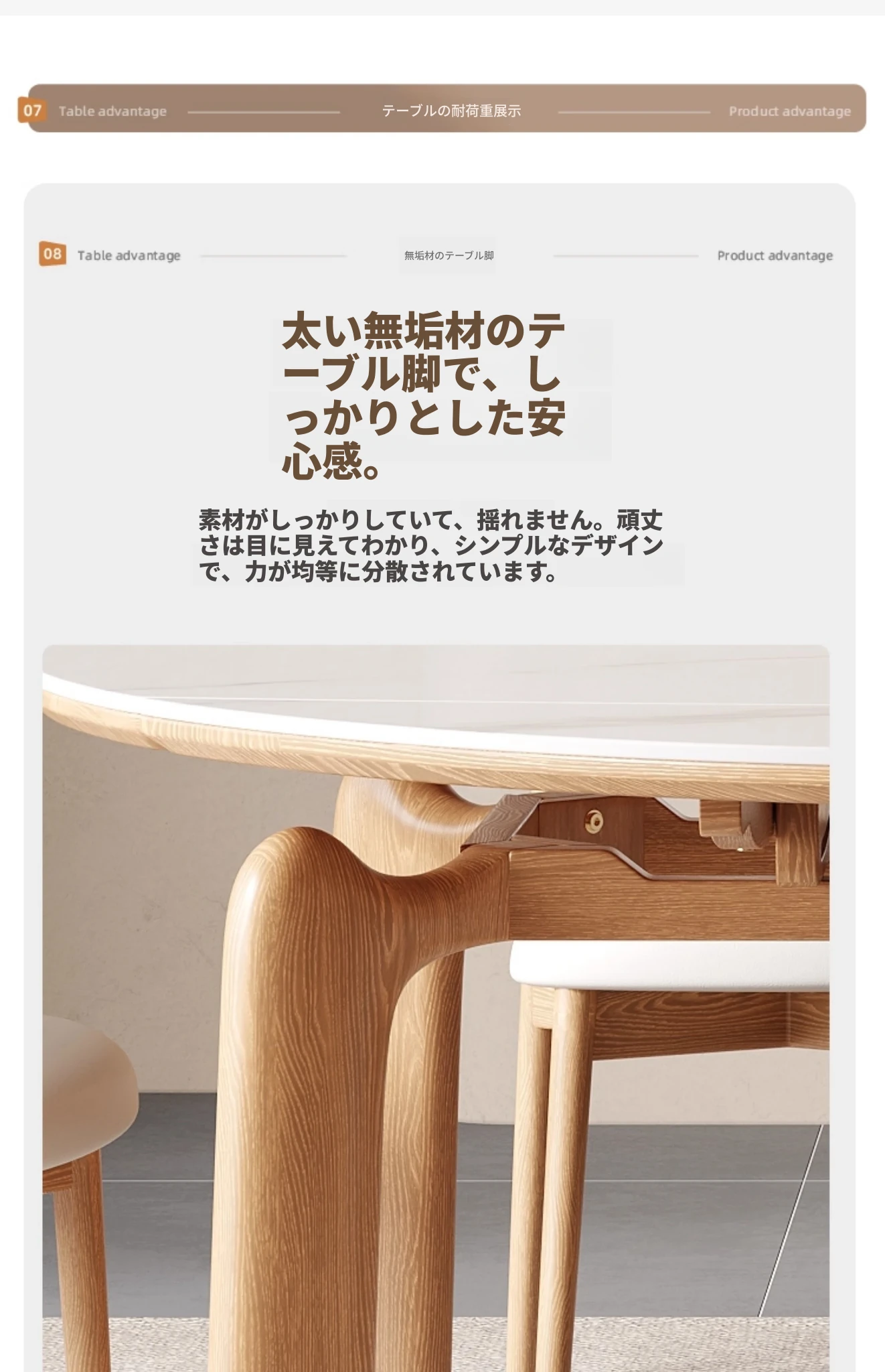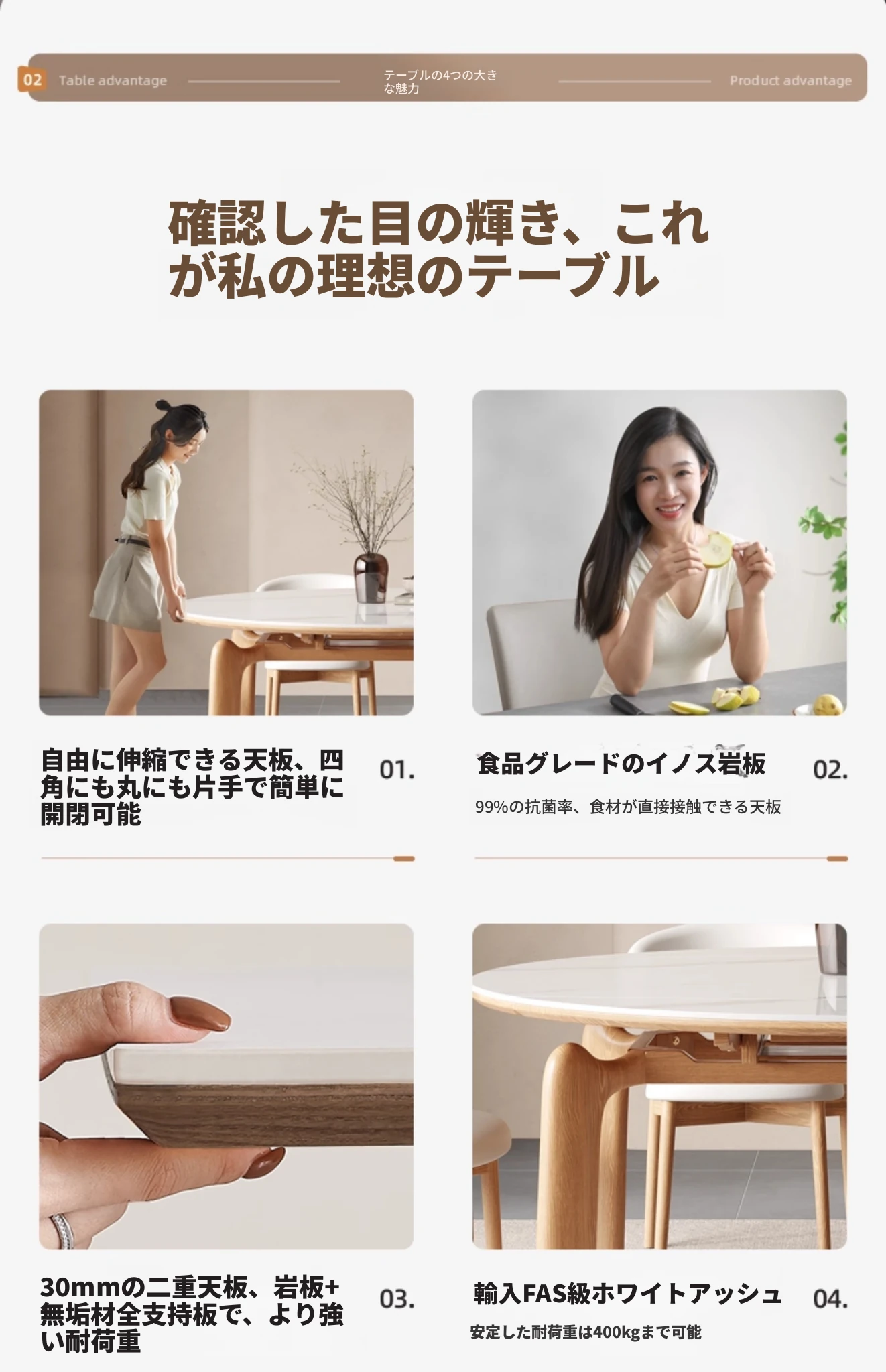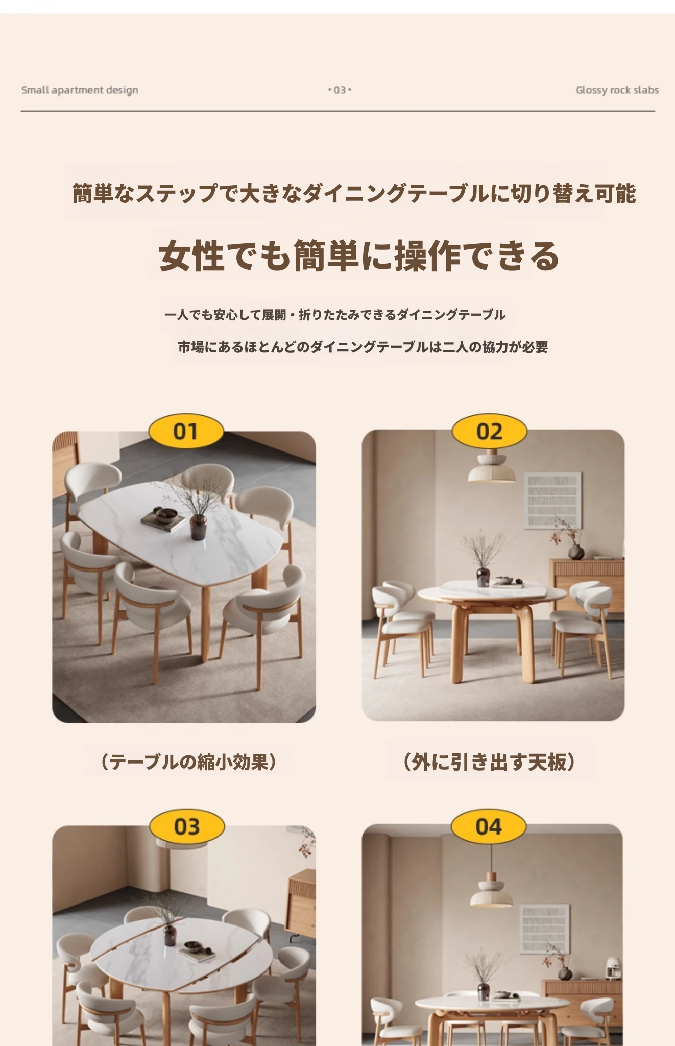 ナチュラルウッドカラーのエレファントレッグ実木ロック板伸縮式ダイニングテーブル - モダンでシンプル、多機能折りたたみ式、四角と丸の両方に対応!おしゃれな空間を演出し、家族や友人との食事を楽しむのに最適です!