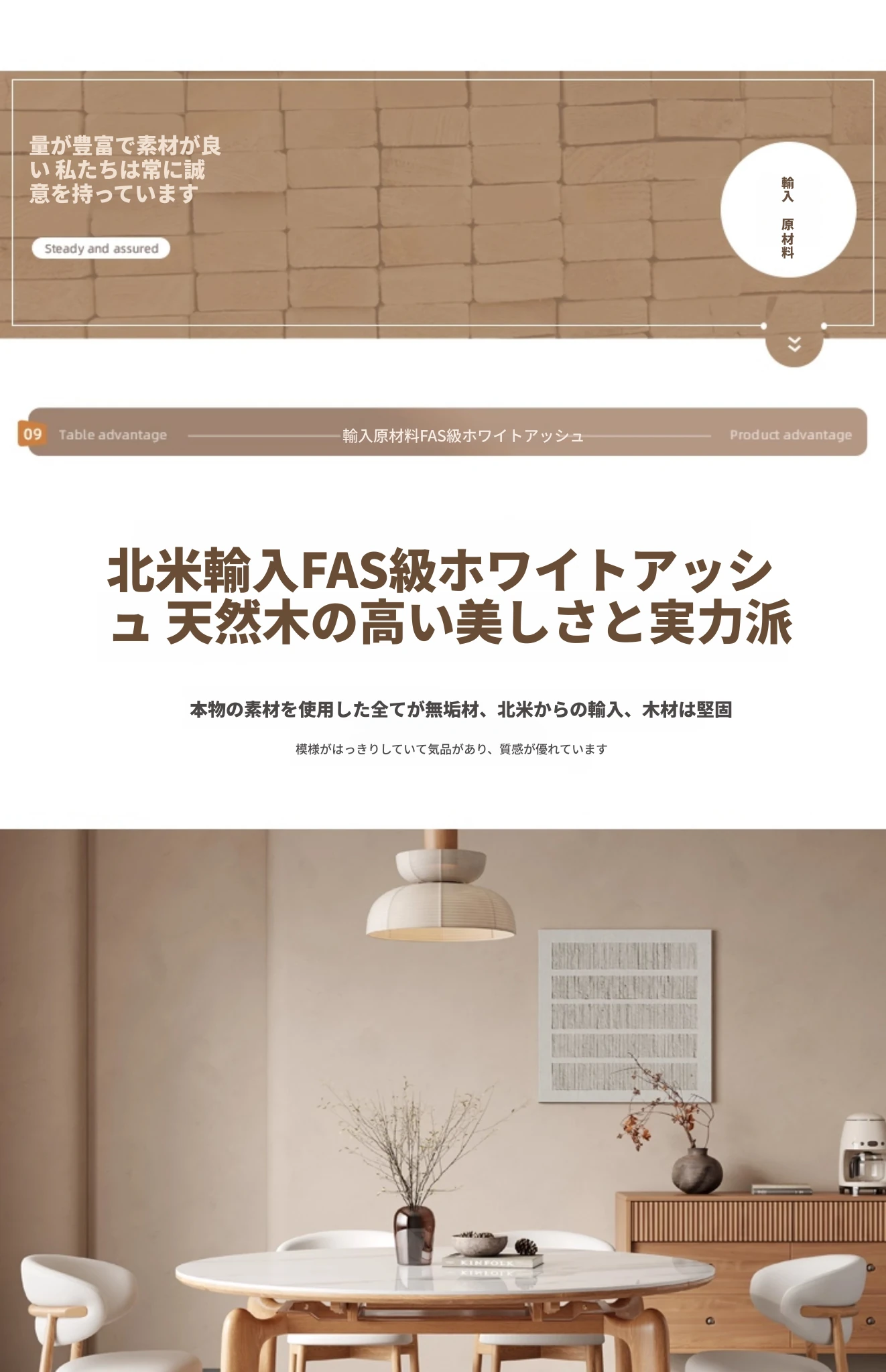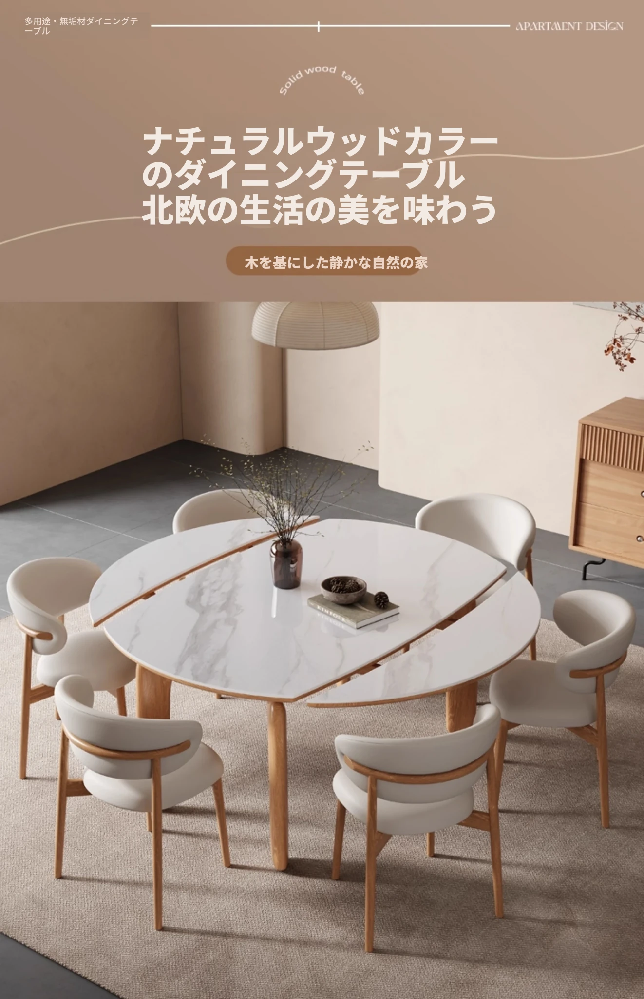 1.35メートル+6椅子【フラッグシップ版ホワイトアッシュ】
