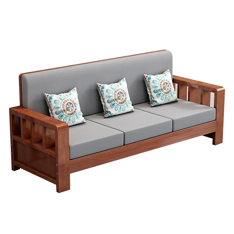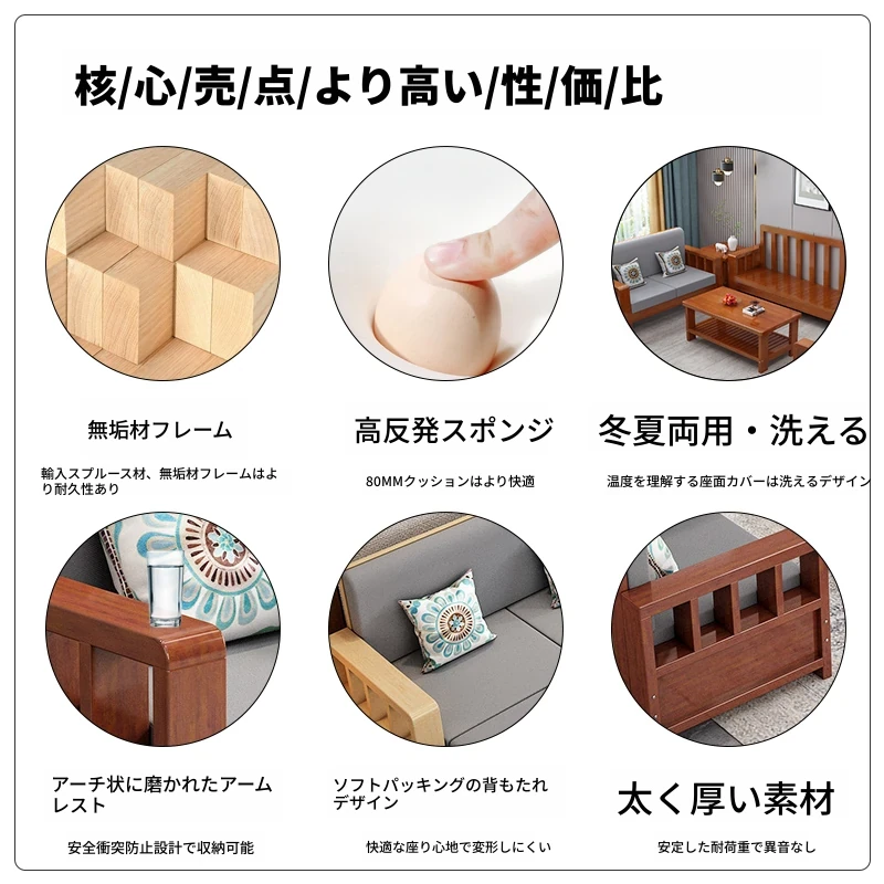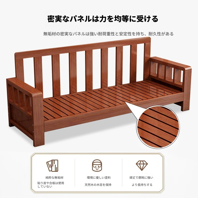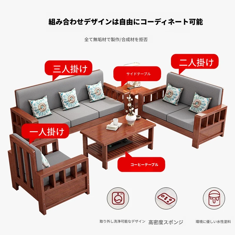 2024年新作!実木製ソファー - 新中式デザインの3人掛け、田舎風のコンパクトなリビングに最適。居心地抜群の組み合わせセットで、あなたの家をスタイリッシュに演出します!