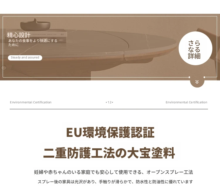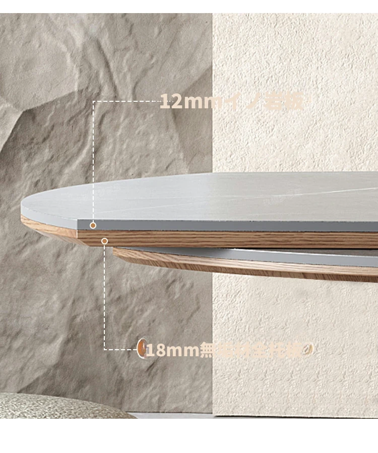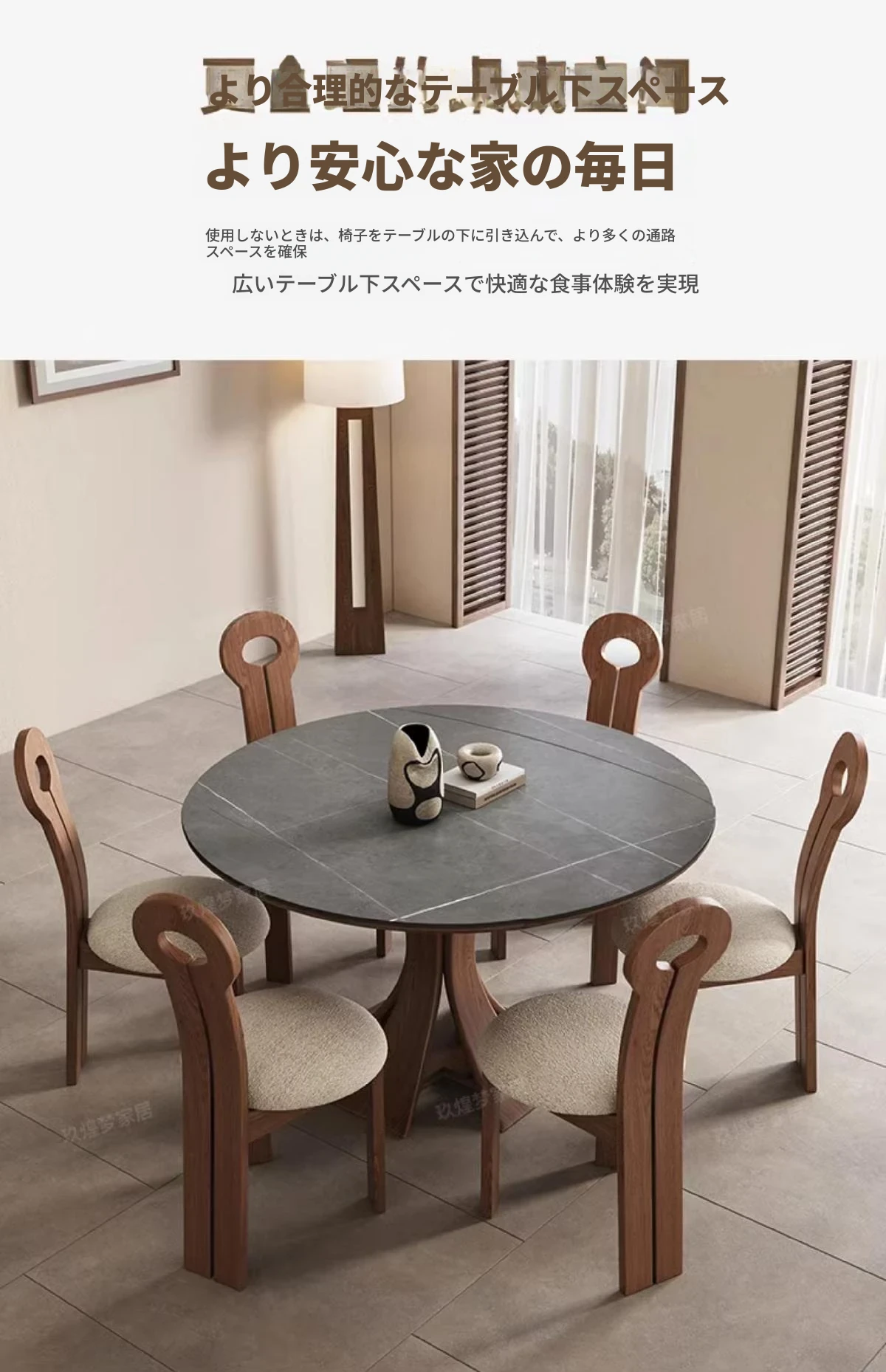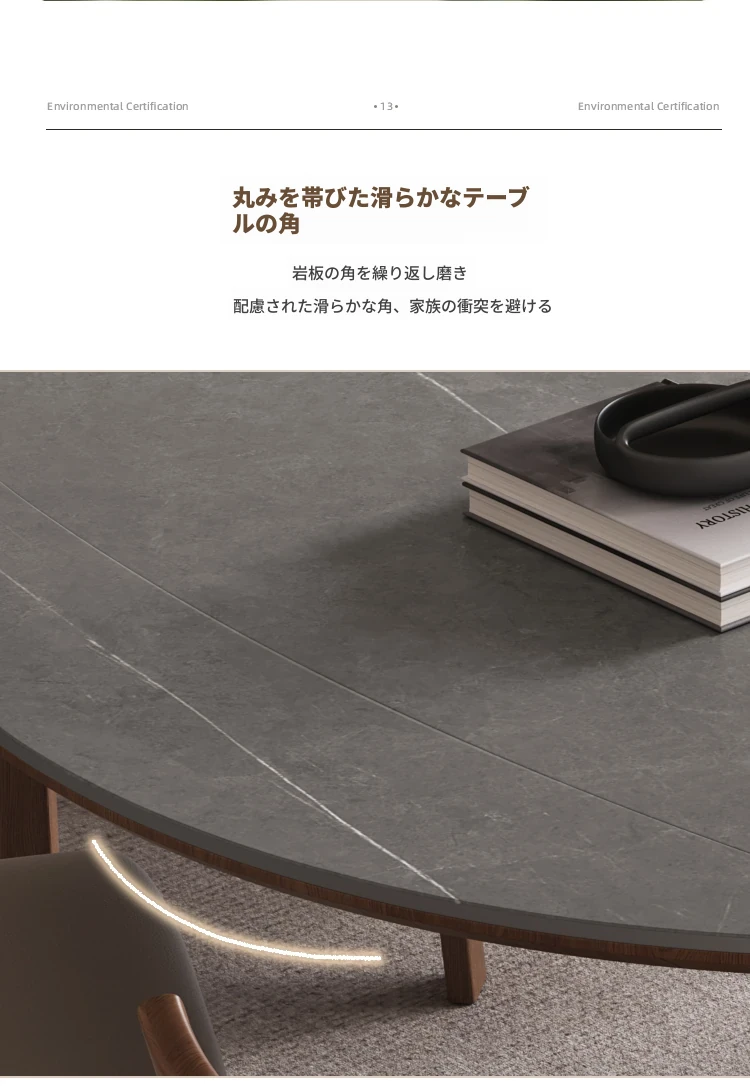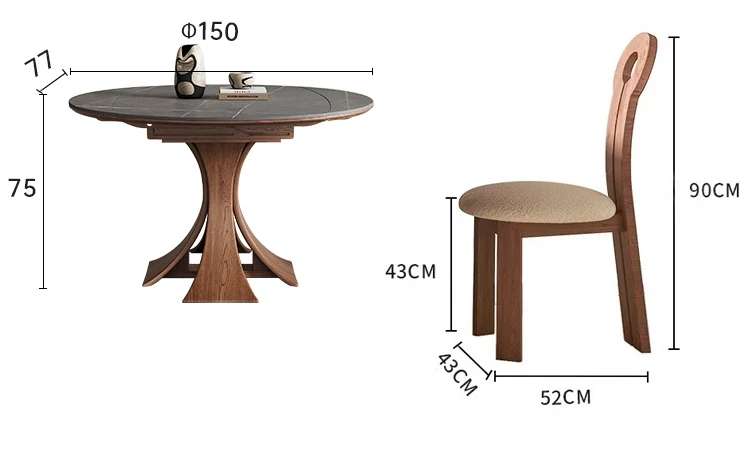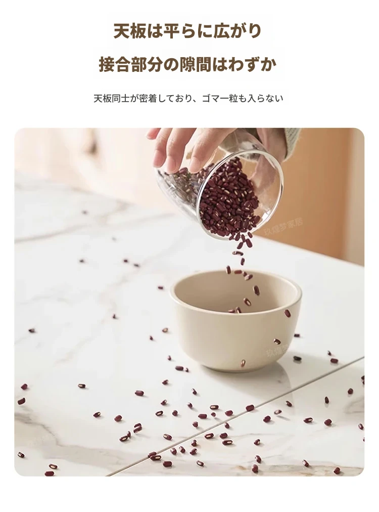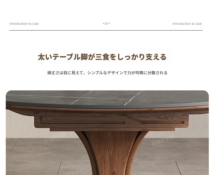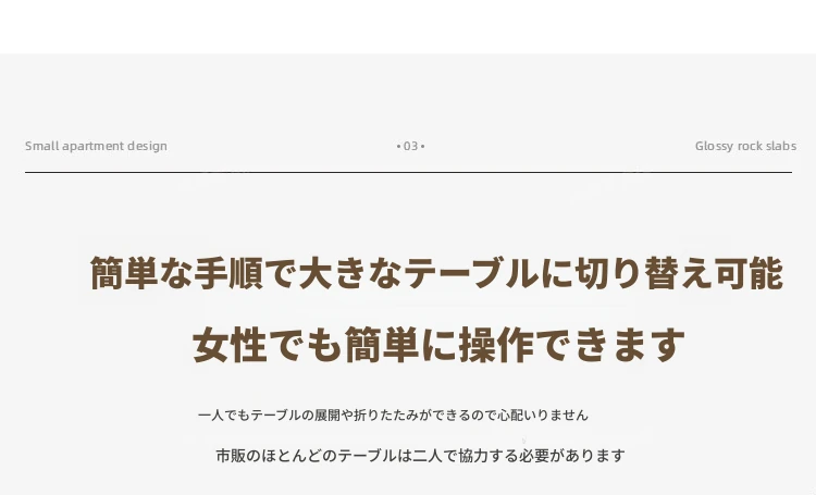 北欧デザインの伸縮式ラウンド岩板ダイニングテーブル - 小スペースに最適!角丸両用の折りたたみ可能な天然木製テーブルで、家族や友人との食事を楽しむための完璧なアイテムです。