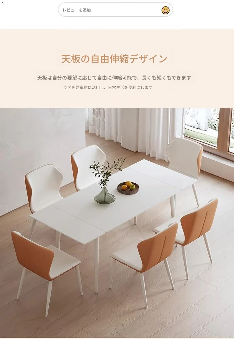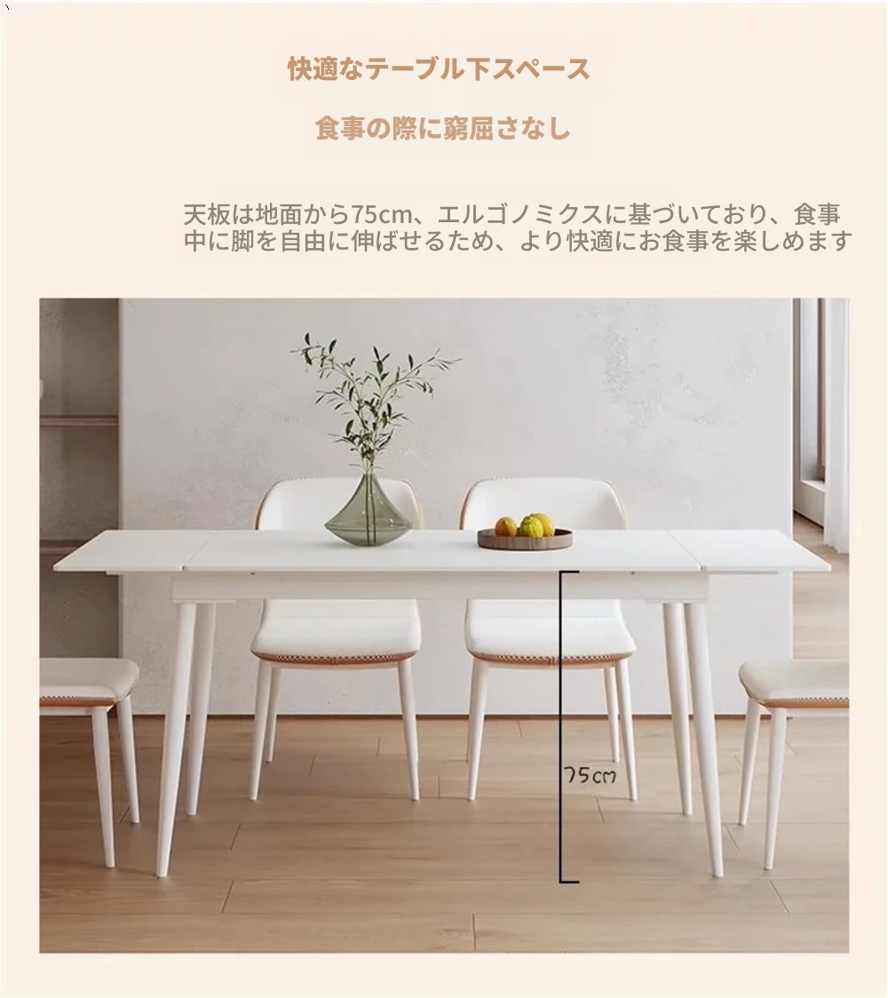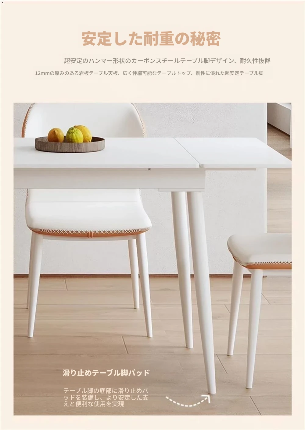 北欧モダンシンプルな伸縮折りたたみダイニングテーブル&チェアセット - 家庭用小型長方形クリーム風ダイニングテーブルで、スペースを有効活用!スタイリッシュなデザインでおしゃれな食卓を演出します。