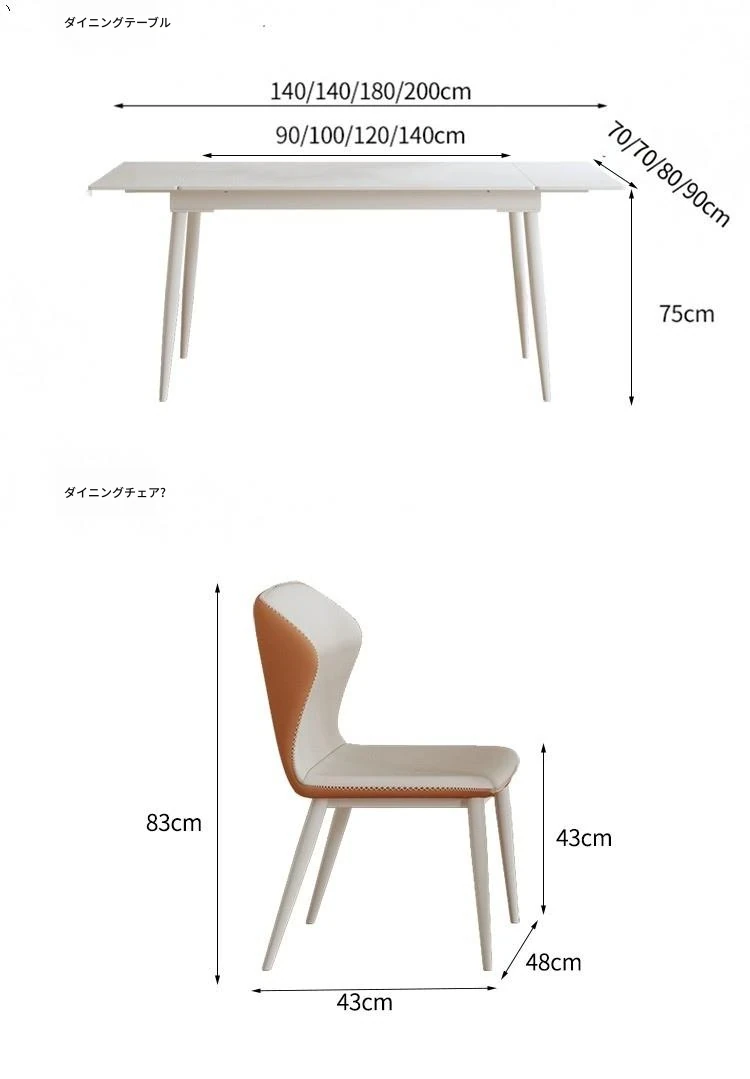 伸縮式ダイニングテーブル【1mから1.4m+6椅子】イノブランドの岩板