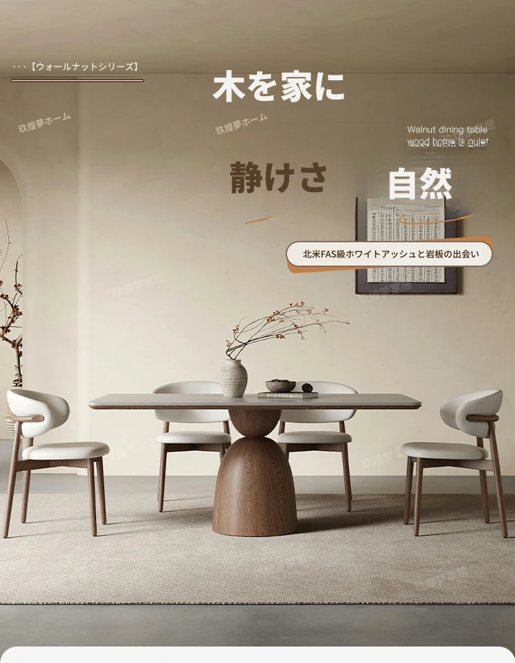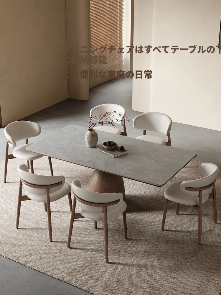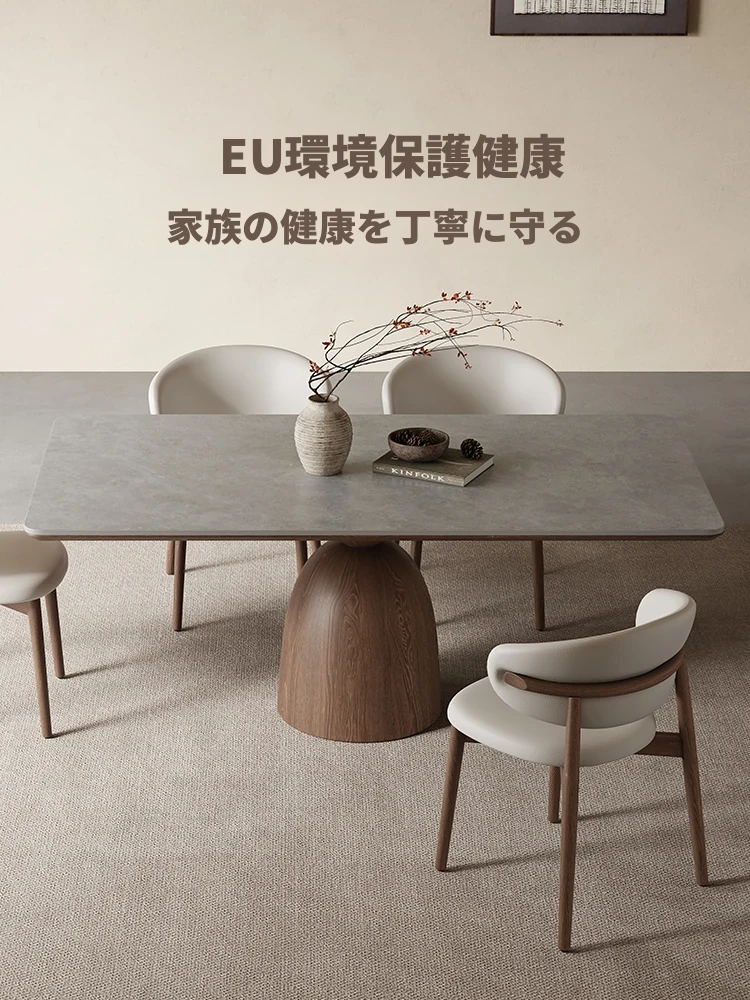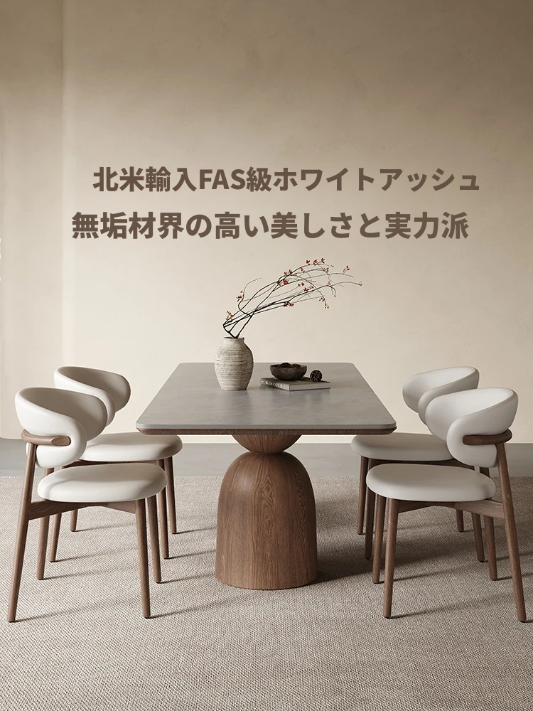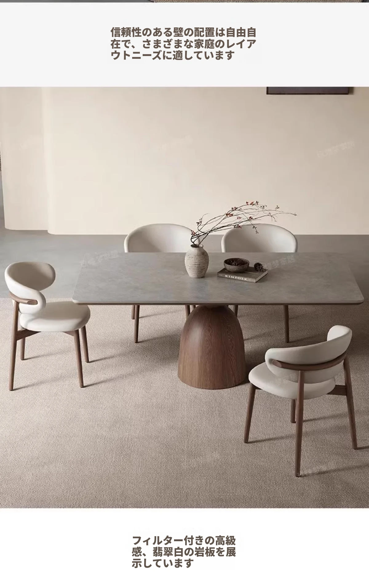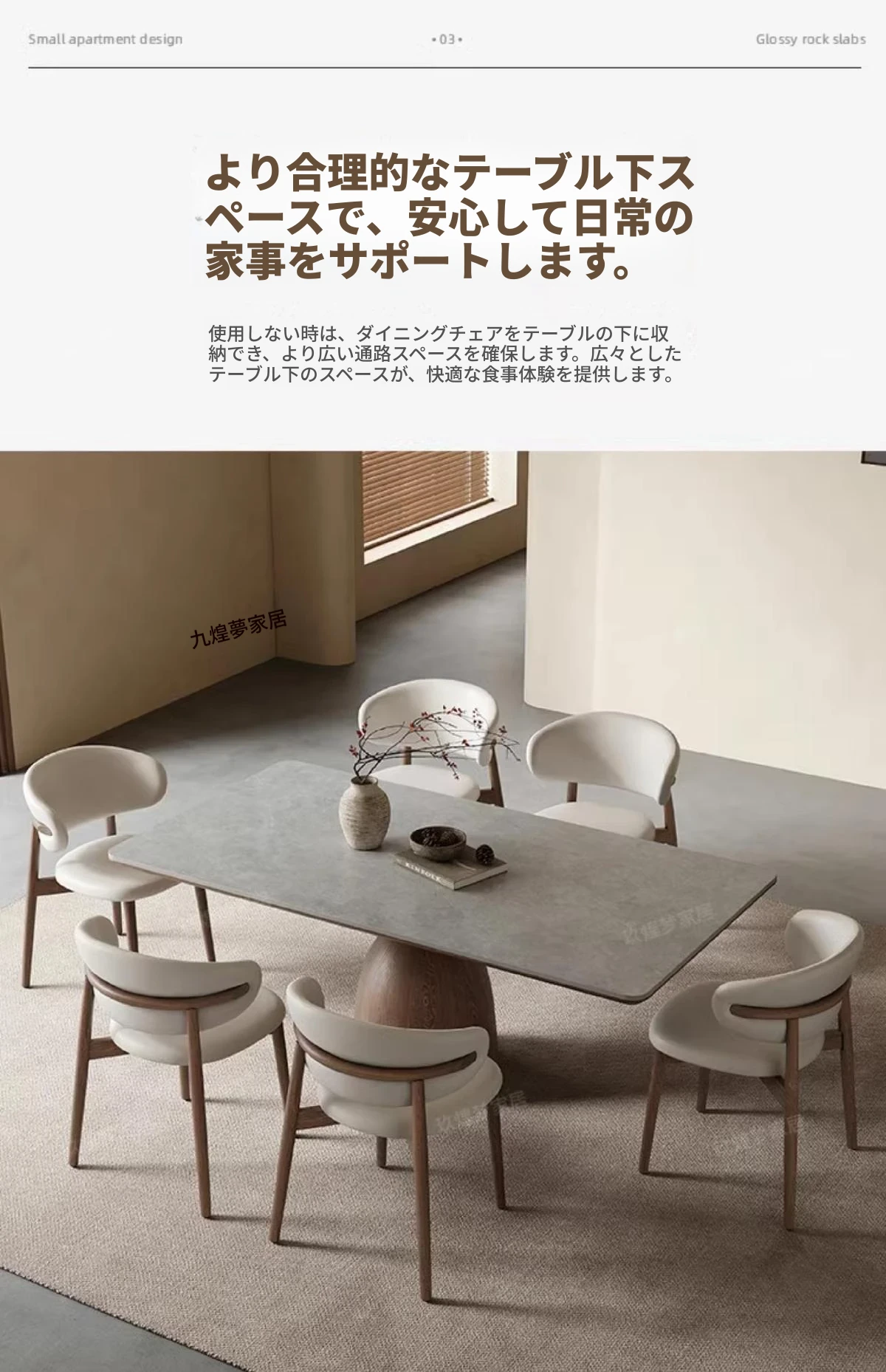 高級北欧スタイルの無垢材と石板のダイニングテーブル&チェアセット - モダンでシンプルな侘寂風、小型住宅に最適なマット仕上げの家庭用食卓