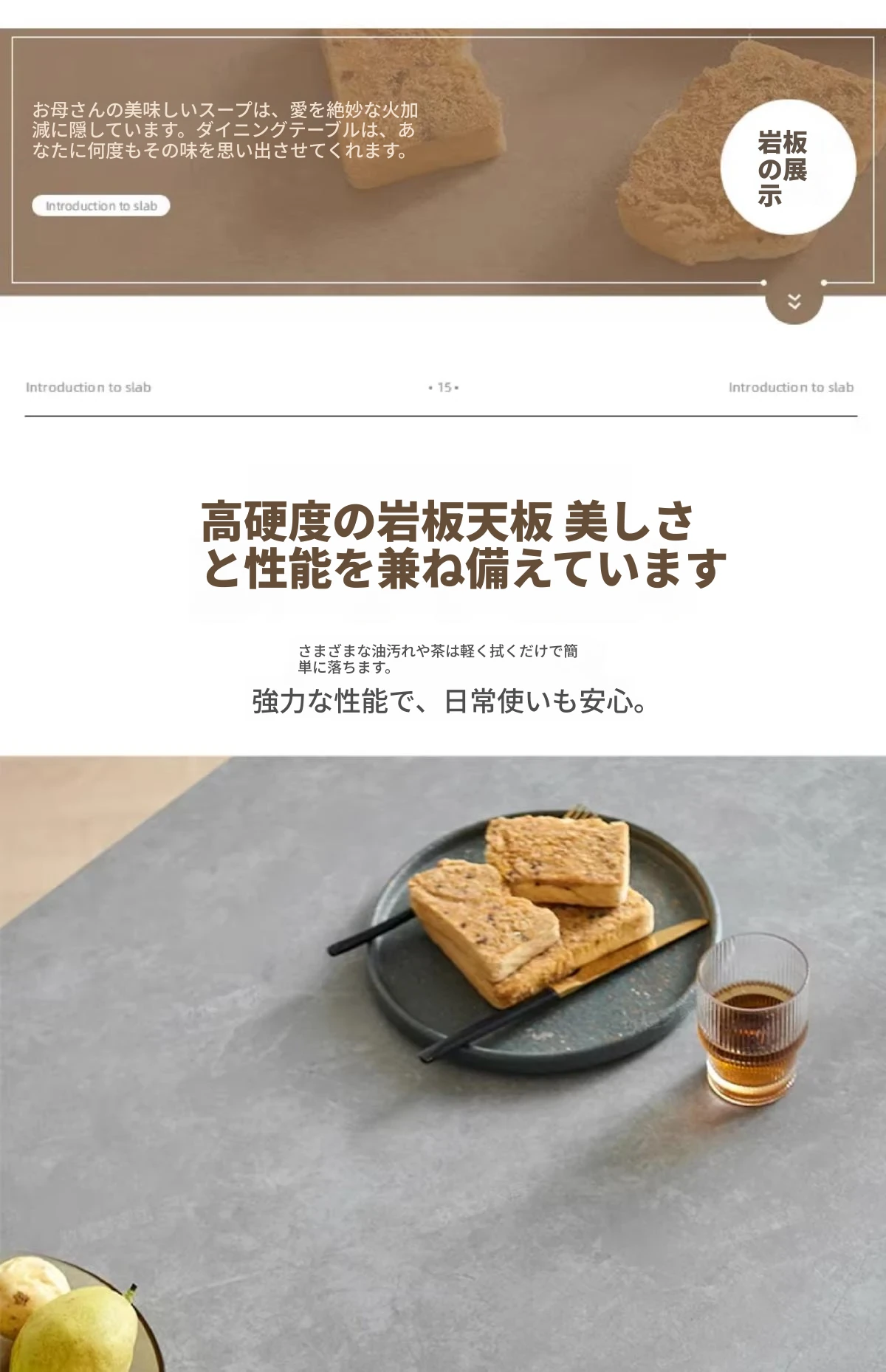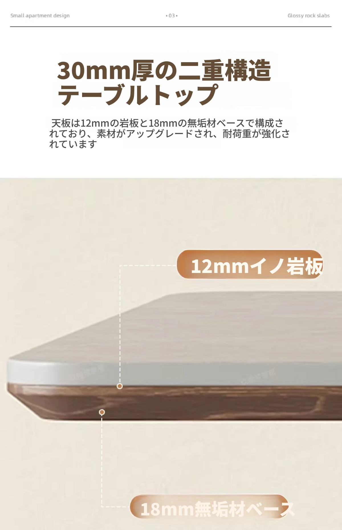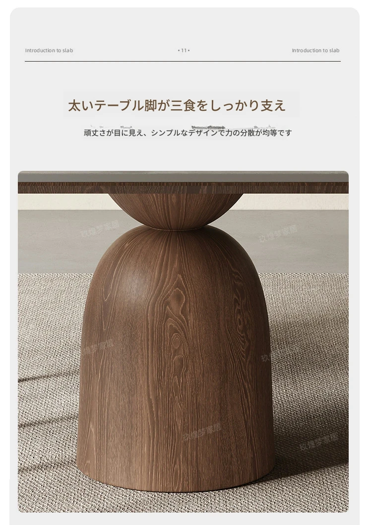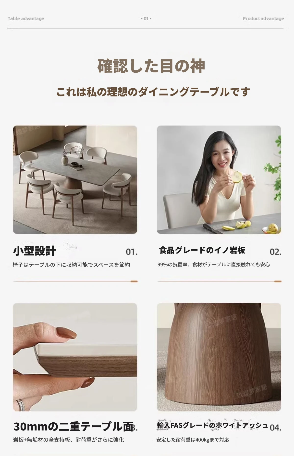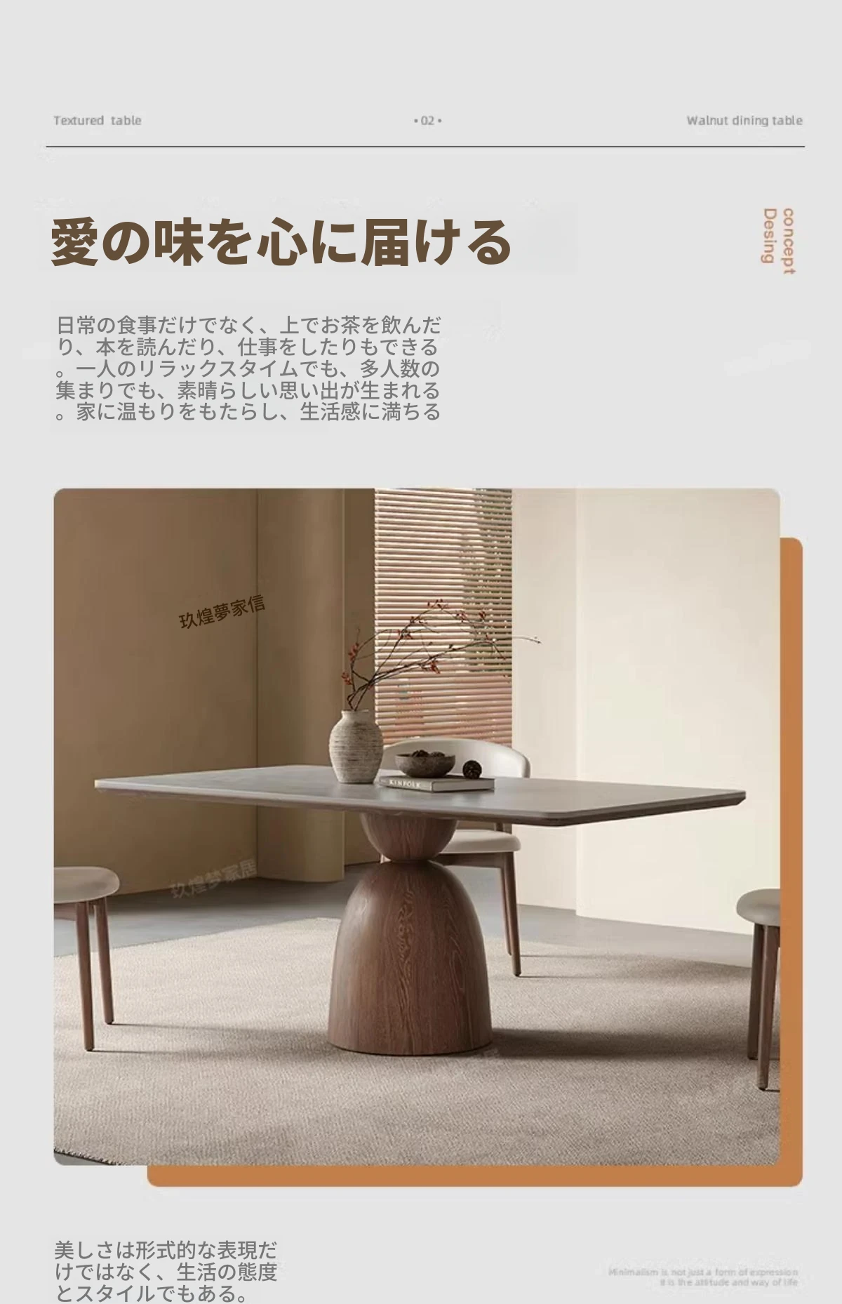 高級北欧スタイルの無垢材と石板のダイニングテーブル&チェアセット - モダンでシンプルな侘寂風、小型住宅に最適なマット仕上げの家庭用食卓