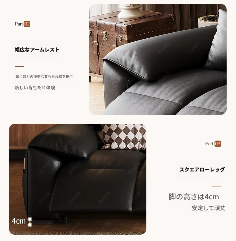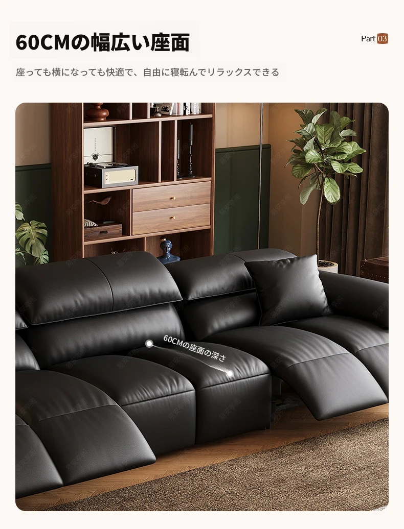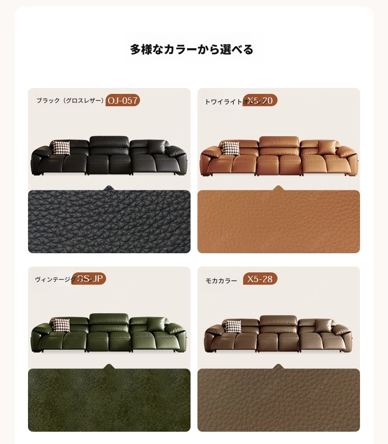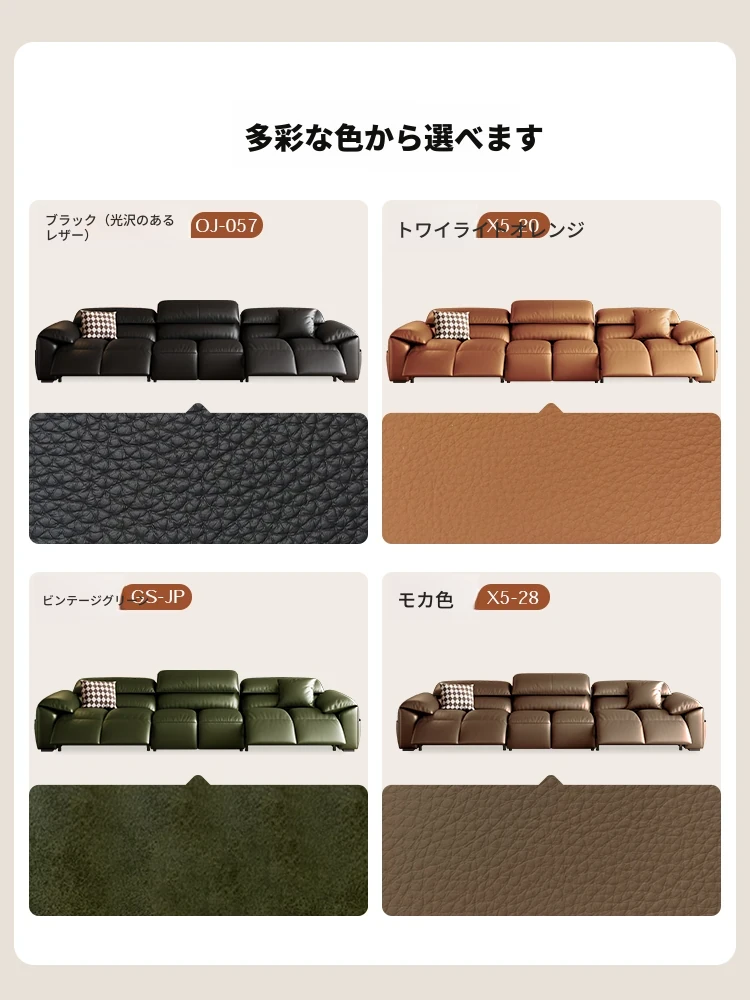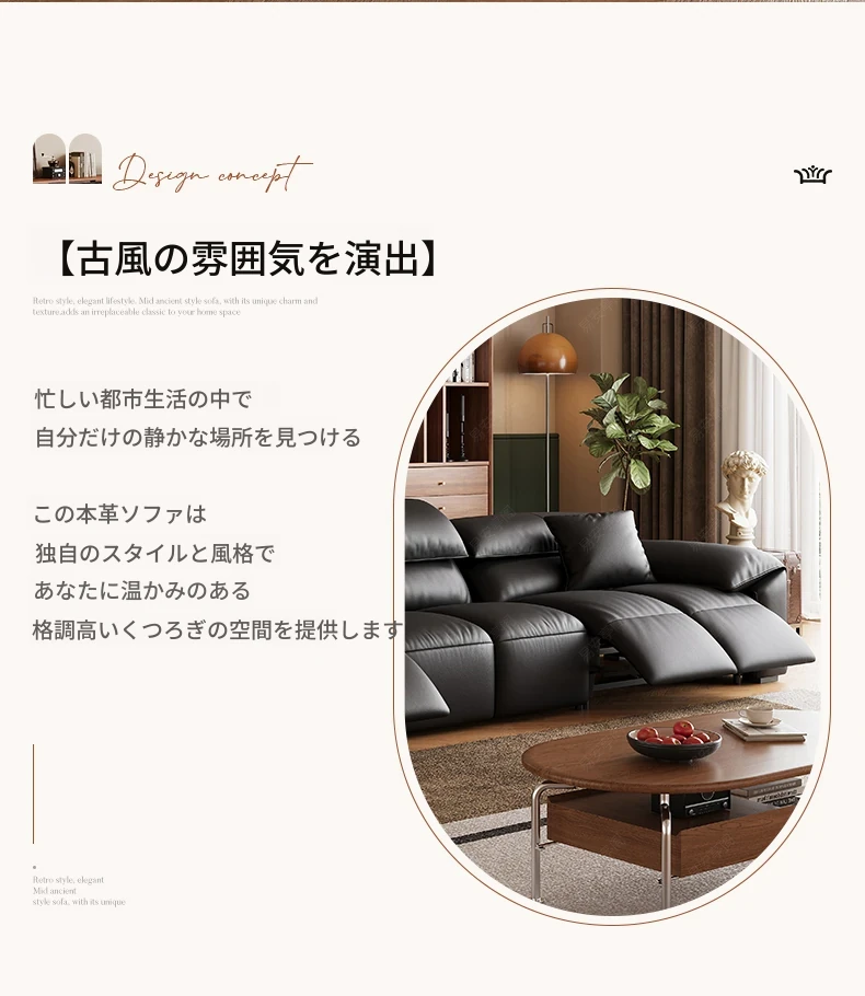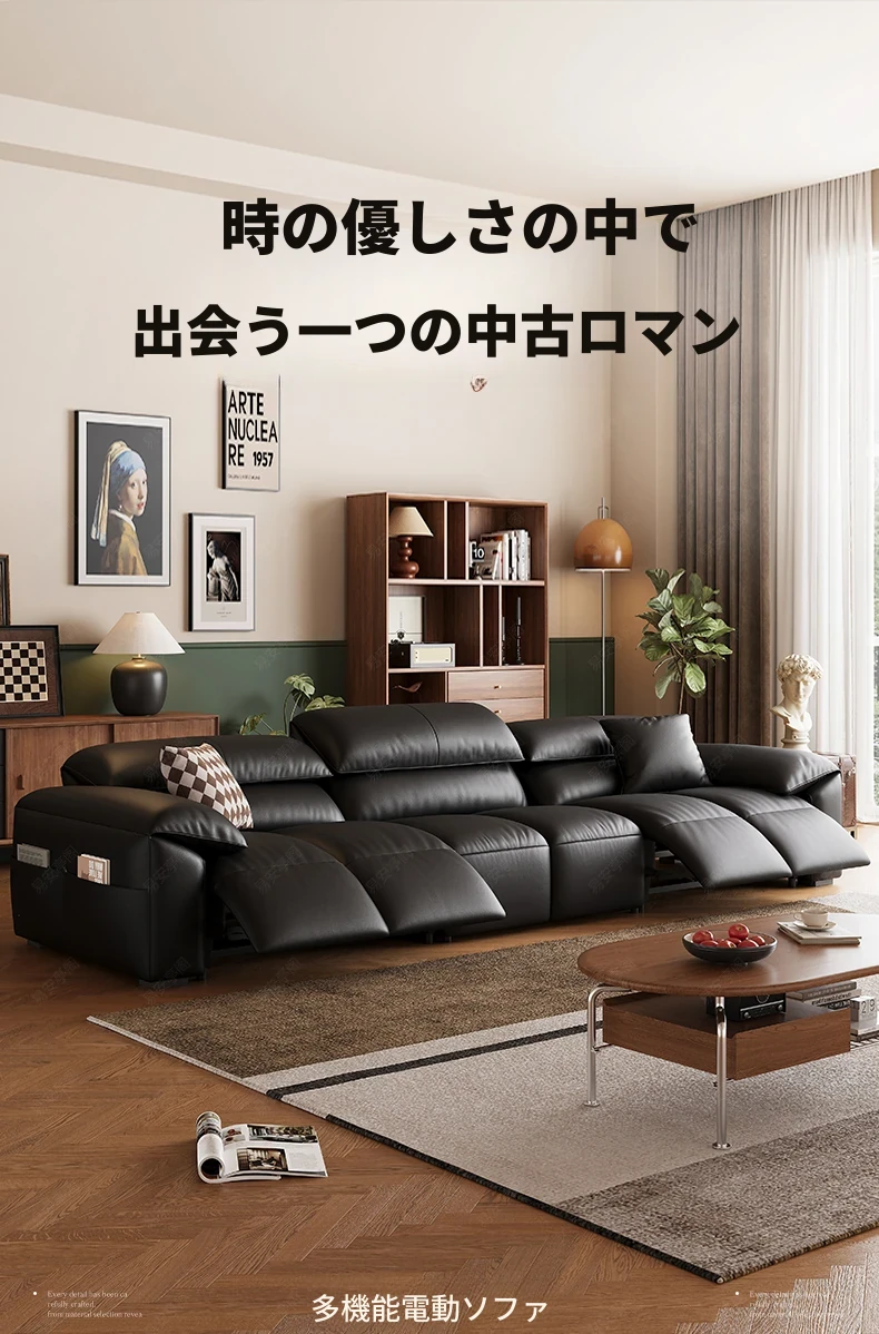 高級宇宙機能電動レザーソファー - 本革使用!ヴィンテージスタイルの壁付けソファ、リラックスした座り心地で、ラグジュアリーなリビング空間を演出します。