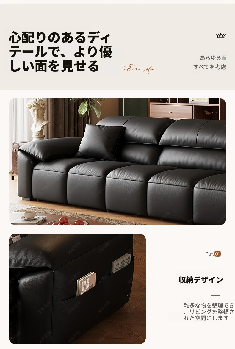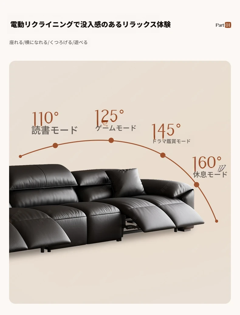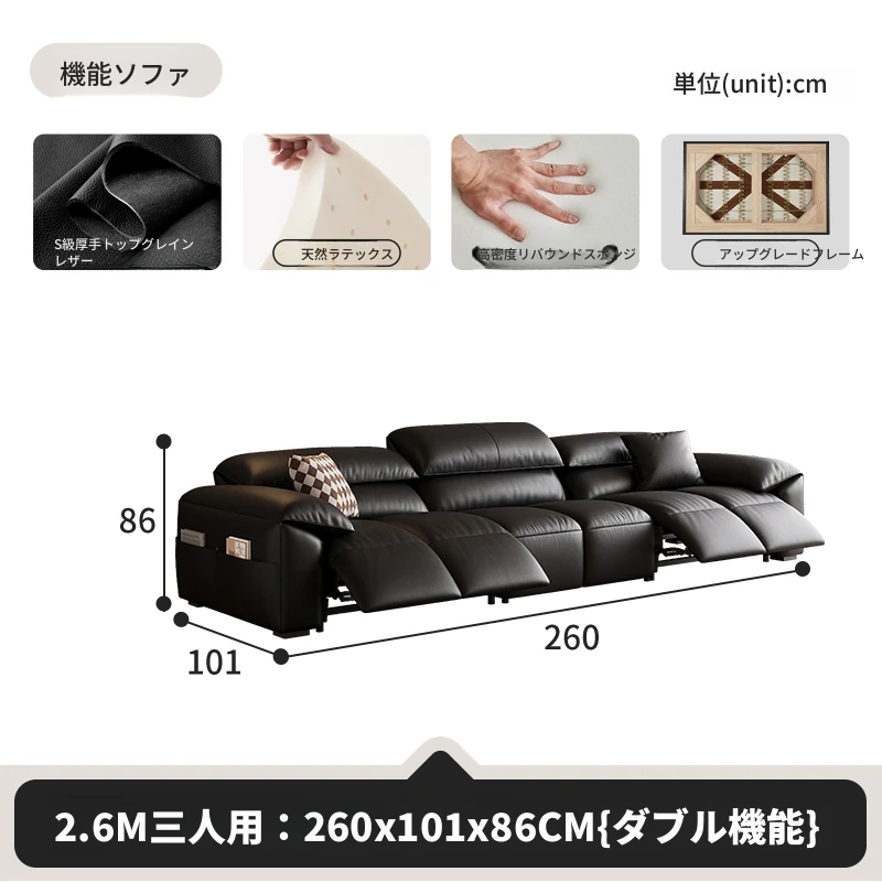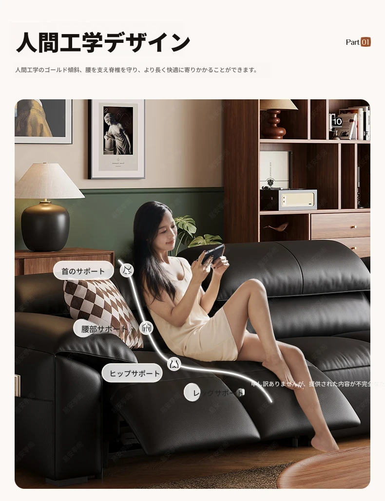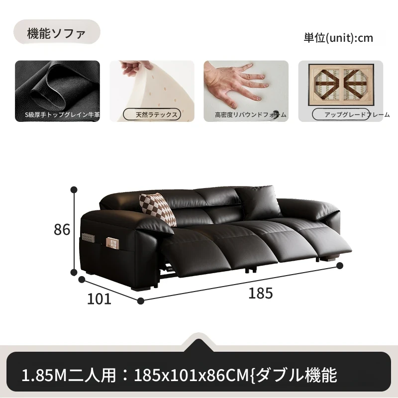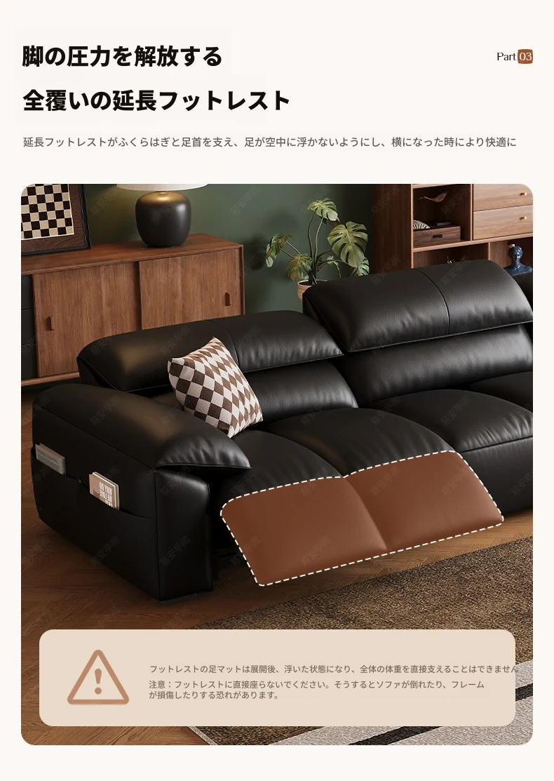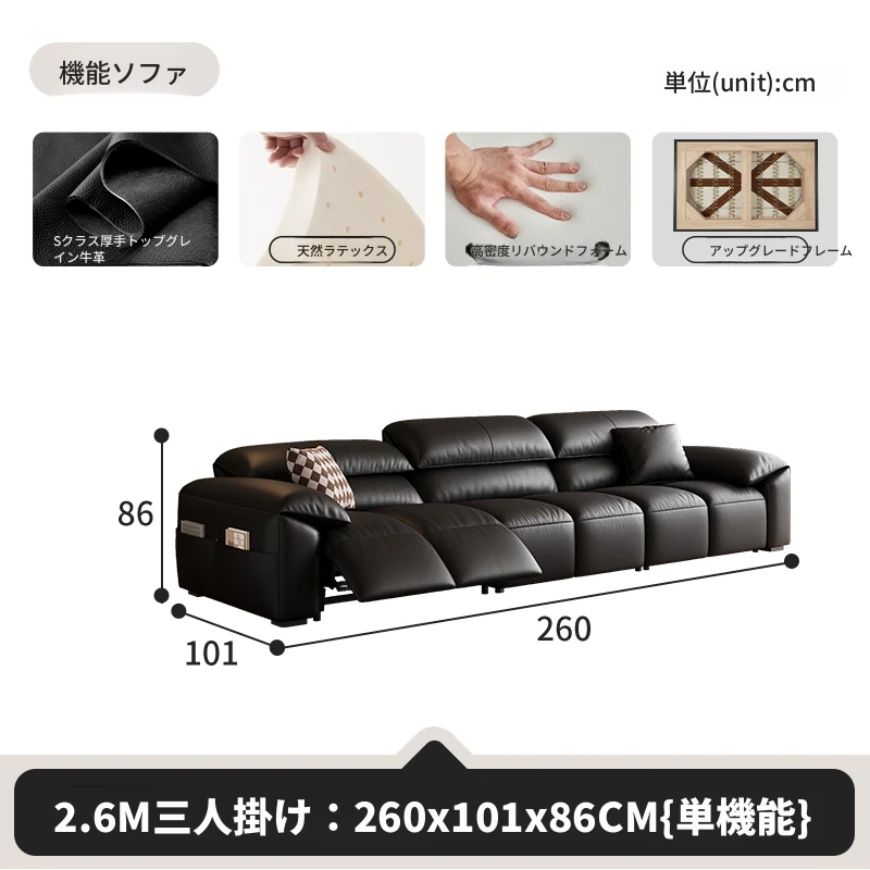 高級宇宙機能電動レザーソファー - 本革使用!ヴィンテージスタイルの壁付けソファ、リラックスした座り心地で、ラグジュアリーなリビング空間を演出します。