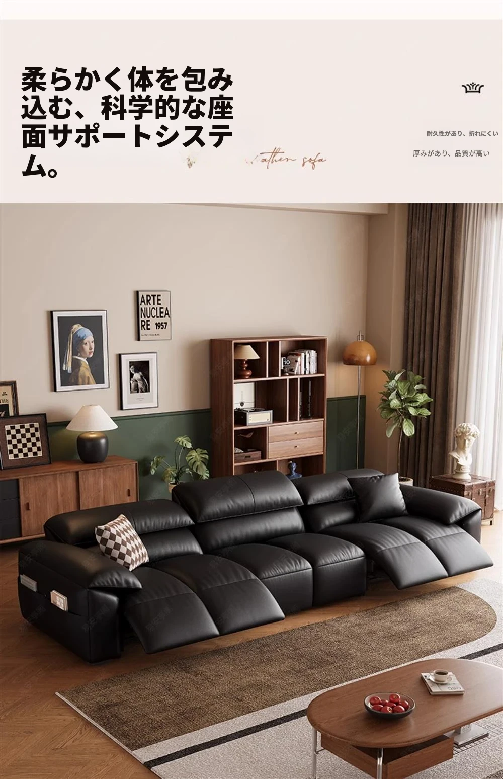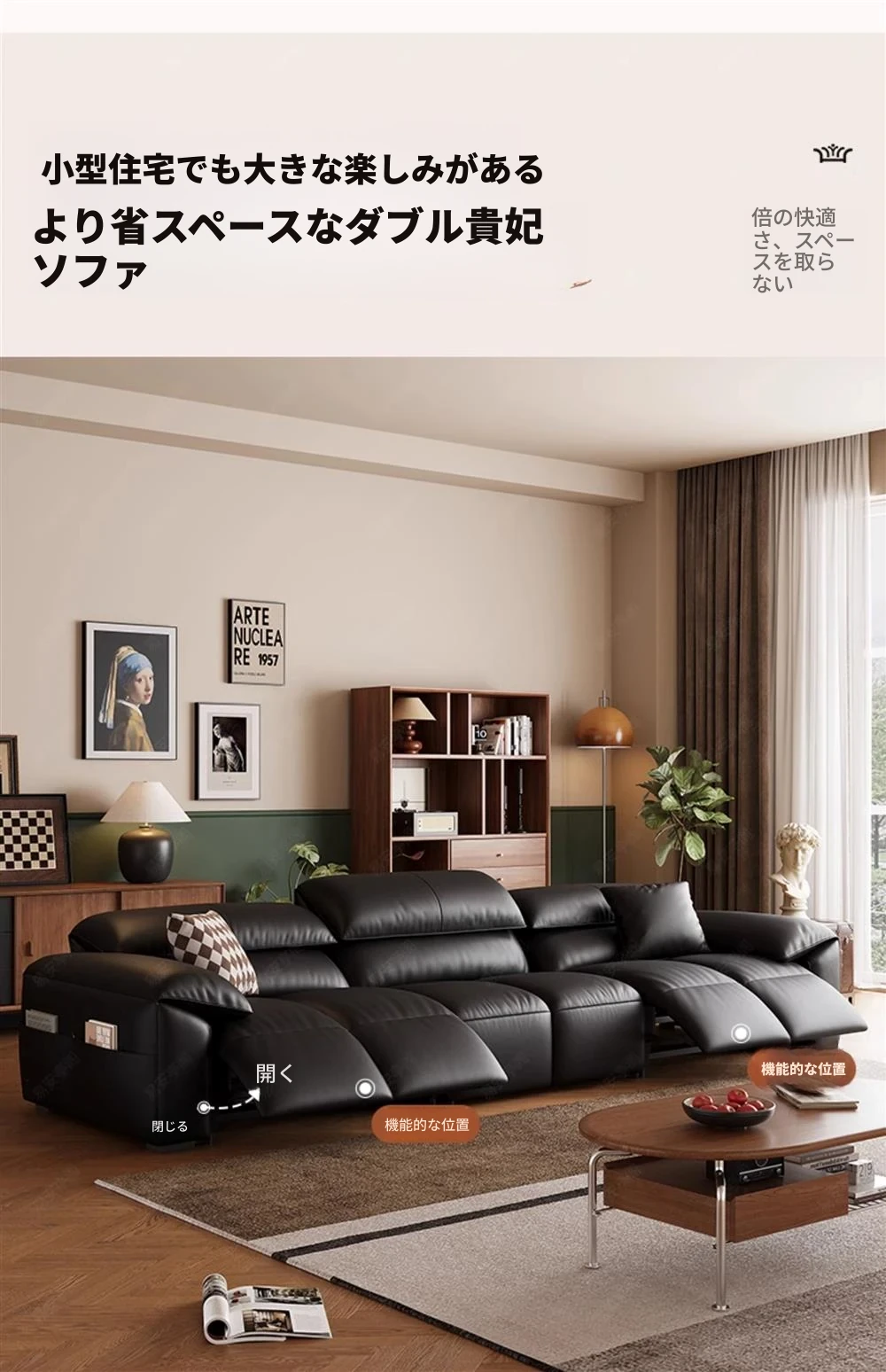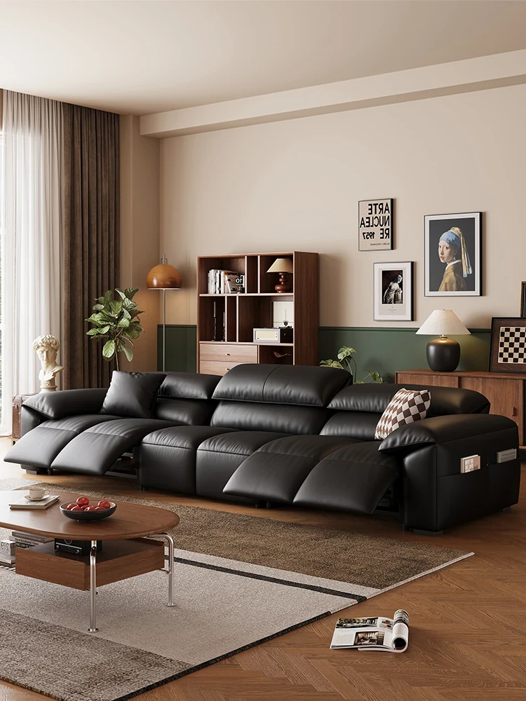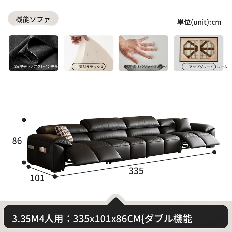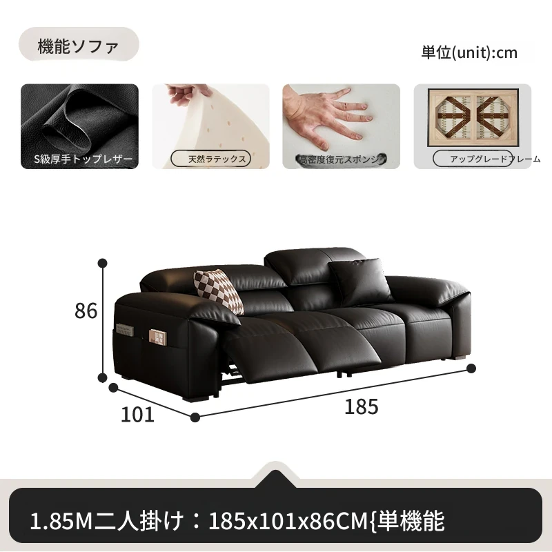 高級宇宙機能電動レザーソファー - 本革使用!ヴィンテージスタイルの壁付けソファ、リラックスした座り心地で、ラグジュアリーなリビング空間を演出します。